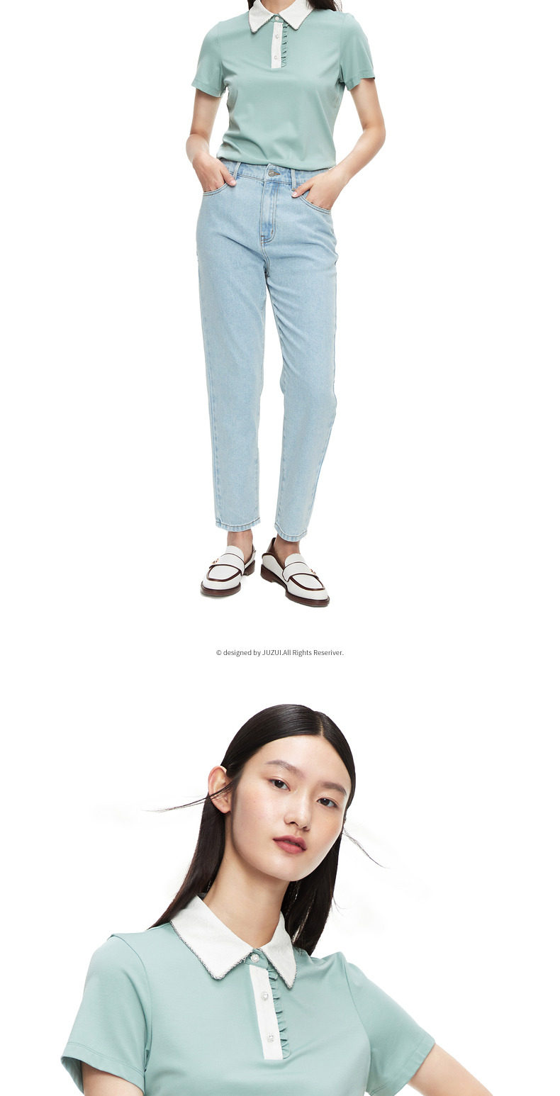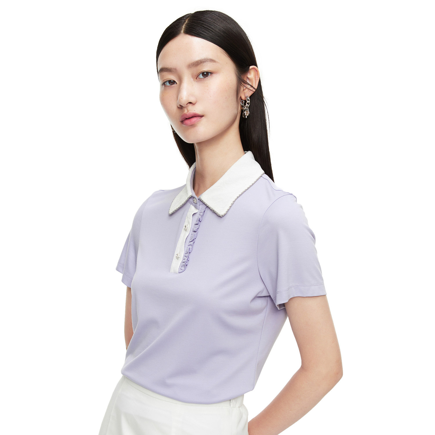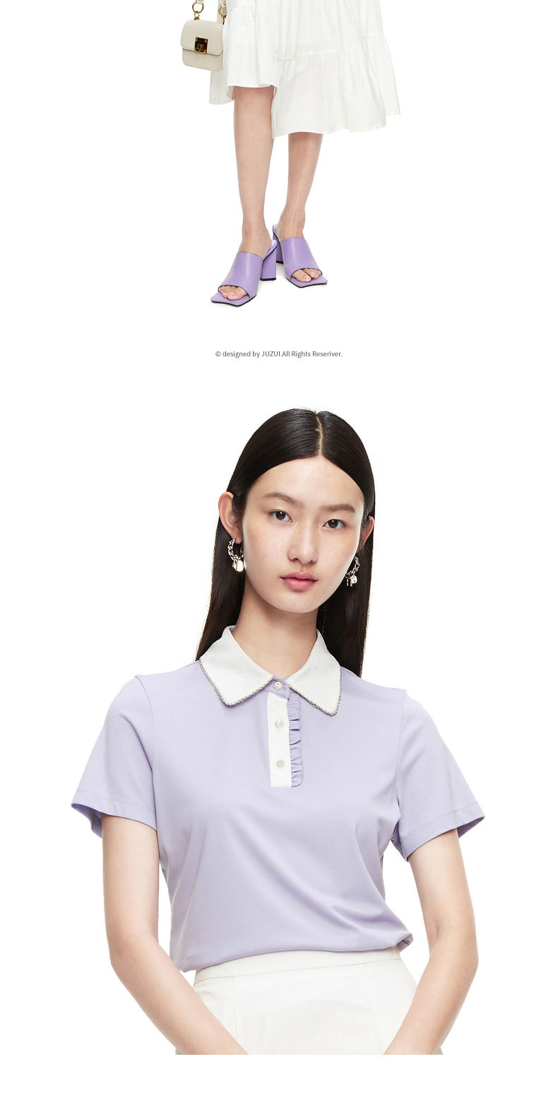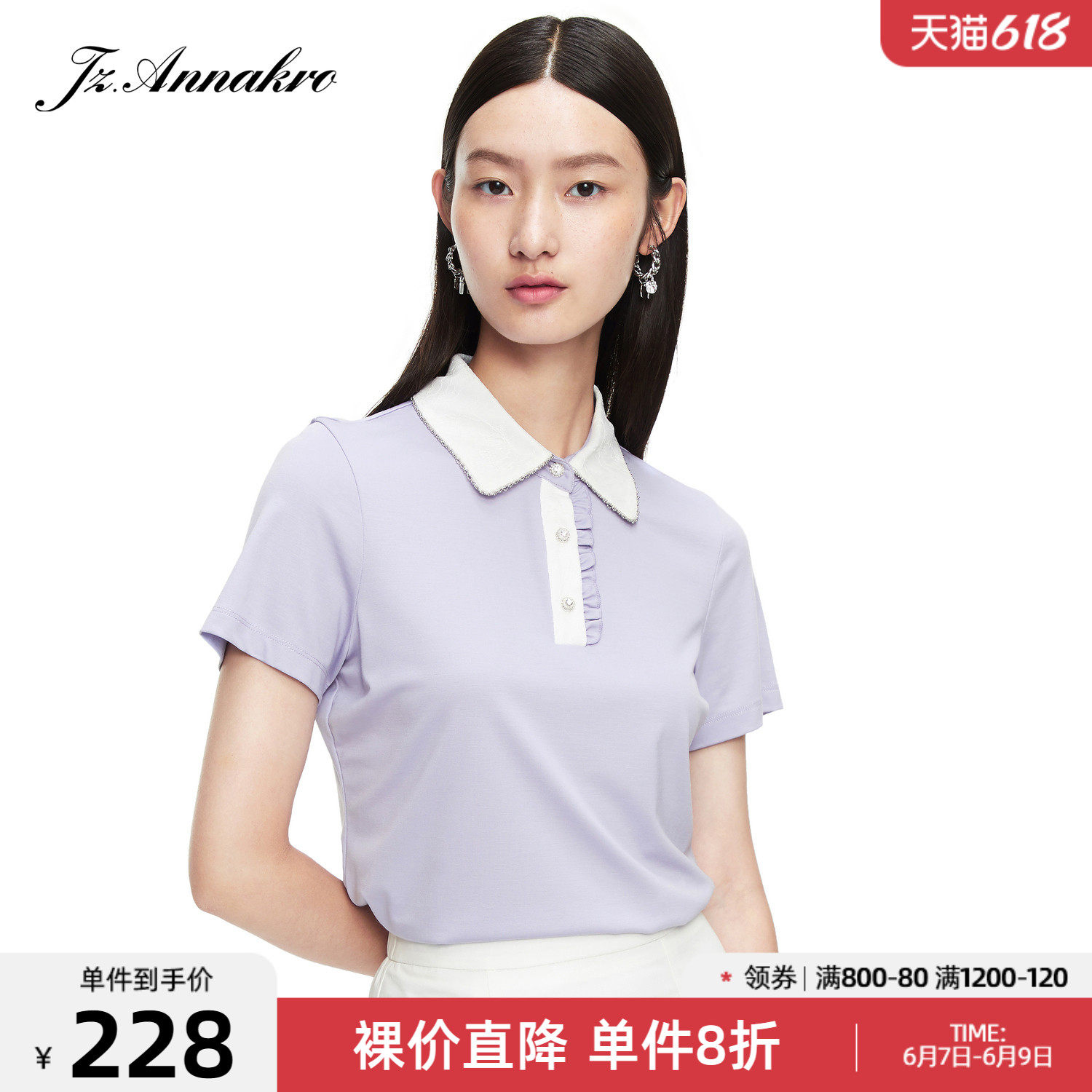 玖姿2021夏季新款安娜蔻系列纯色针织POLO领运动风时尚女短袖T恤