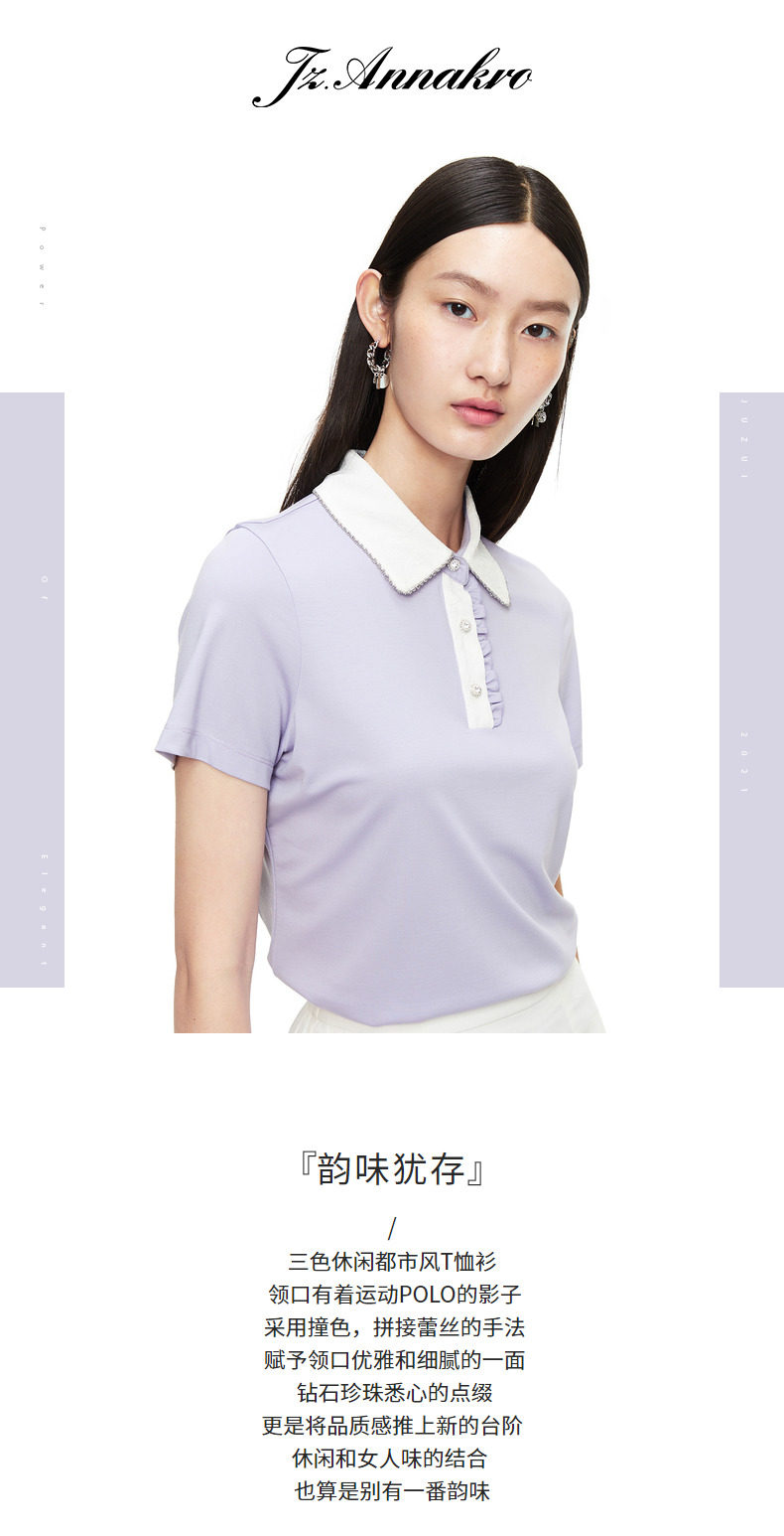 首页 > 玖姿专区 > 玖姿服饰 > 玖姿2021夏季新款安娜蔻系列纯色针织POLO领运动风时尚女短袖T恤