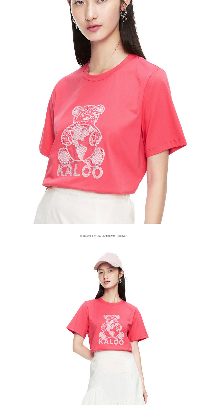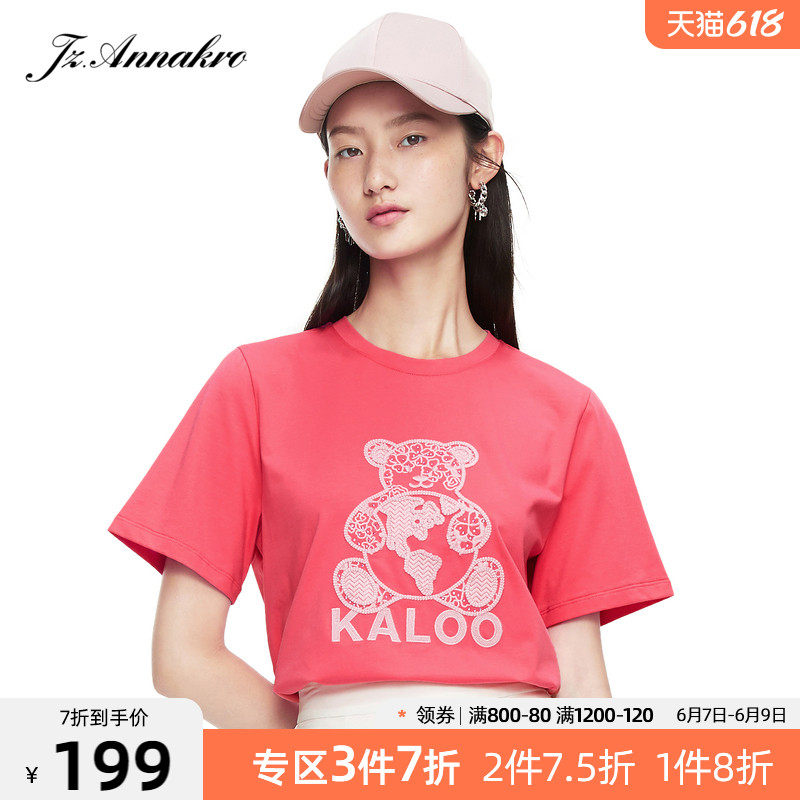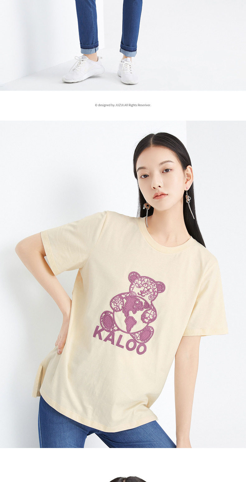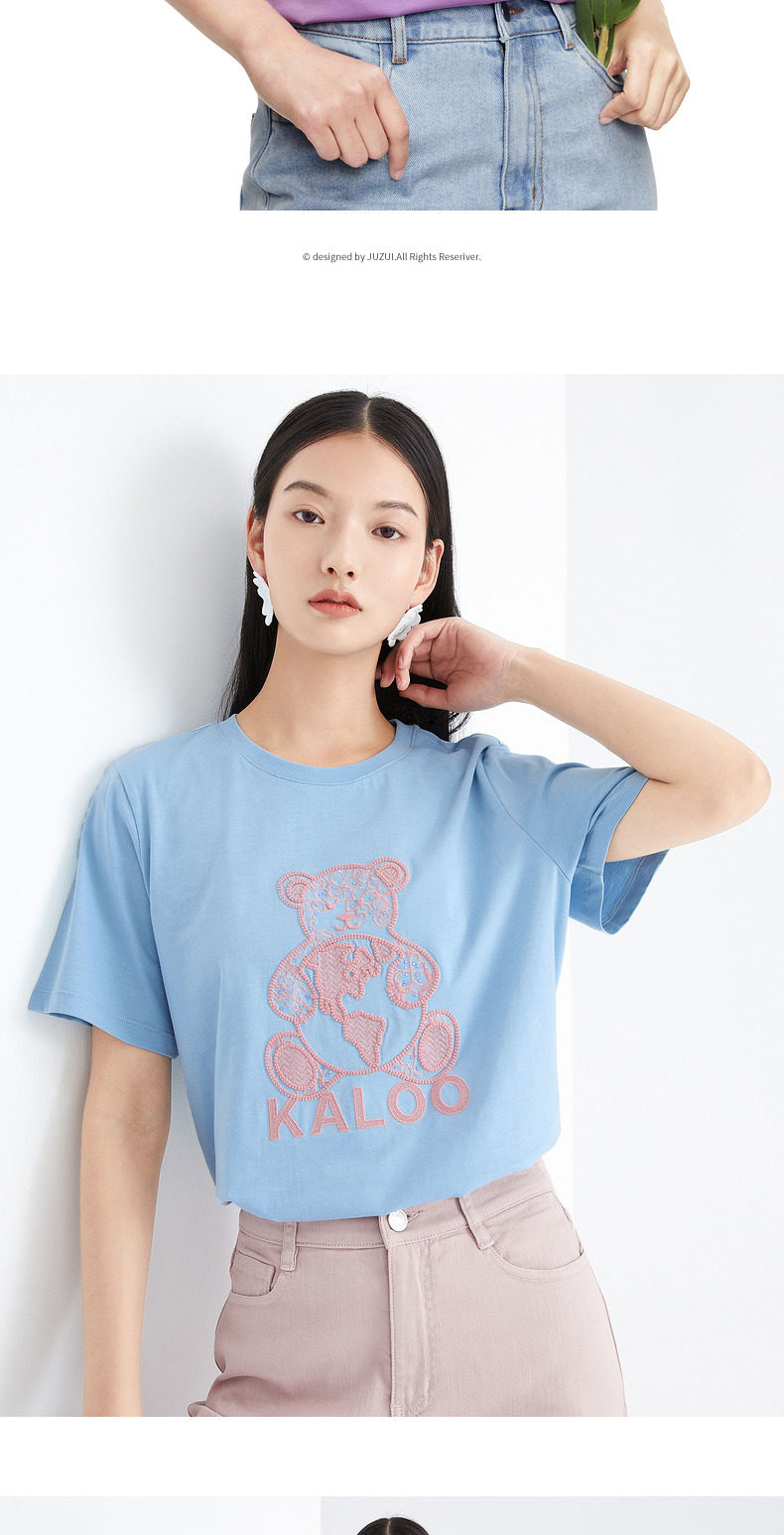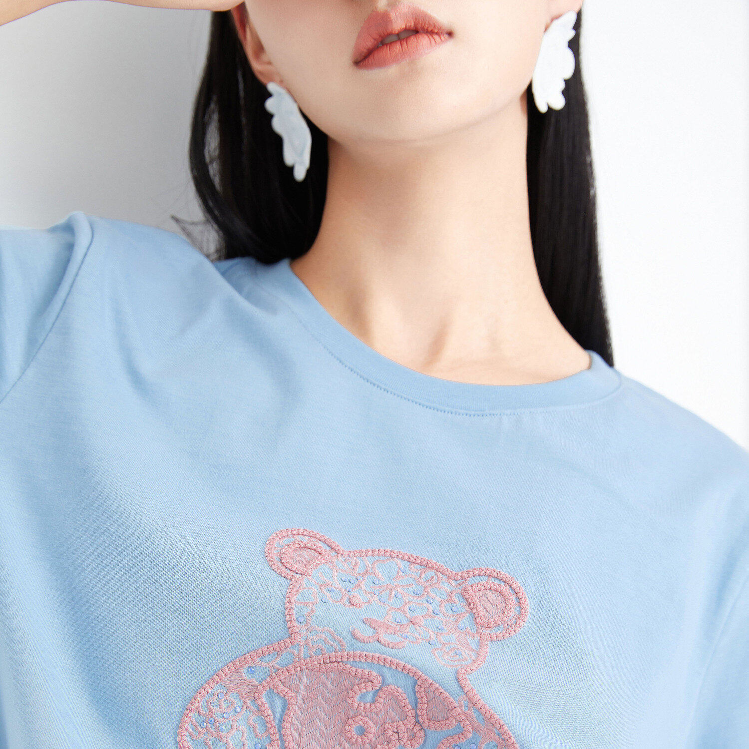 首页 > 玖姿专区 > 玖姿服饰 > 【新疆棉】玖姿2021夏季安娜蔻重工小熊刺绣烫钻时尚女短袖T恤