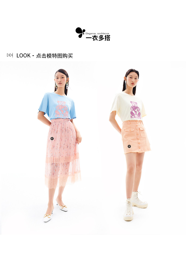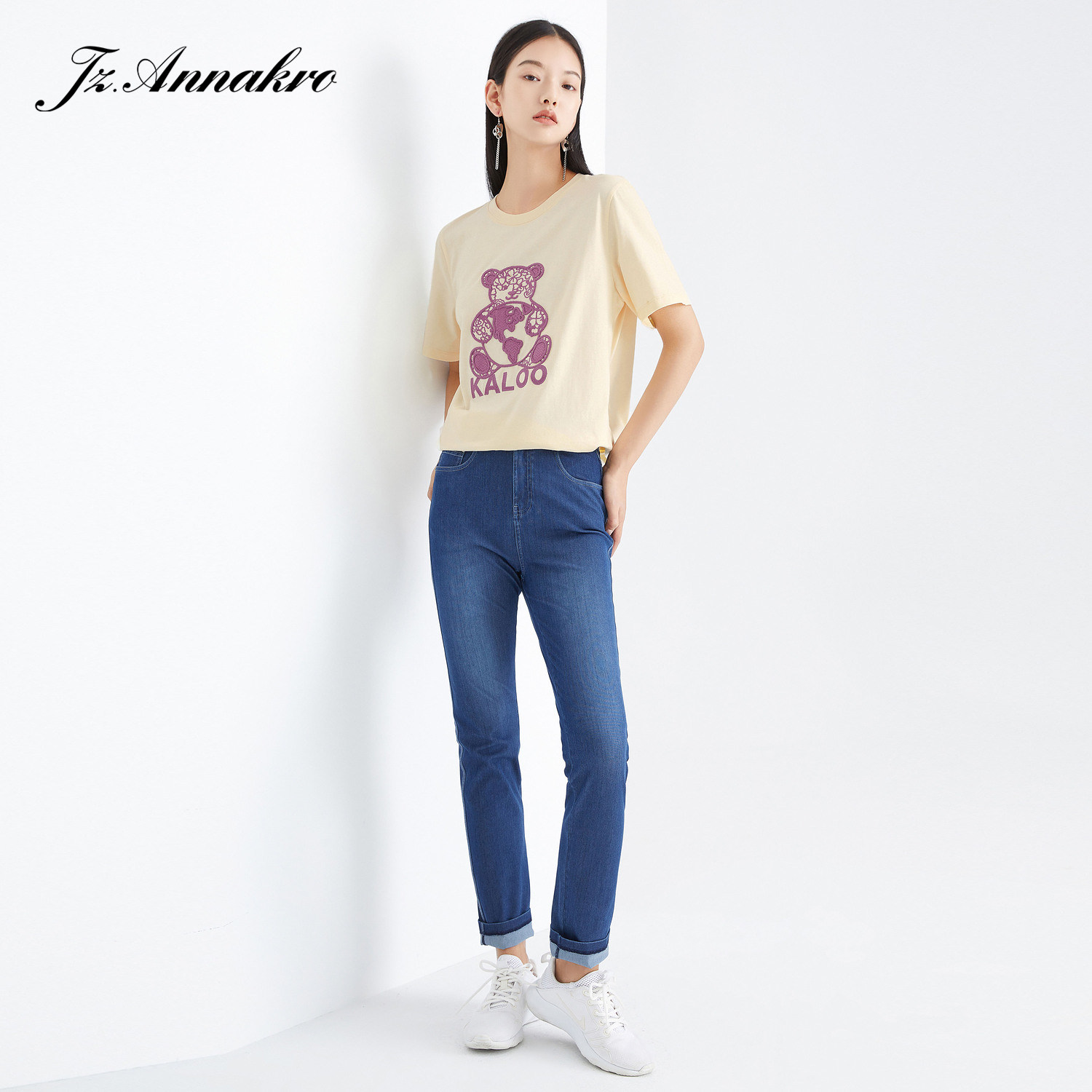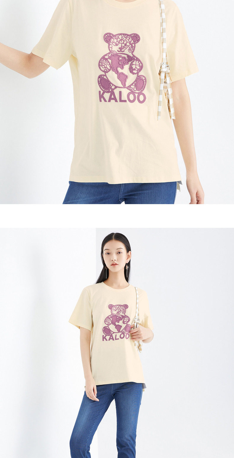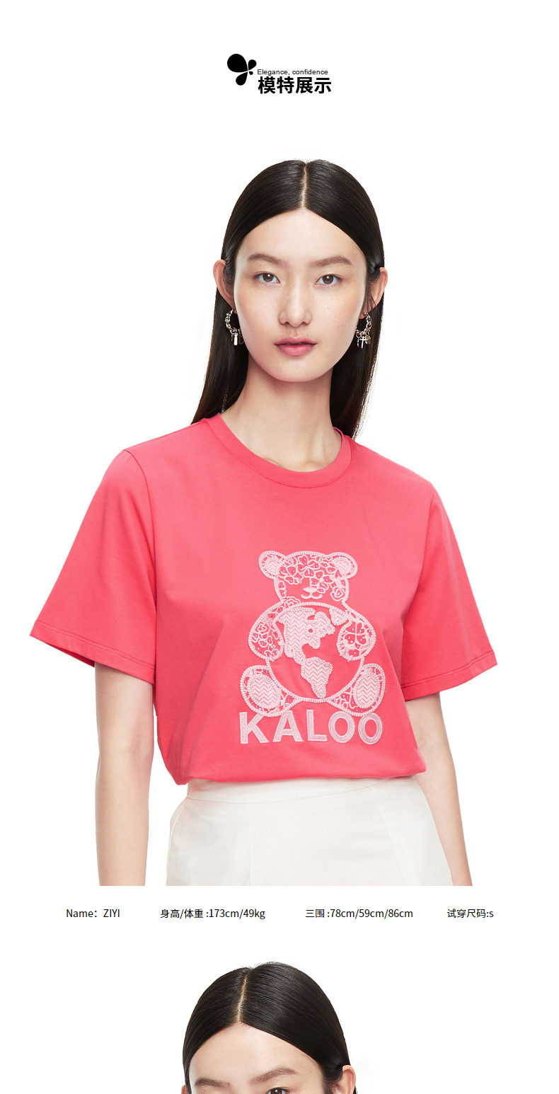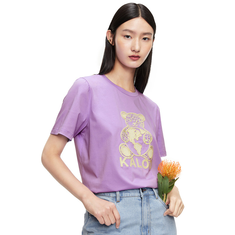 首页 > 玖姿专区 > 玖姿服饰 > 【新疆棉】玖姿2021夏季安娜蔻重工小熊刺绣烫钻时尚女短袖T恤