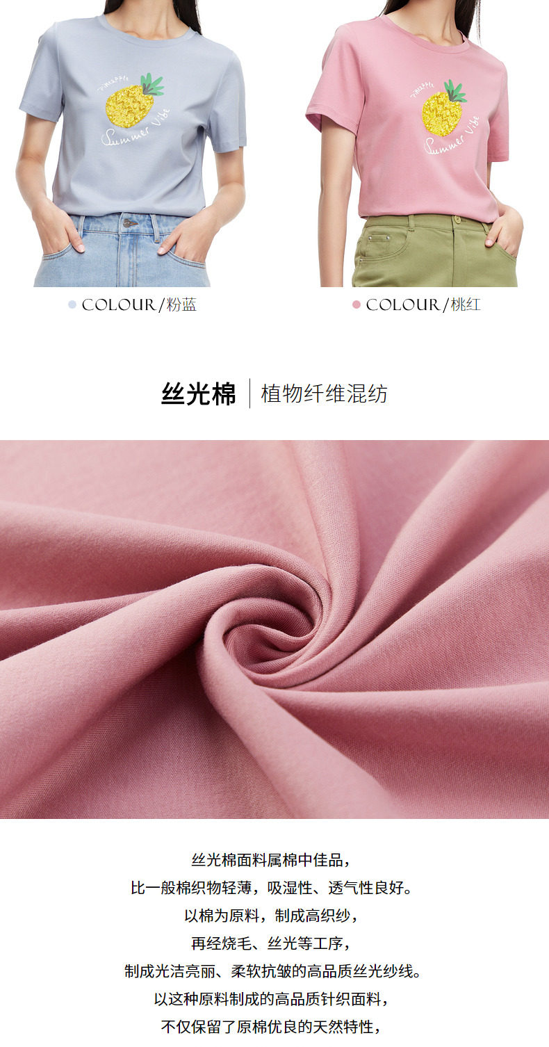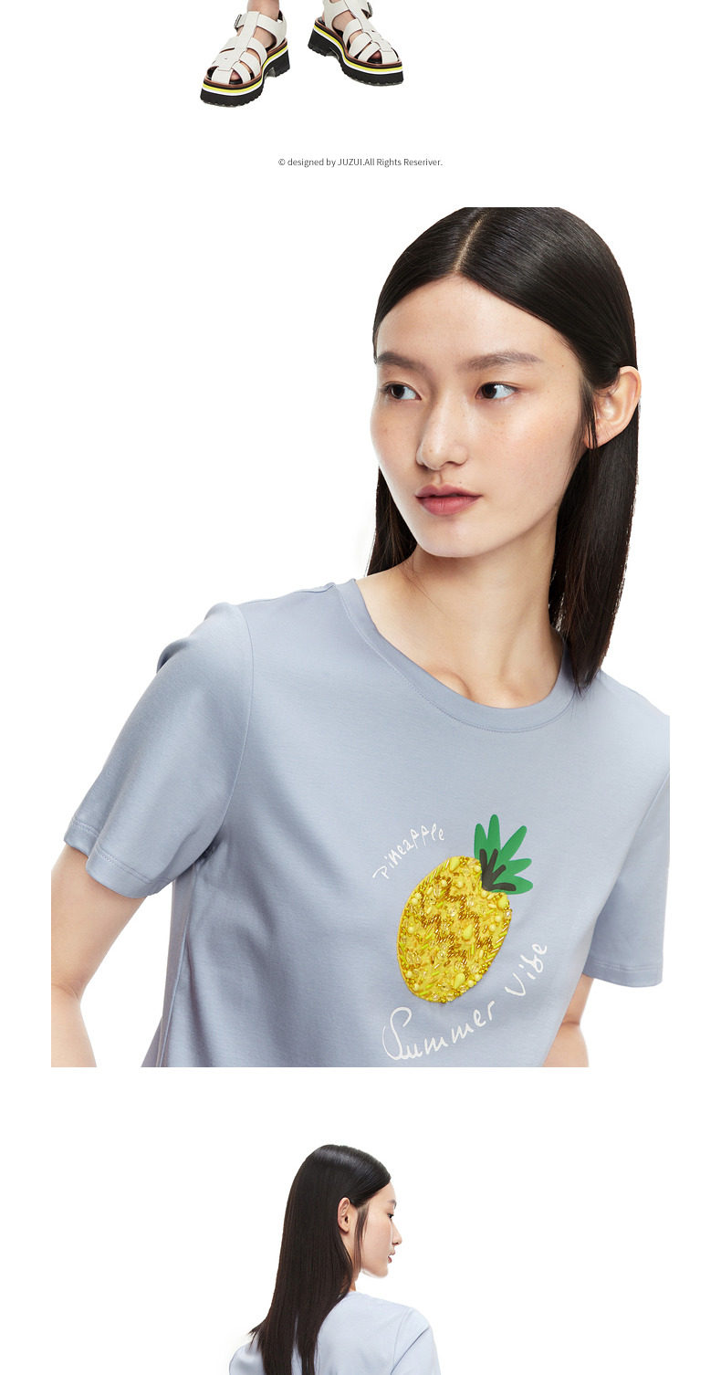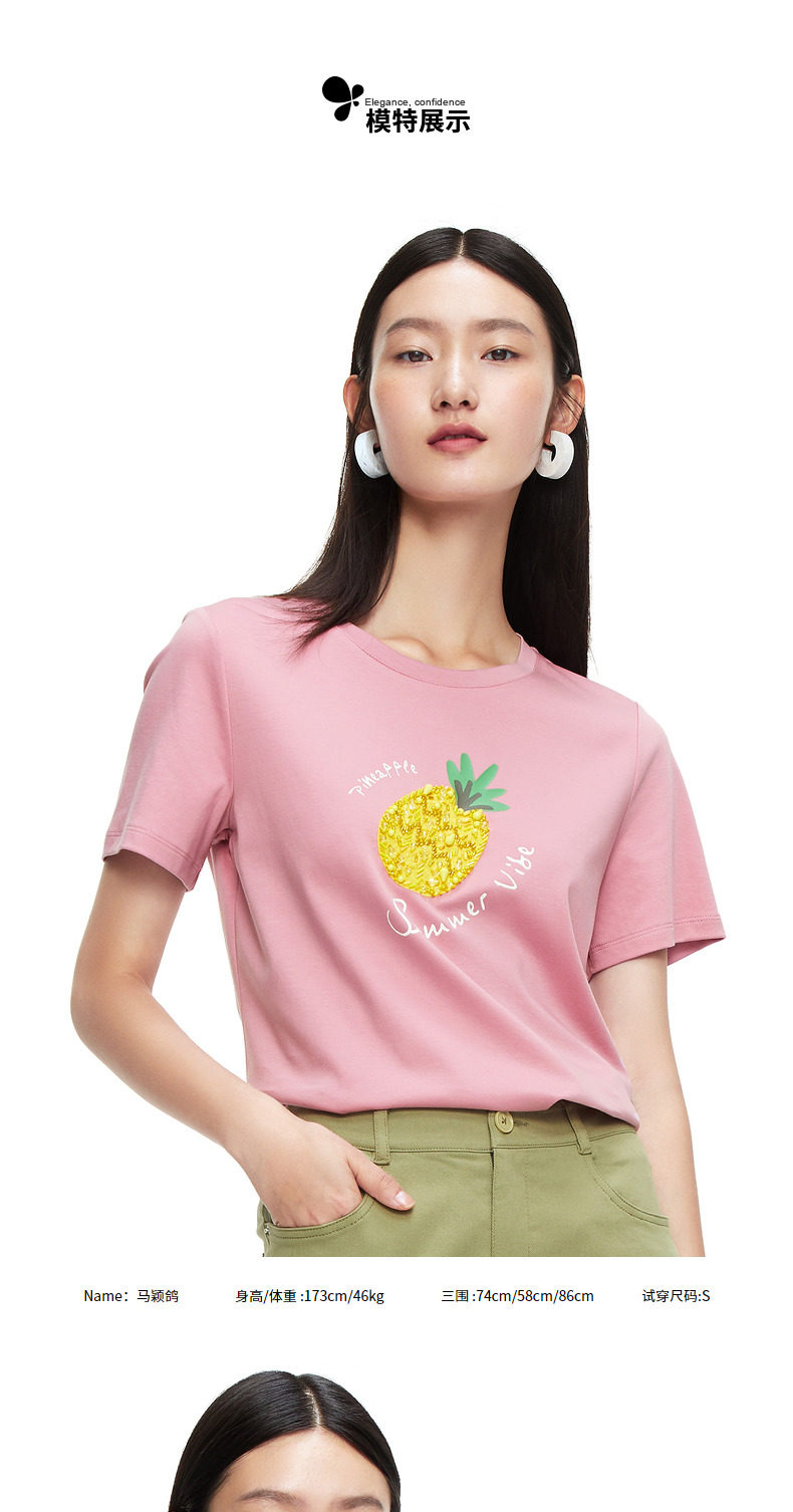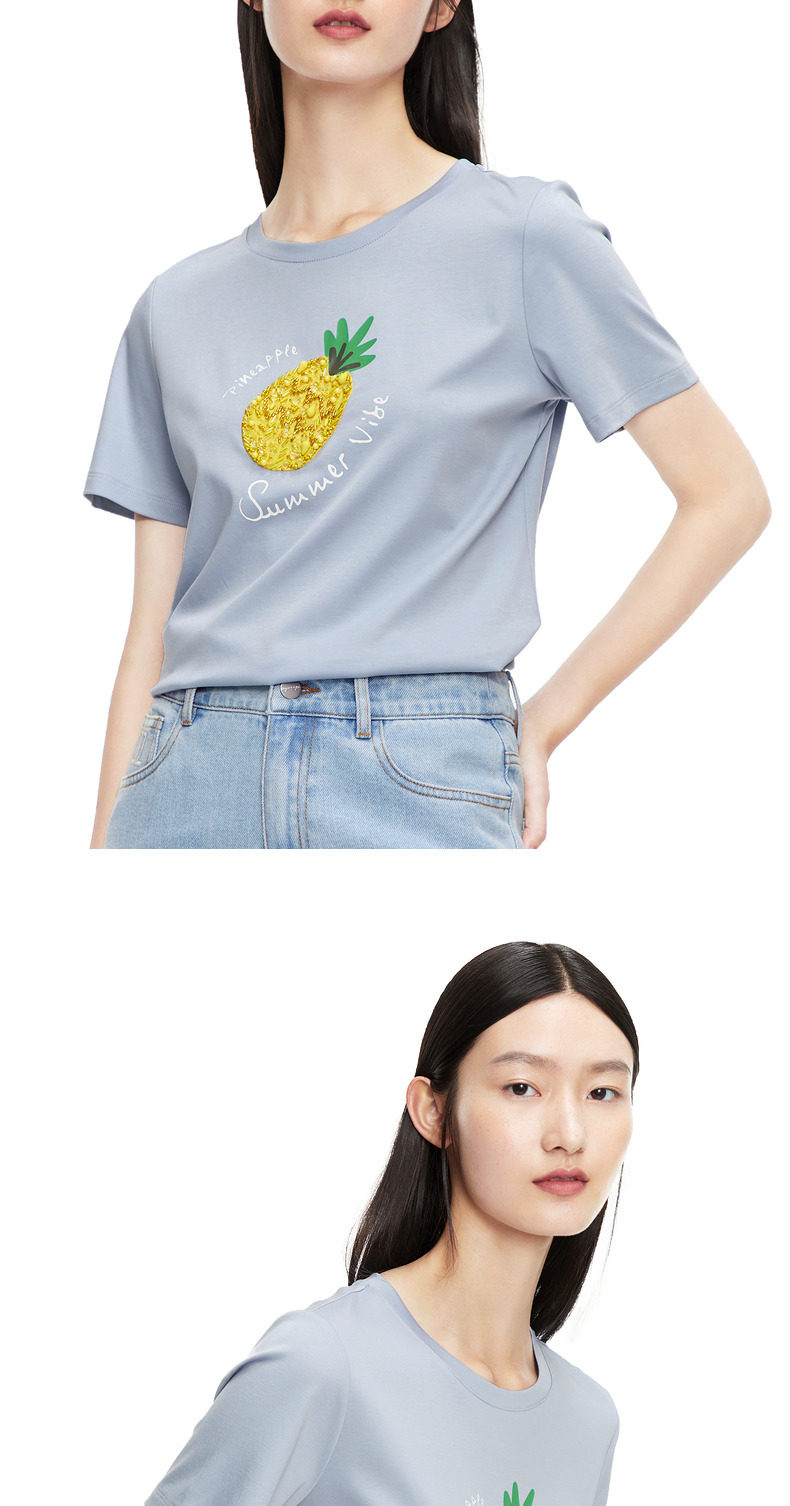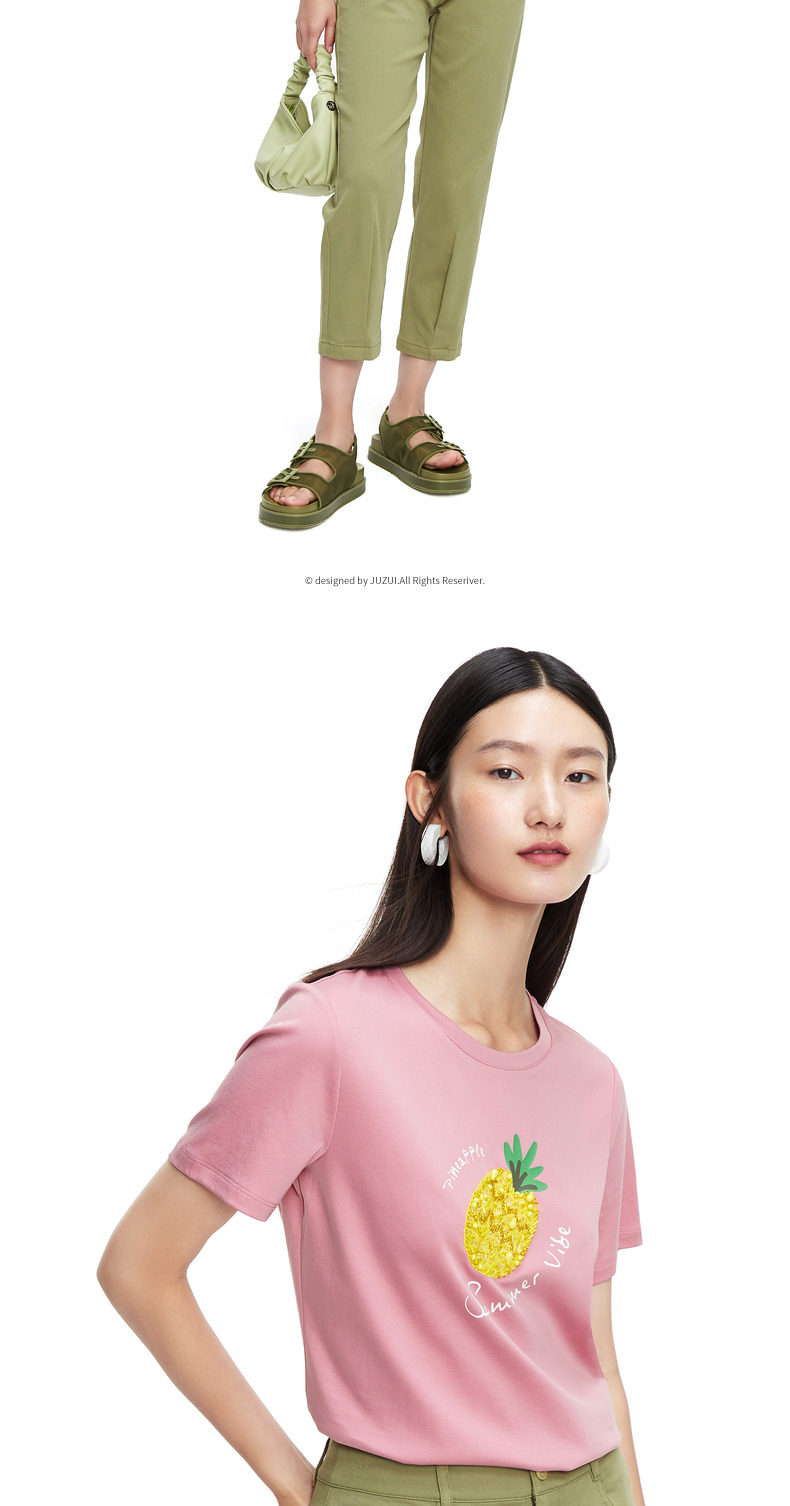 首页 > 玖姿专区 > 玖姿服饰 > 玖姿2021夏季新款安娜蔻系列纯色圆领热带水果串珠时尚女短袖T恤
