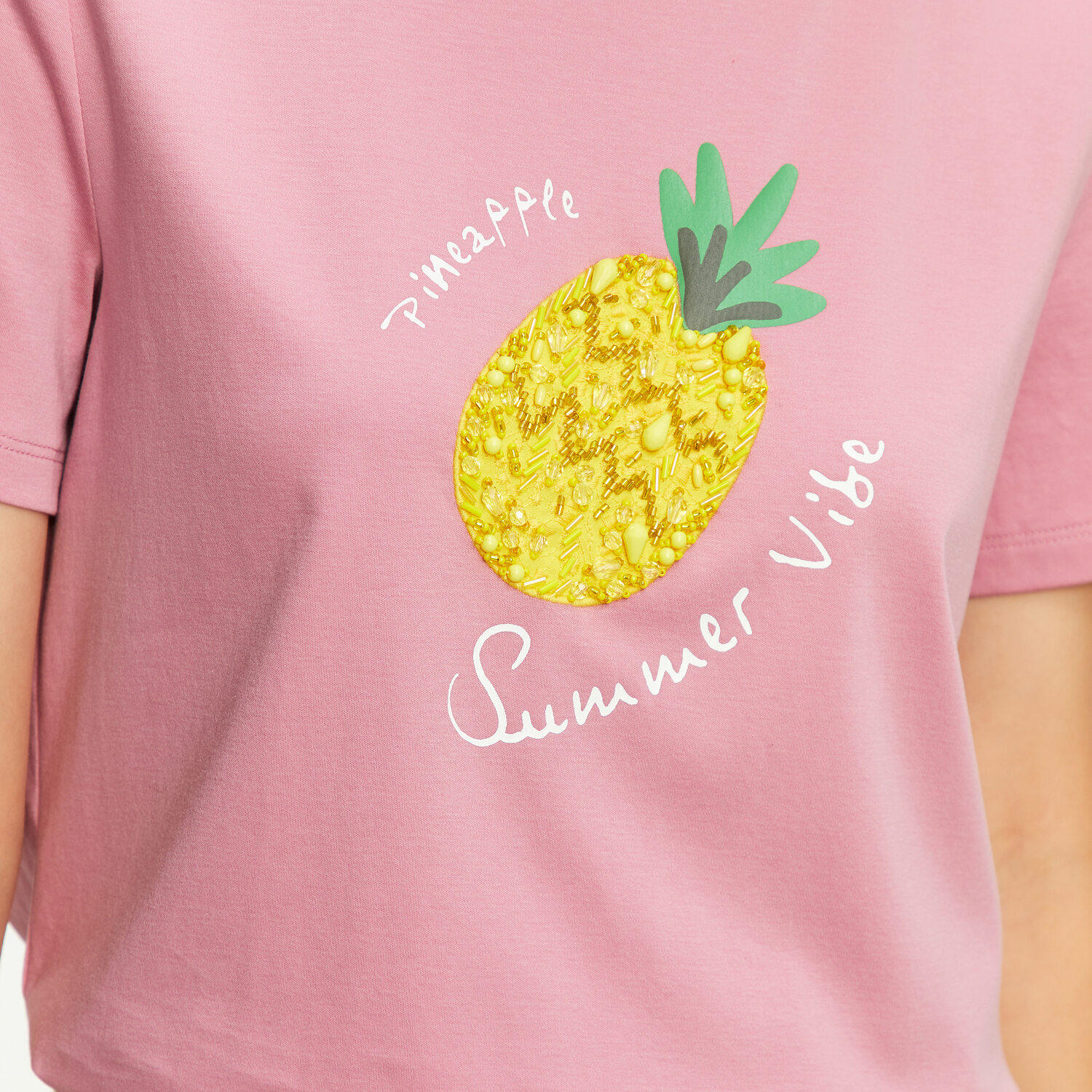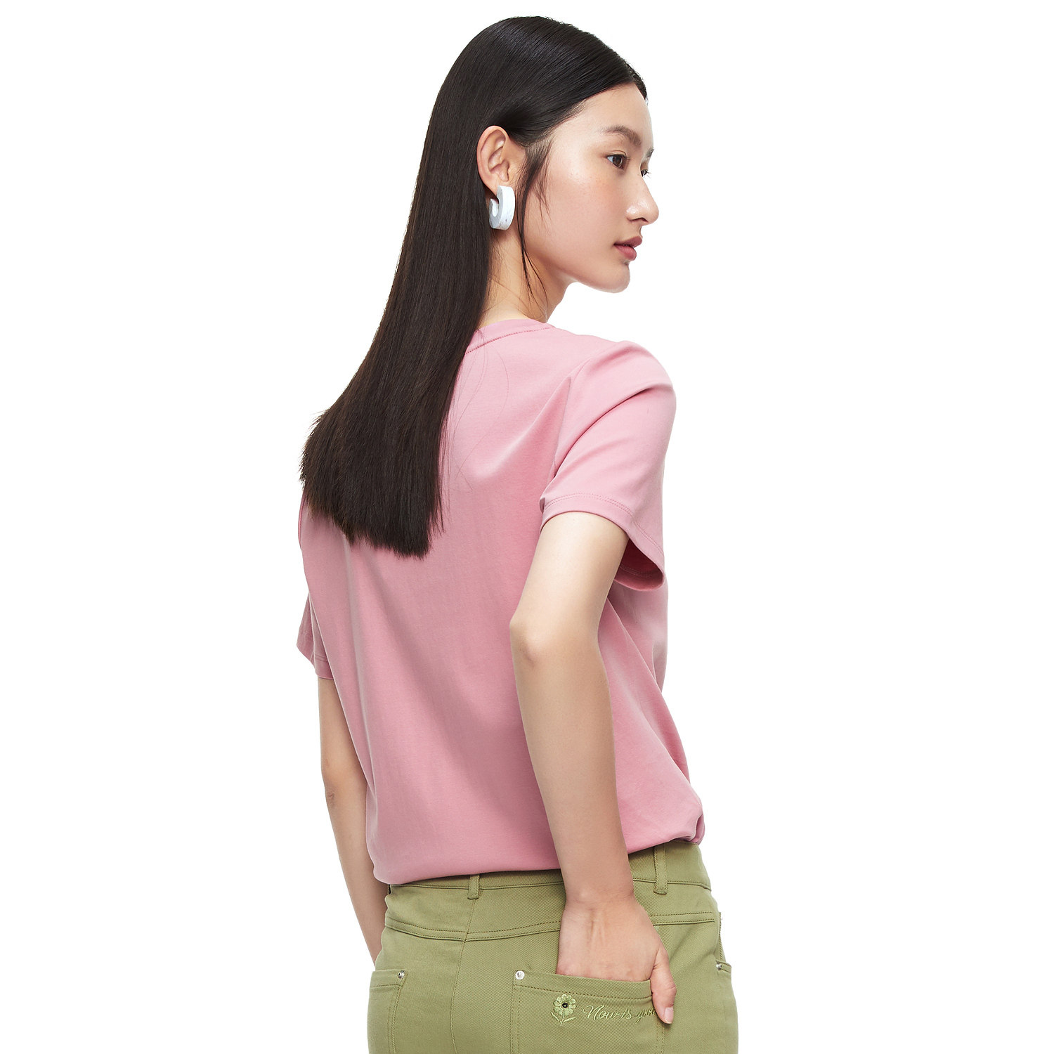 玖姿2021夏季新款安娜蔻系列纯色圆领热带水果串珠时尚女短袖T恤