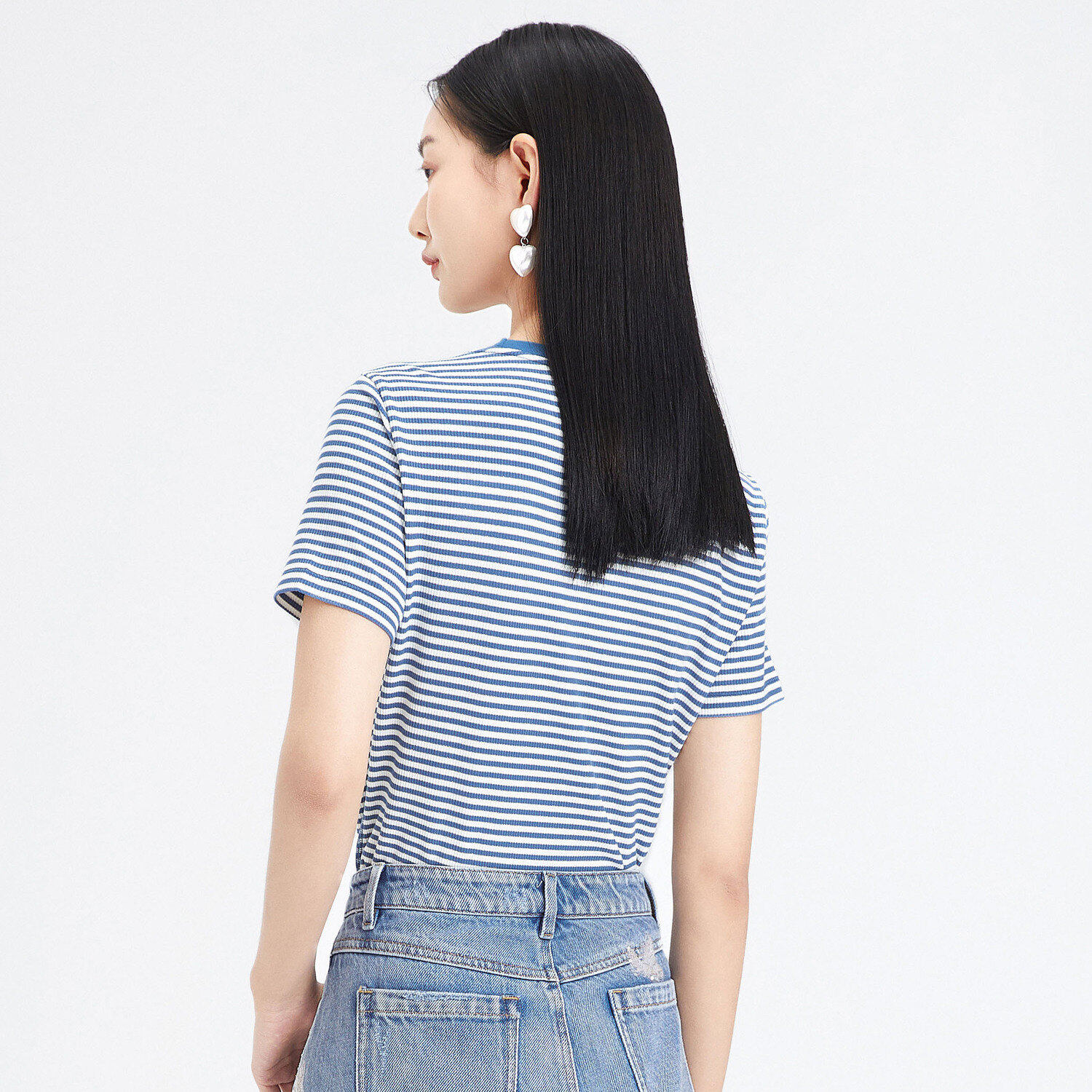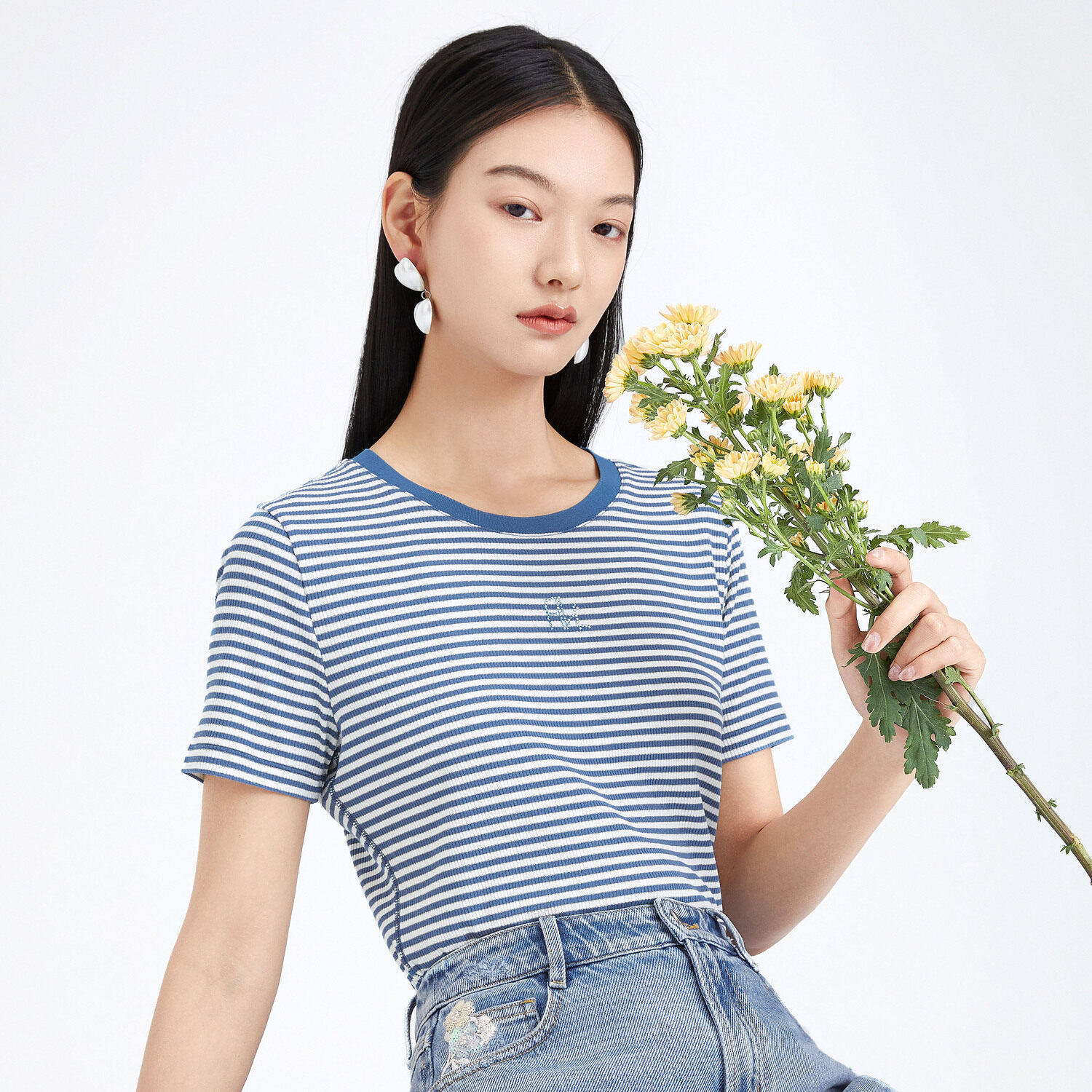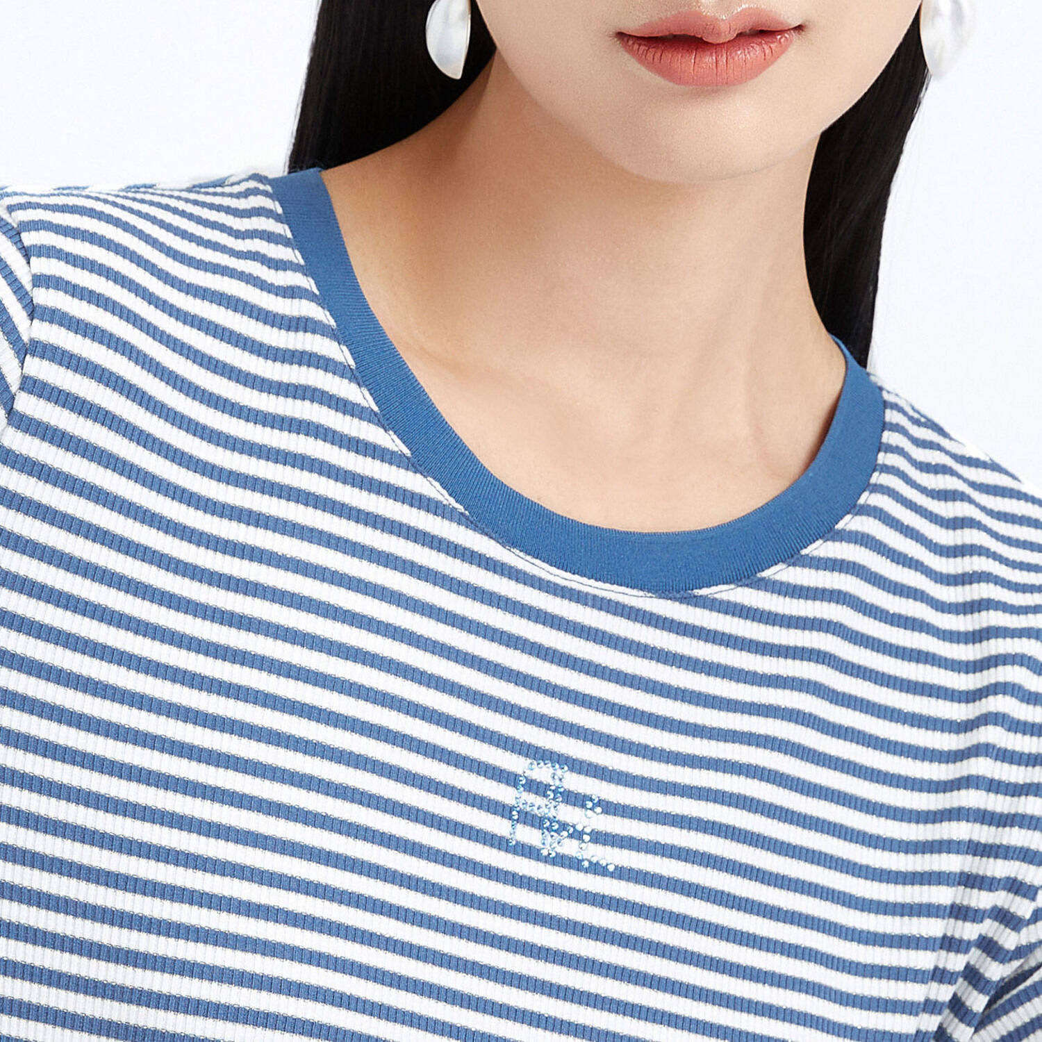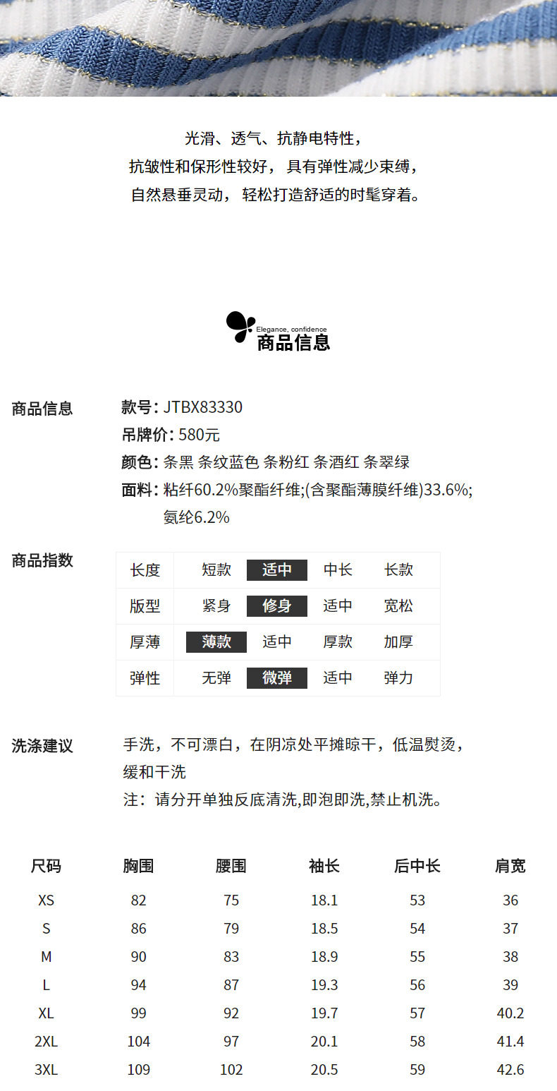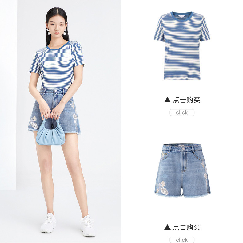 首页 > 玖姿专区 > 玖姿服饰 > 玖姿2021夏季新款安娜蔻系列时尚条纹烫钻自然修身女短袖针织T恤