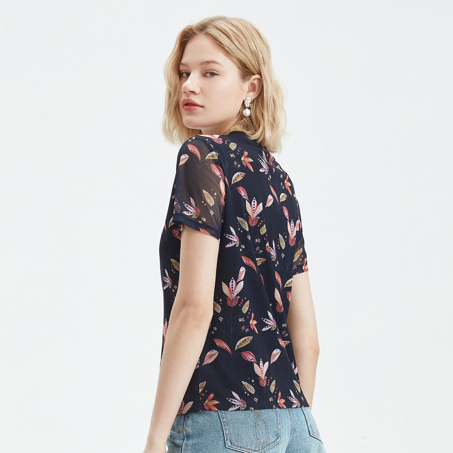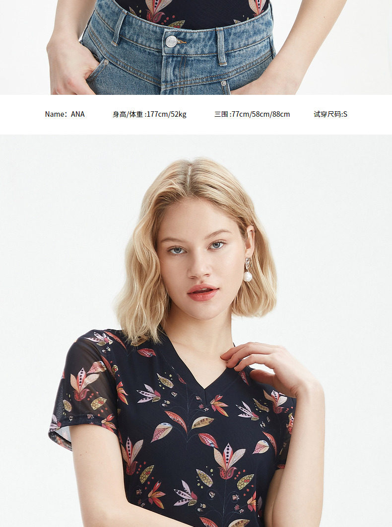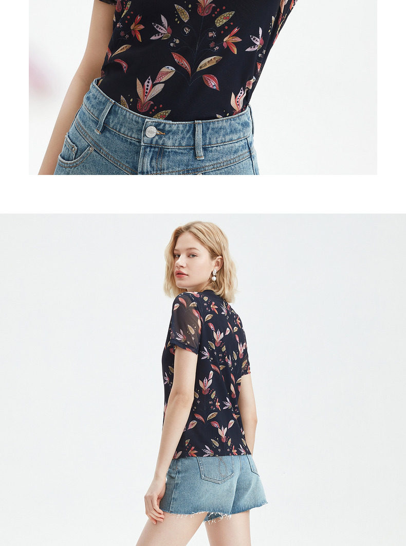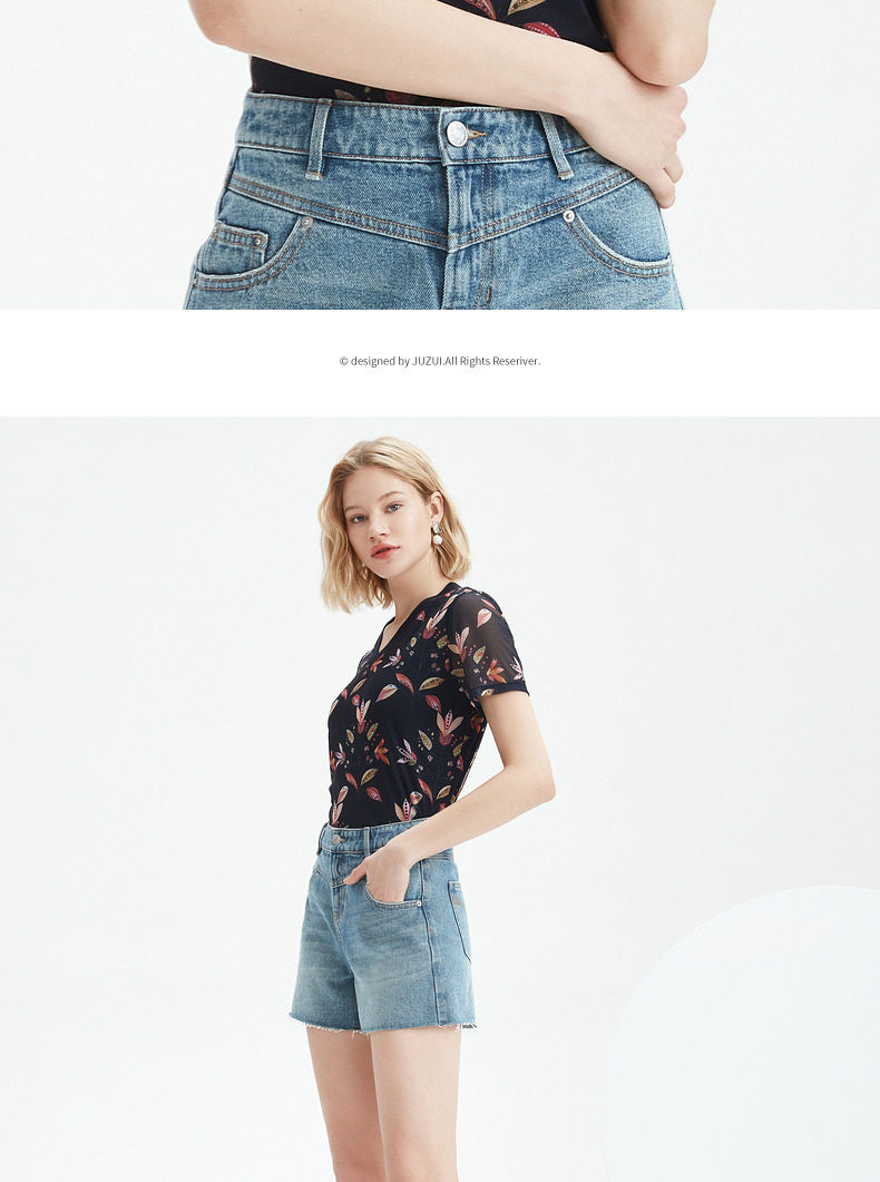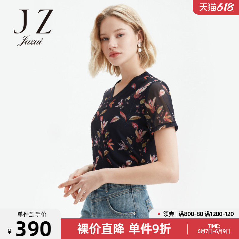 JUZUI/玖姿官方旗舰店2021夏季新款豌豆花休闲时尚轻盈凉爽女小衫