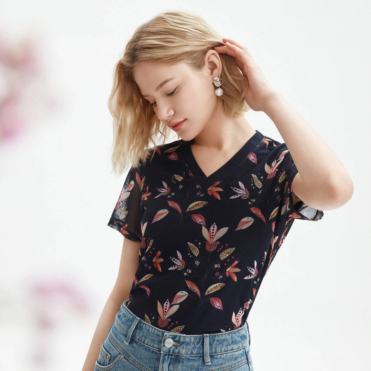 首页 > 玖姿专区 > 玖姿服饰 > JUZUI/玖姿官方旗舰店2021夏季新款豌豆花休闲时尚轻盈凉爽女小衫