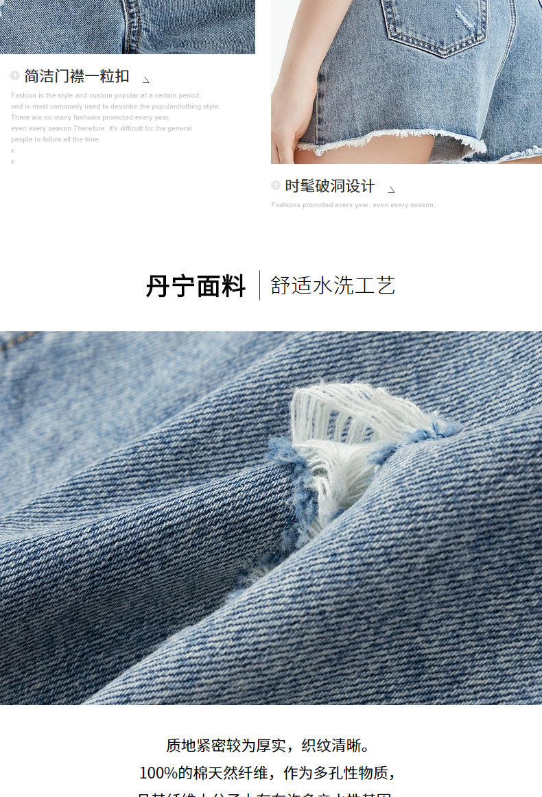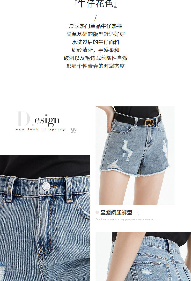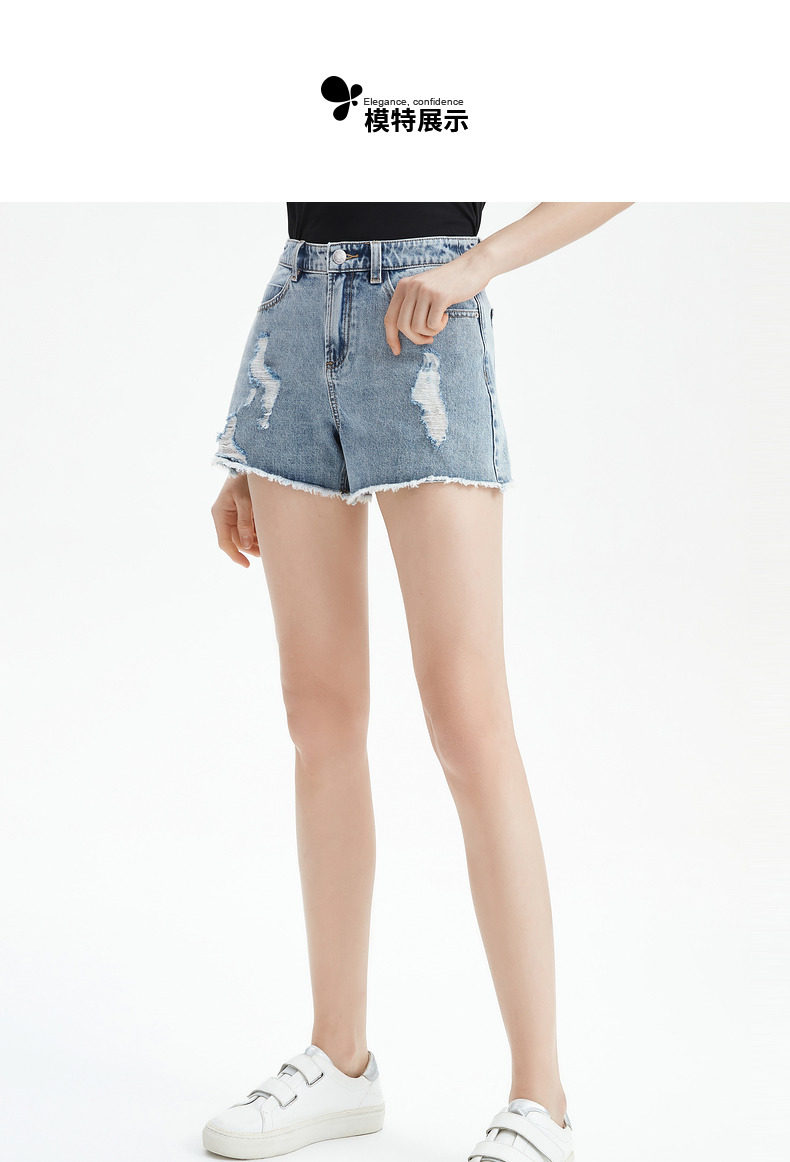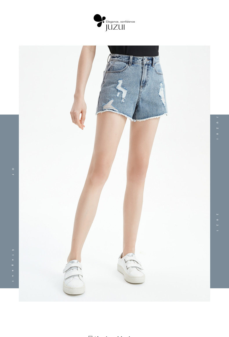 JUZUI/玖姿官方旗舰店2021夏季新款蓝色清新直筒破洞毛边女牛仔裤