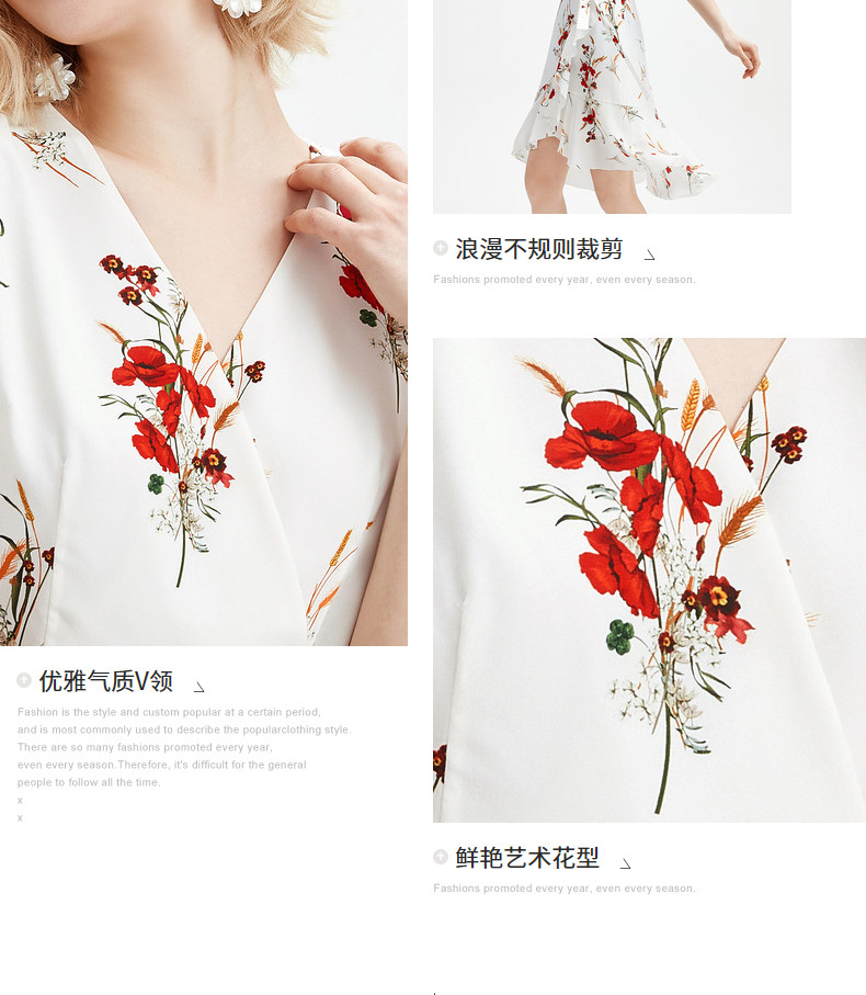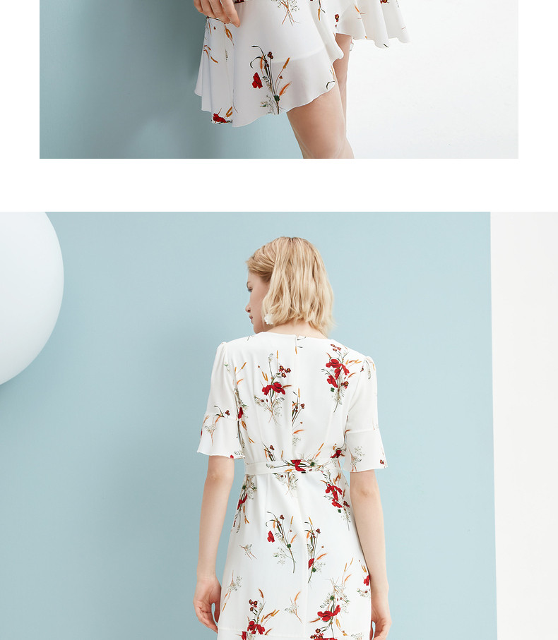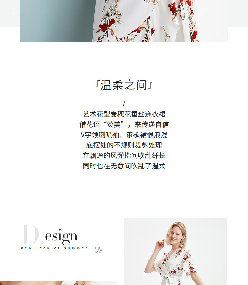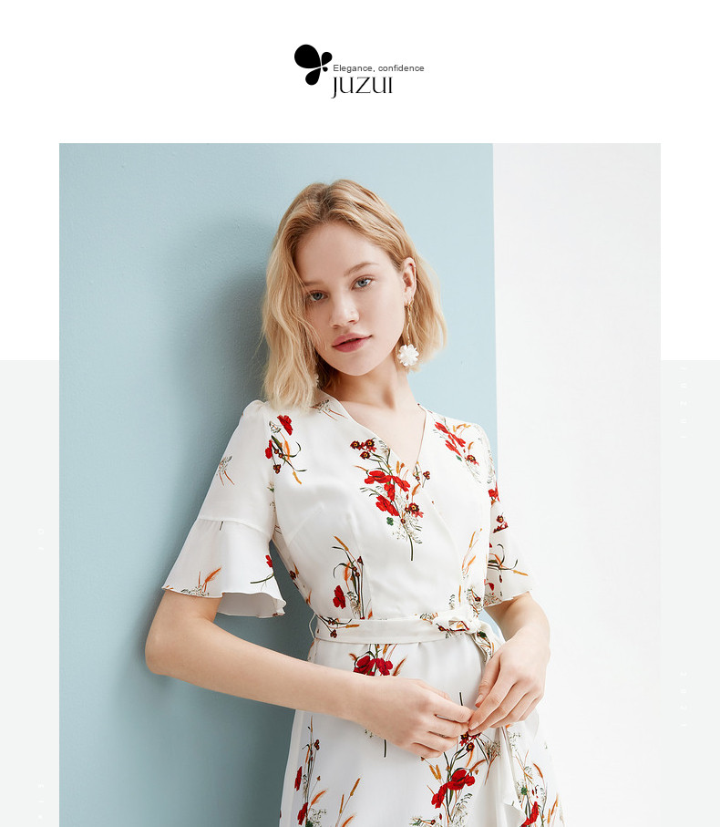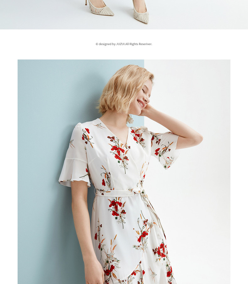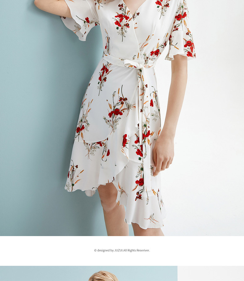 首页 > 玖姿专区 > 玖姿服饰 > JUZUI/玖姿官方旗舰店2021夏季新款白色真丝印花不规则女连衣裙