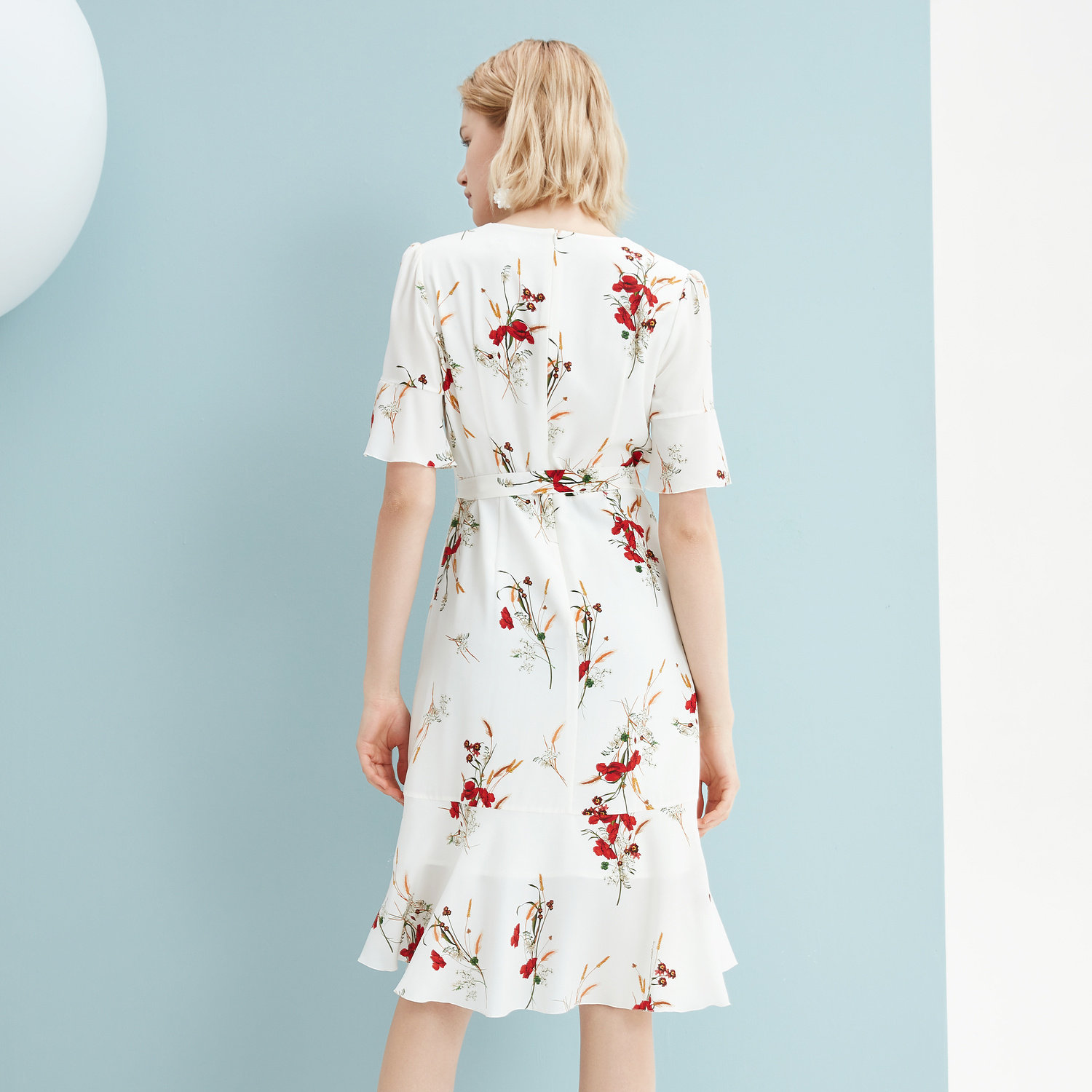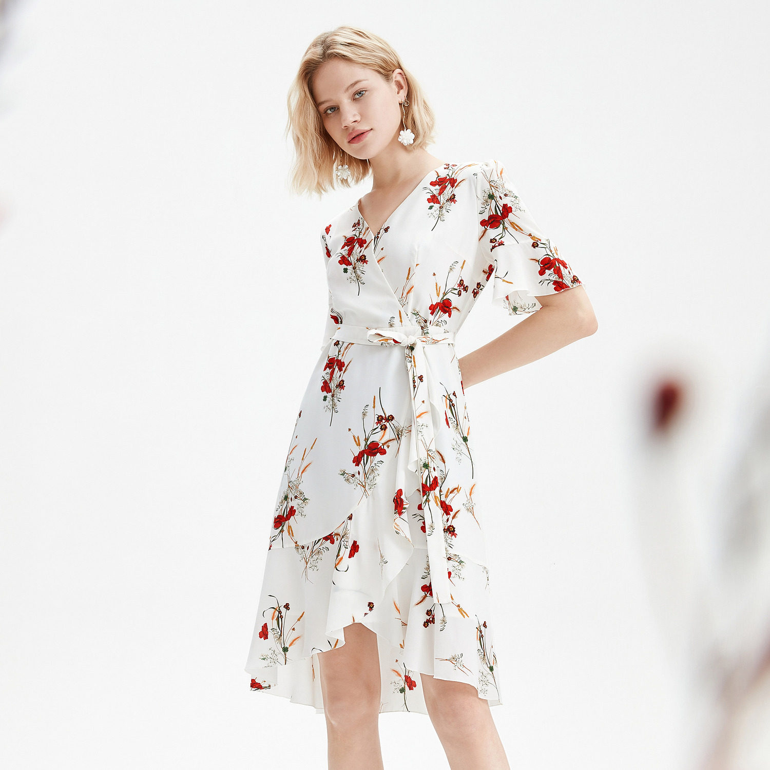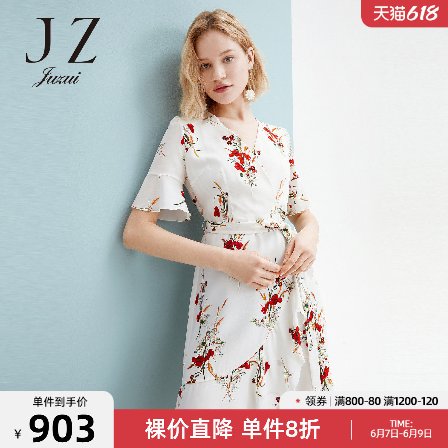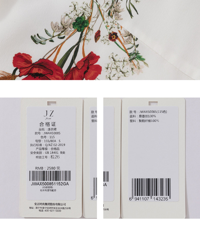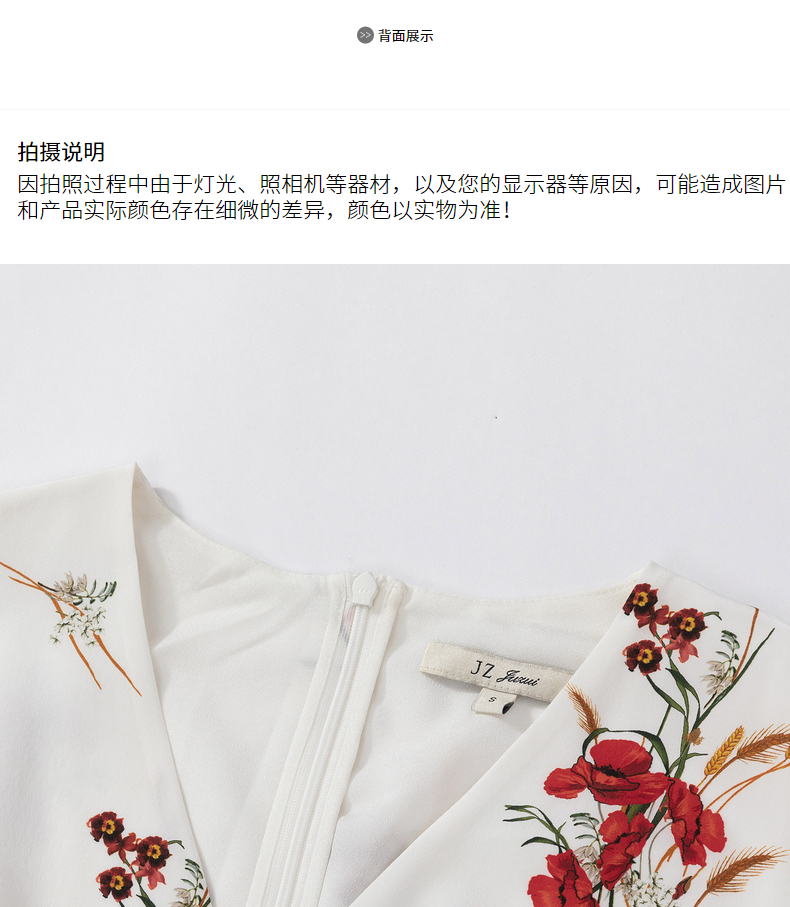 首页 > 玖姿专区 > 玖姿服饰 > JUZUI/玖姿官方旗舰店2021夏季新款白色真丝印花不规则女连衣裙