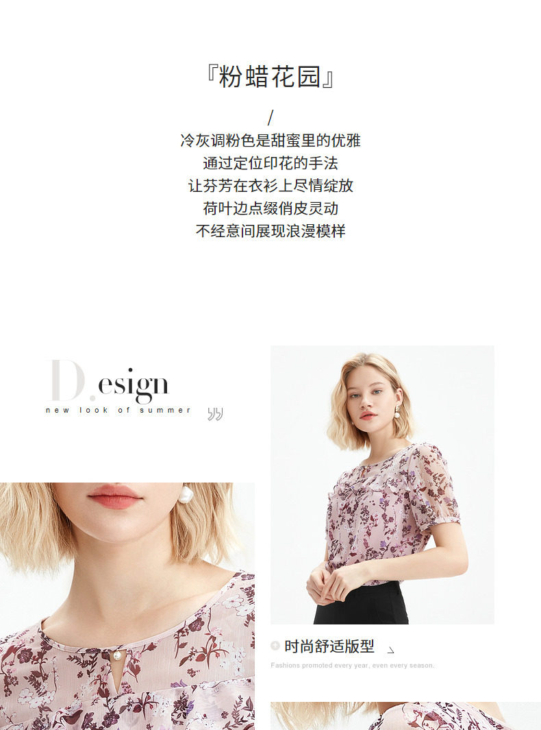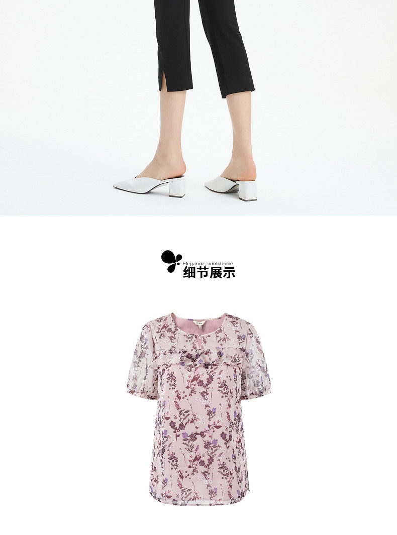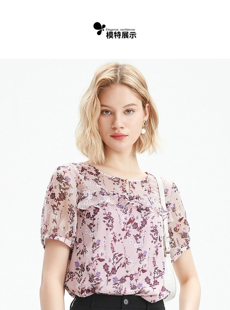 JUZUI/玖姿官方旗舰店2021夏季新款优雅碎花轻盈单上衣女雪纺衫