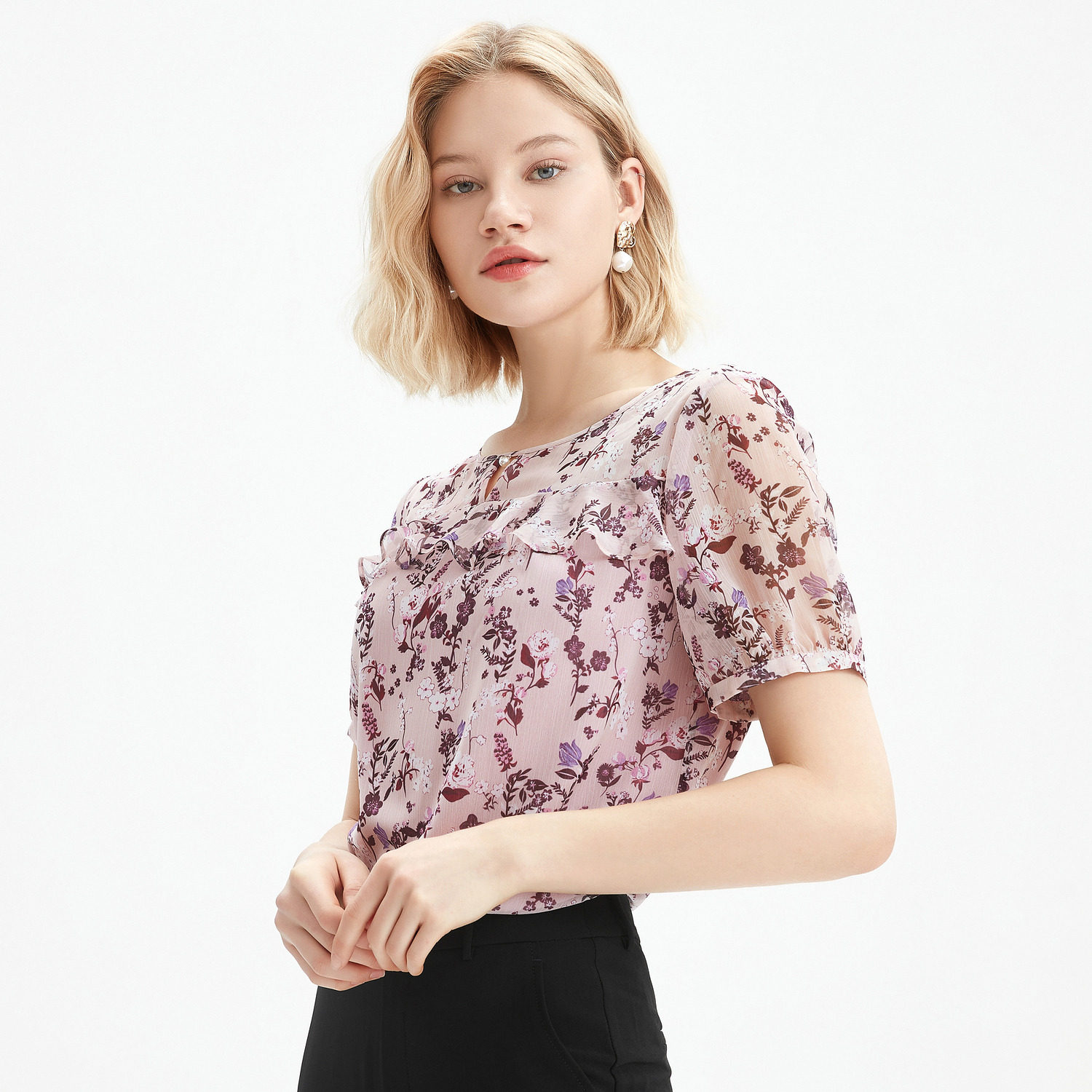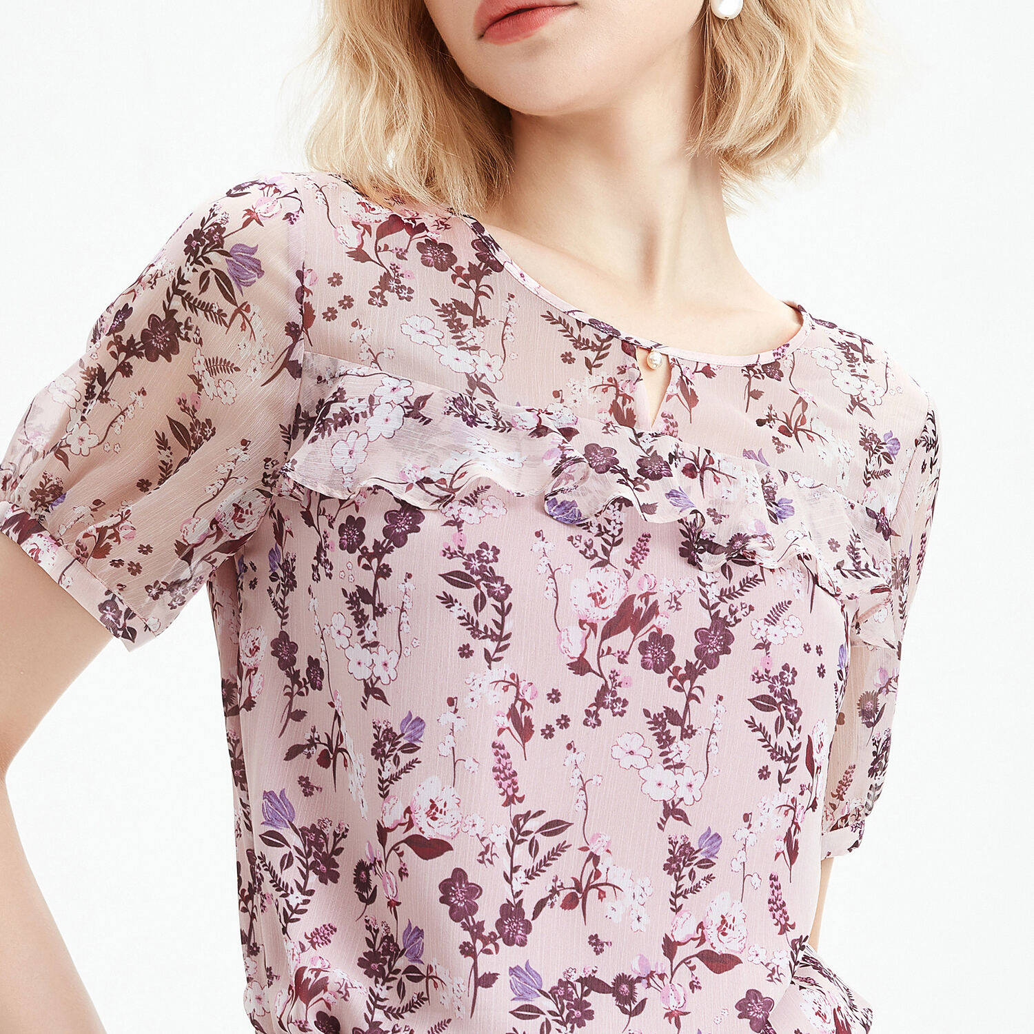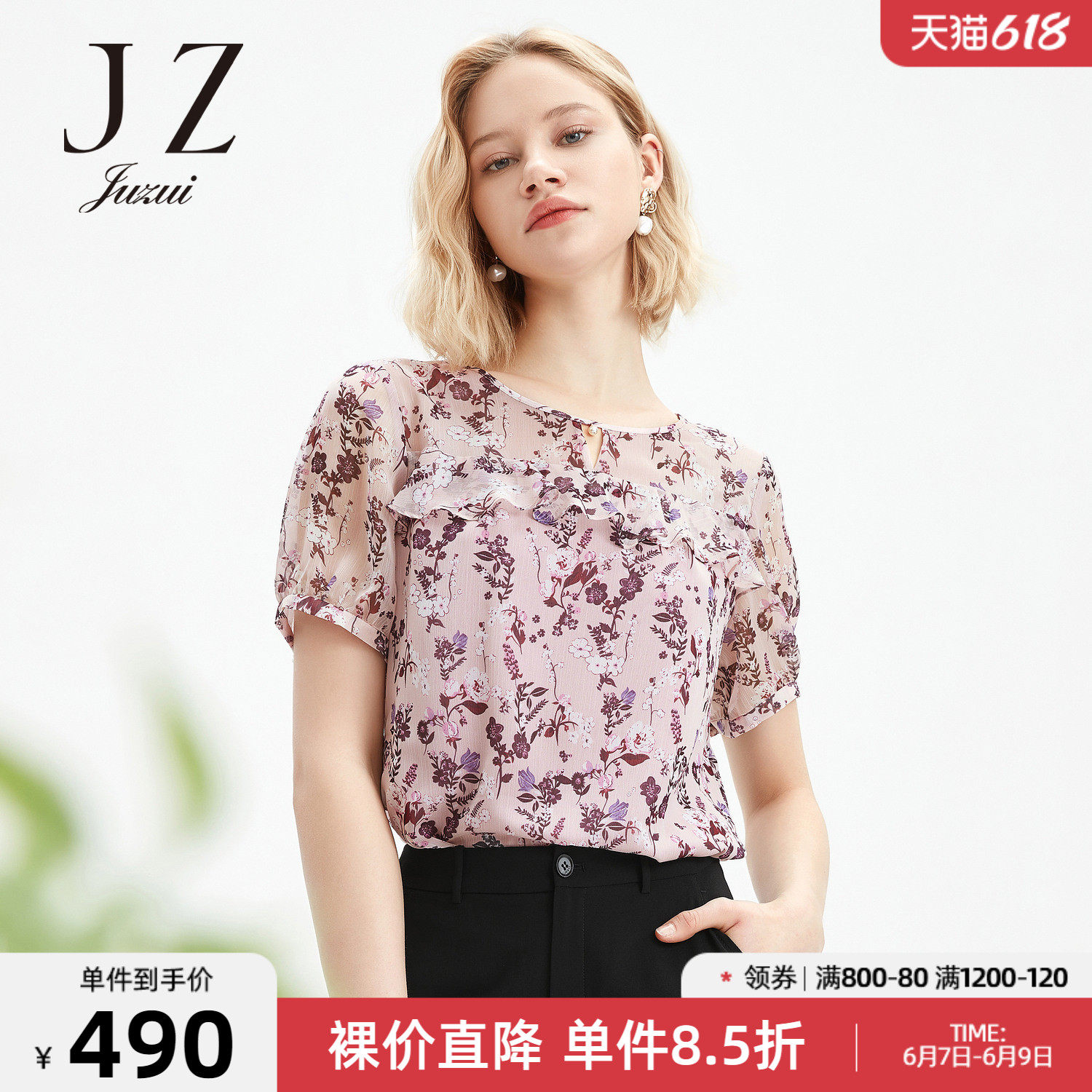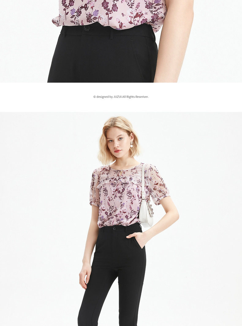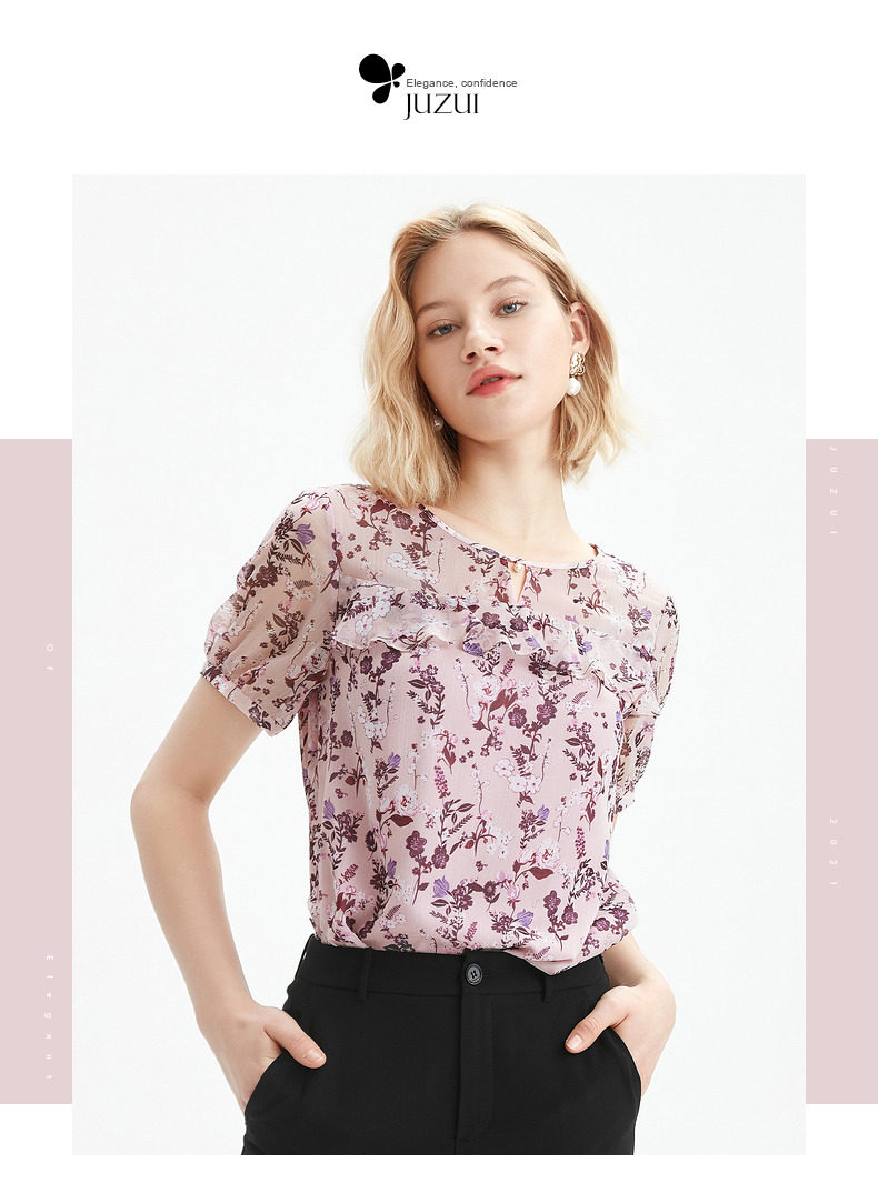 首页 > 玖姿专区 > 玖姿服饰 > JUZUI/玖姿官方旗舰店2021夏季新款优雅碎花轻盈单上衣女雪纺衫