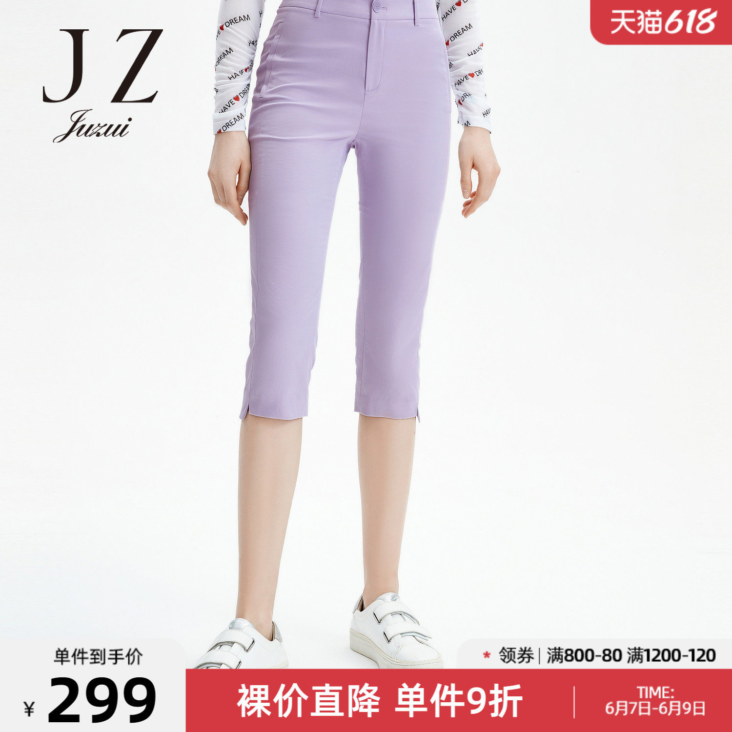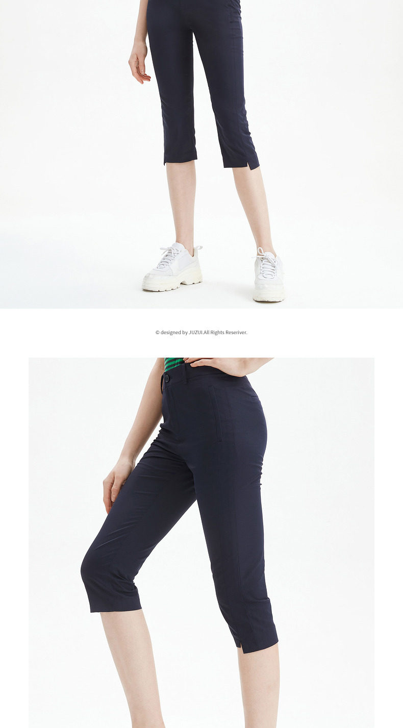 JUZUI/玖姿官方旗舰店2021夏季新款纯色修身时尚都市女七分休闲裤