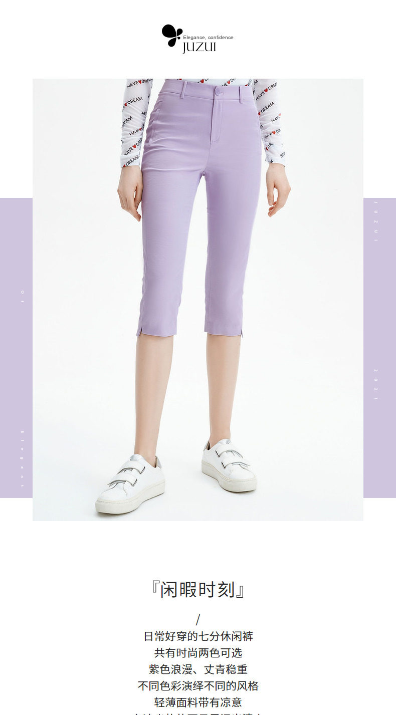首页 > 玖姿专区 > 玖姿服饰 > JUZUI/玖姿官方旗舰店2021夏季新款纯色修身时尚都市女七分休闲裤