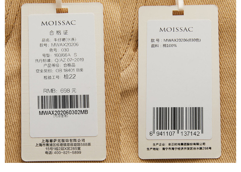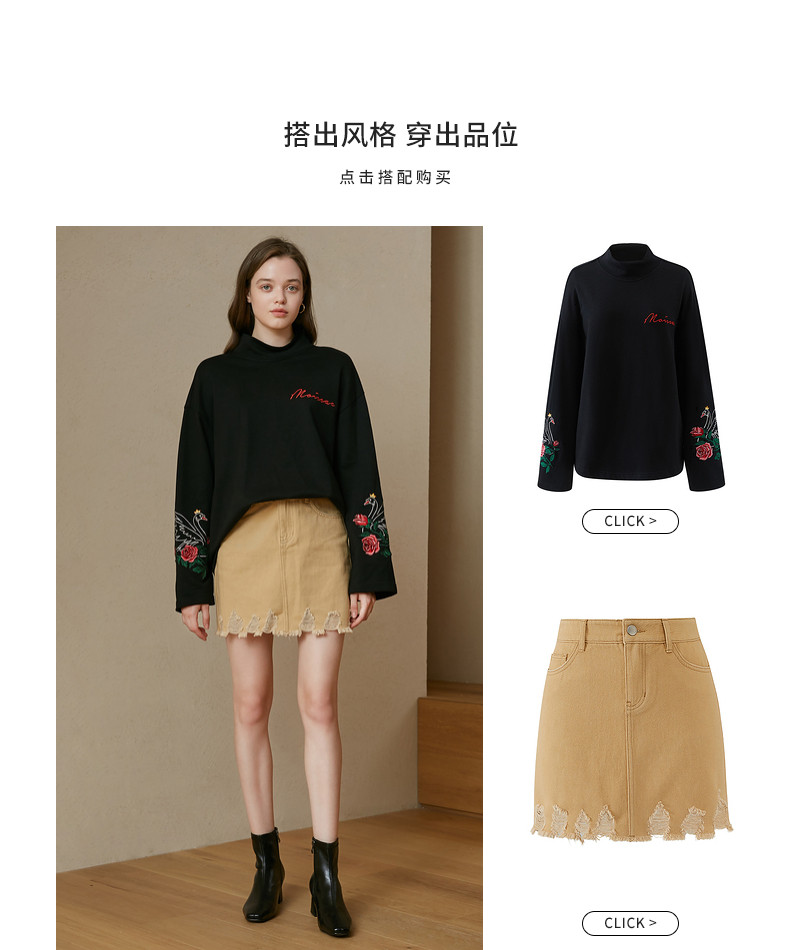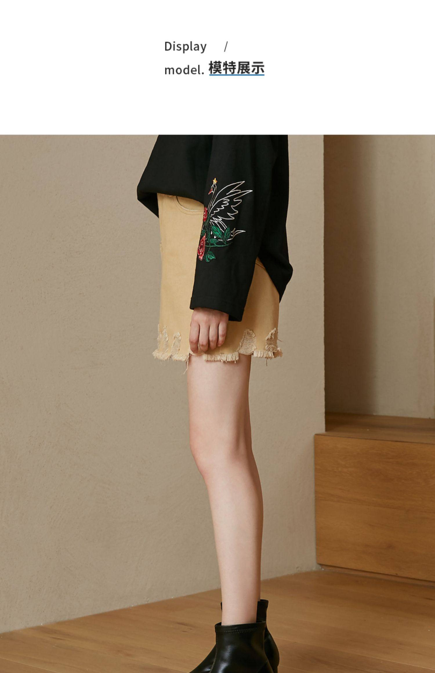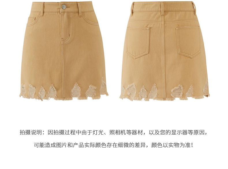 首页 > 玖姿专区 > 玖姿服饰 > MOISSAC/摩萨克2021夏季新款卡其色高腰破洞时尚直身女牛仔半身裙