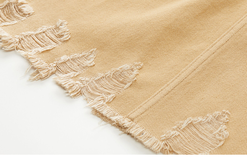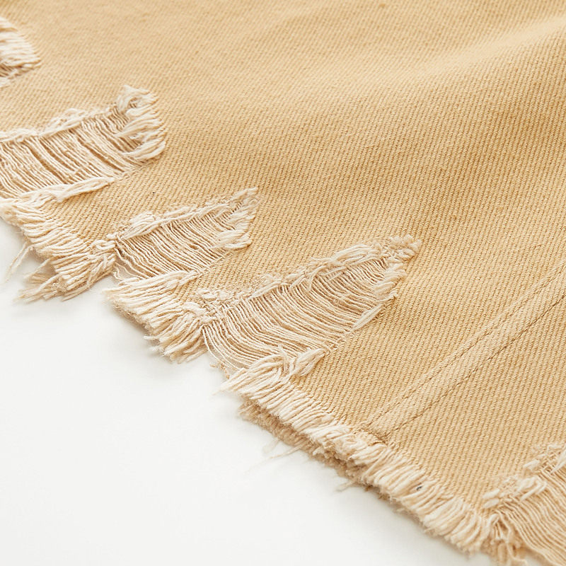 MOISSAC/摩萨克2021夏季新款卡其色高腰破洞时尚直身女牛仔半身裙