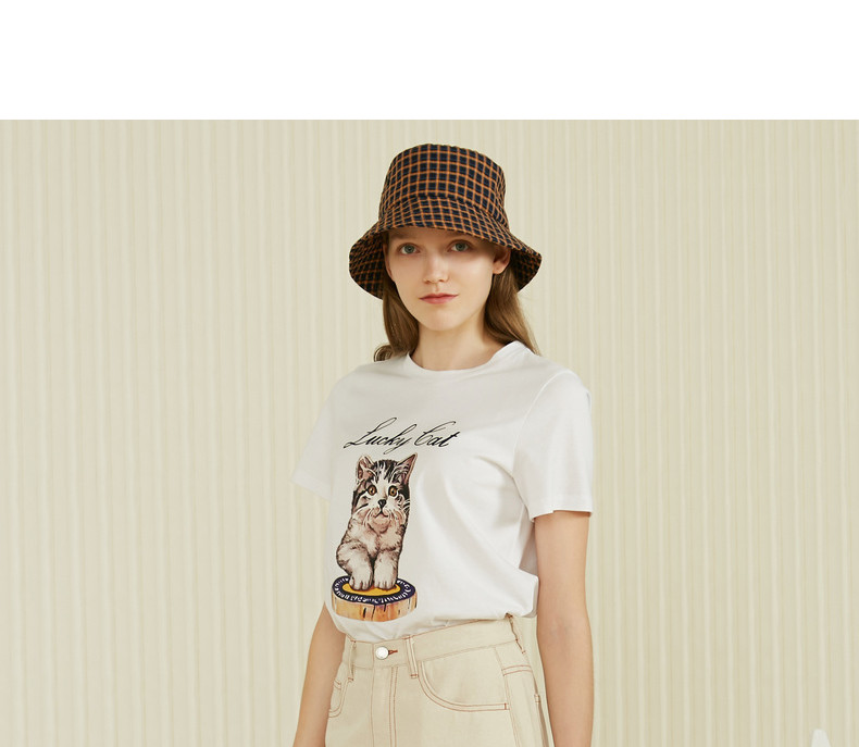 首页 > 玖姿专区 > 玖姿服饰 > MOISSAC/摩萨克2021夏季新款纯色圆领休闲时尚猫咪印花短袖女T恤