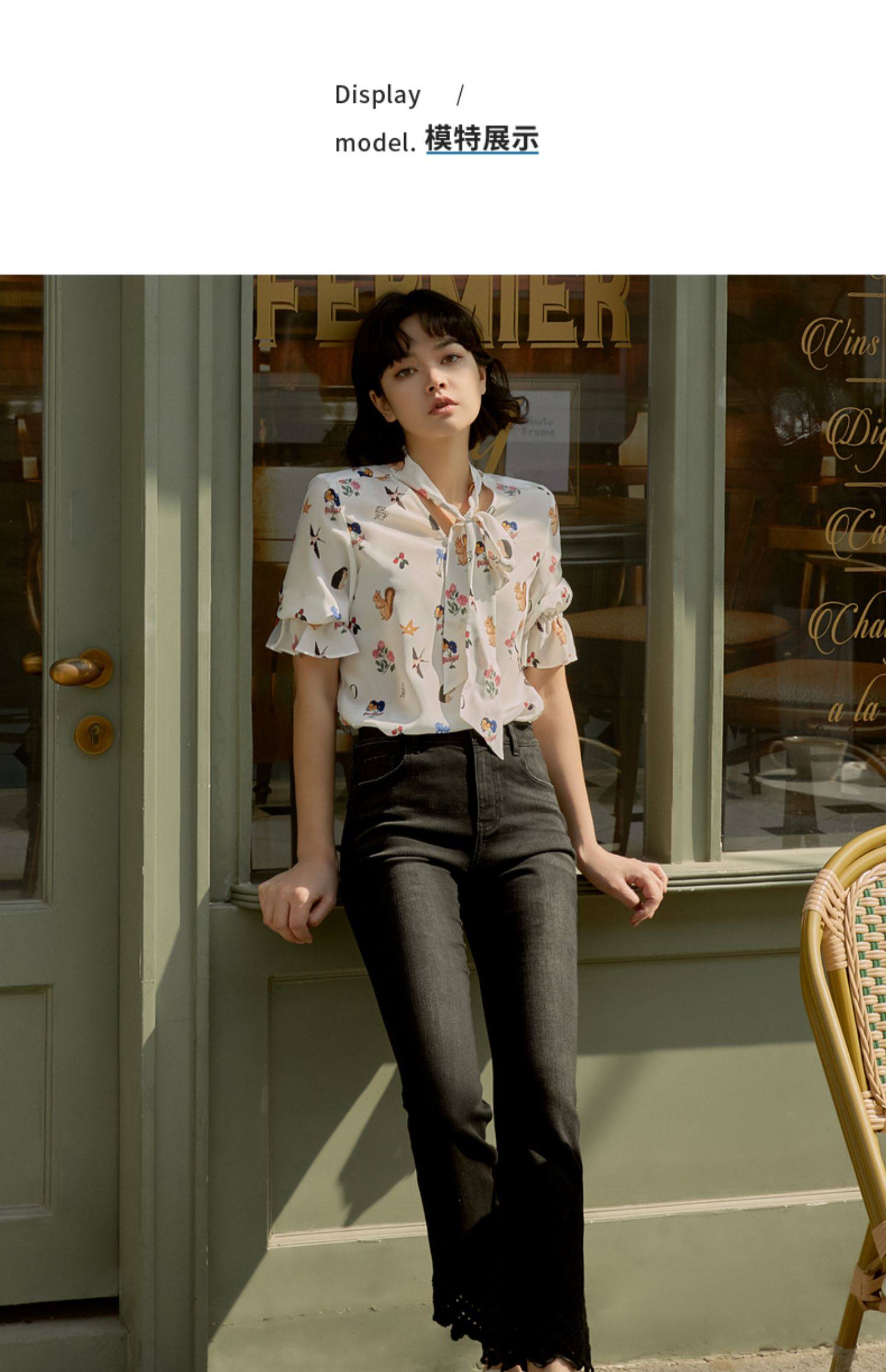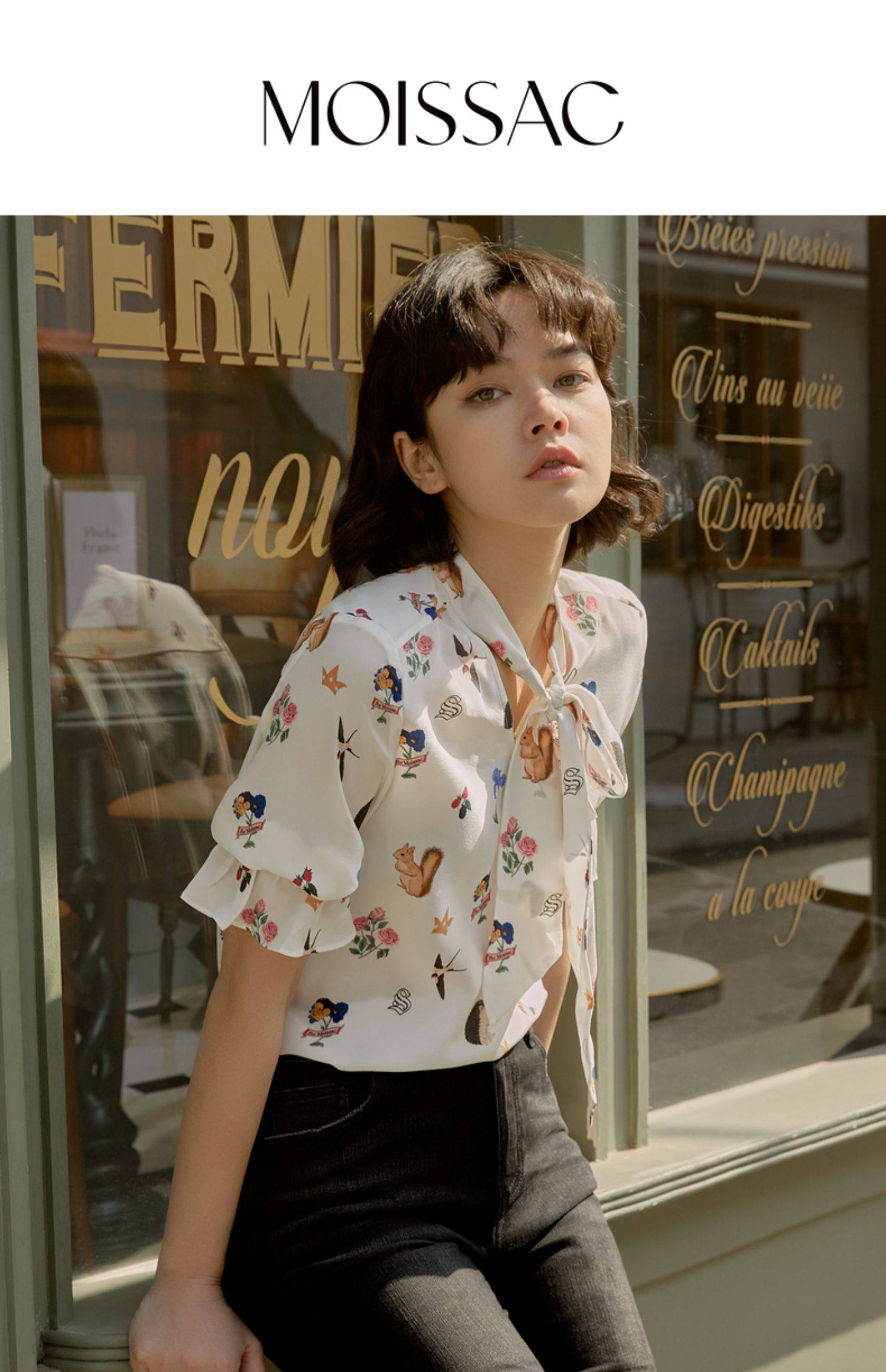 首页 > 玖姿专区 > 玖姿服饰 > MOISSAC/摩萨克2021夏季新款真丝森系小清新系带优雅时尚女单上衣