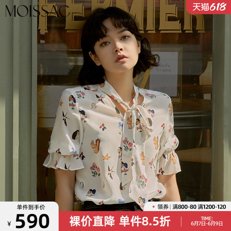 MOISSAC/摩萨克2021夏季新款真丝森系小清新系带优雅时尚女单上衣