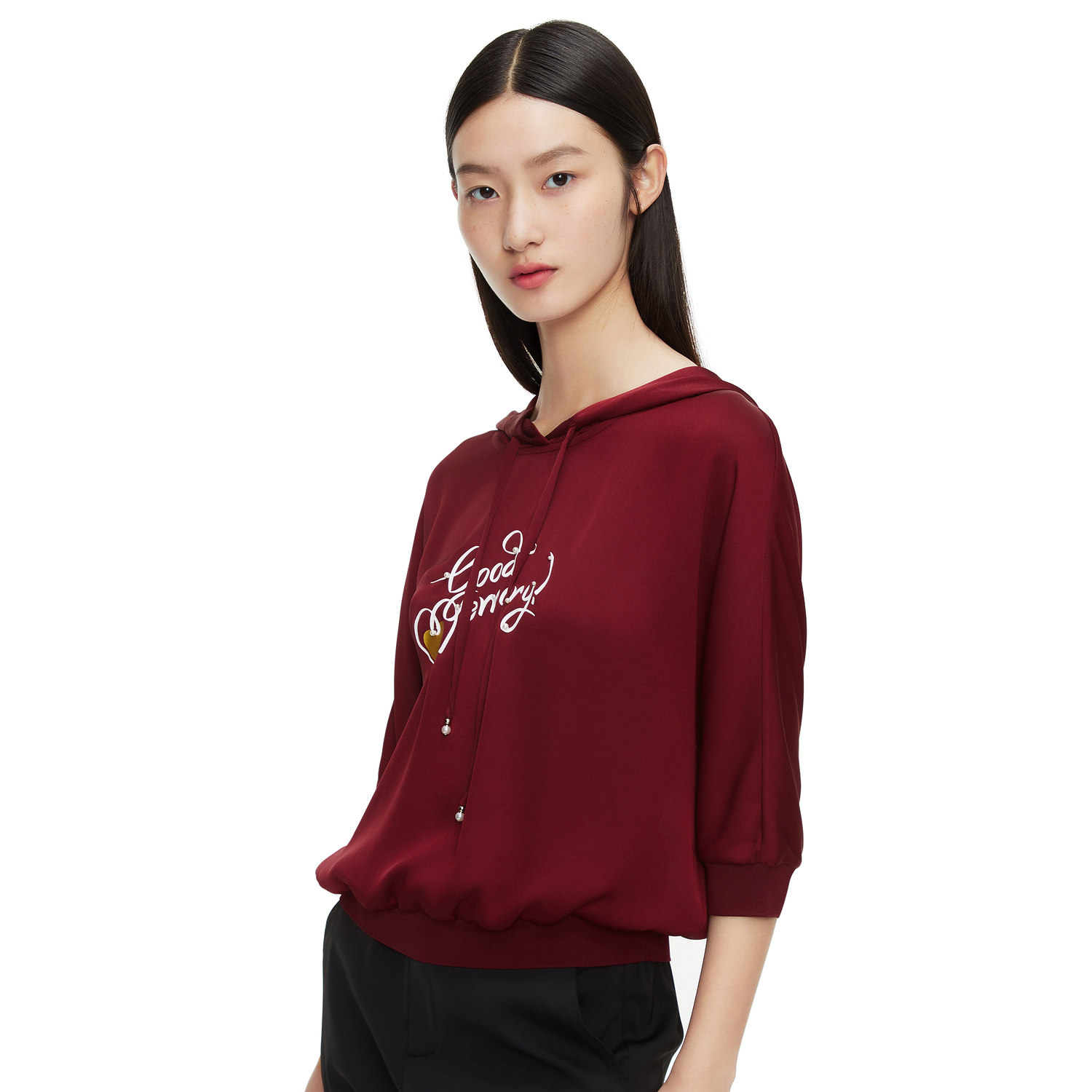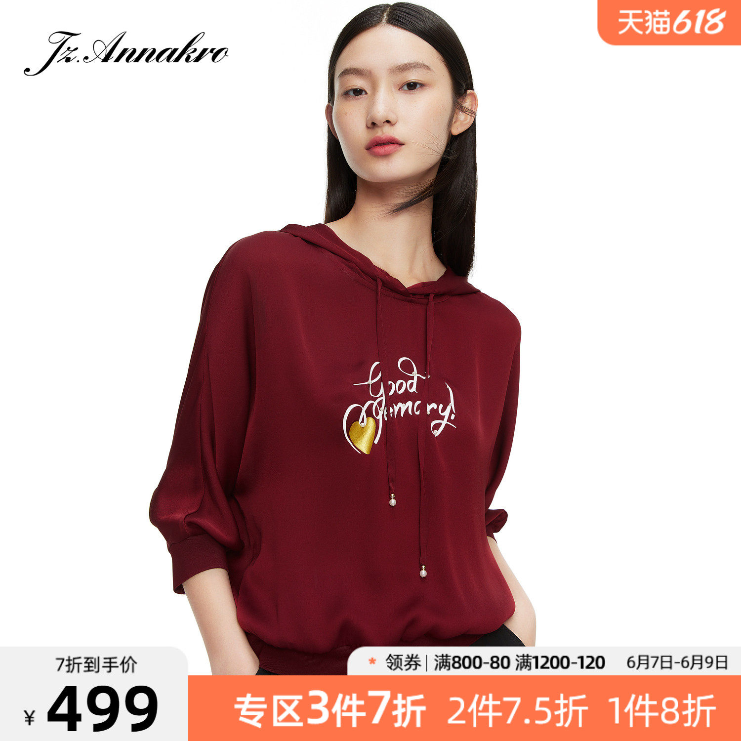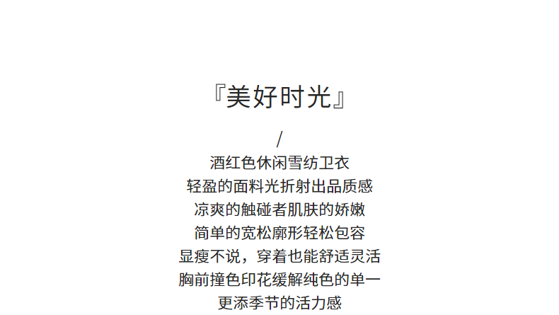 首页 > 玖姿专区 > 玖姿服饰 > 玖姿2021夏季新款安娜蔻系列酒红色休闲连帽印花休闲女轻盈雪纺衫