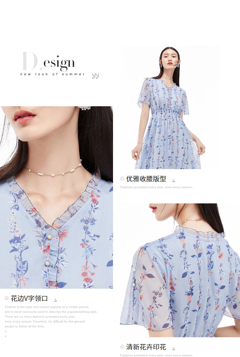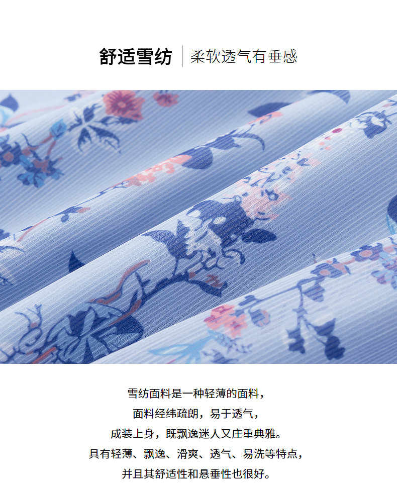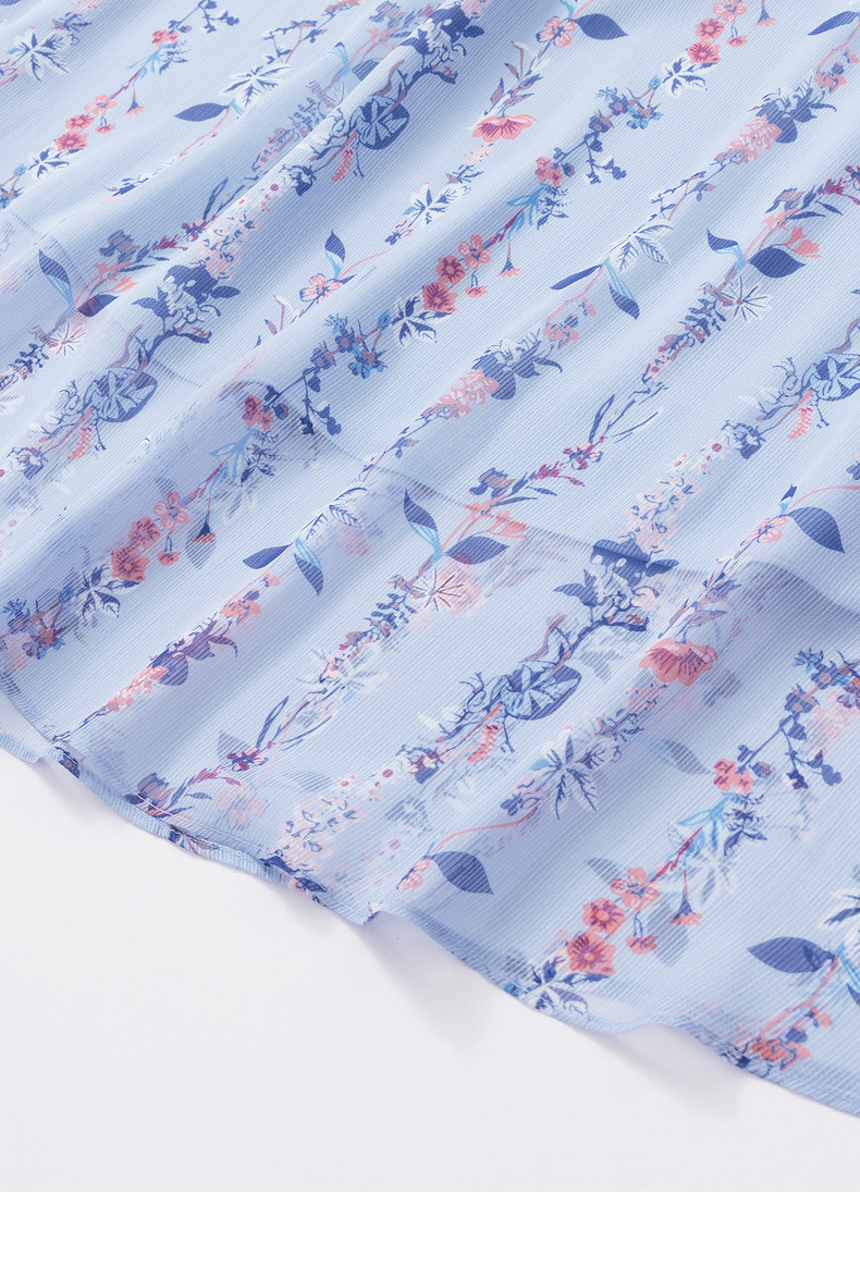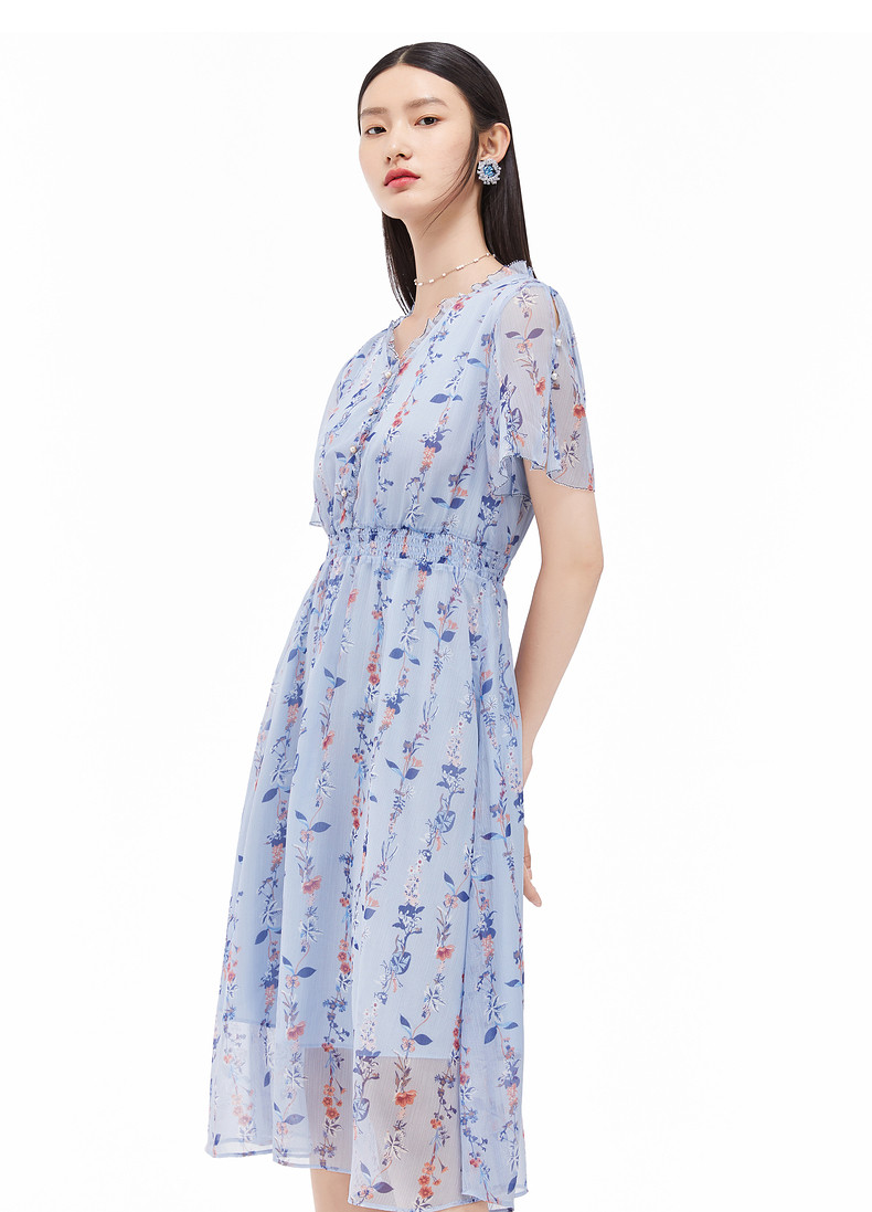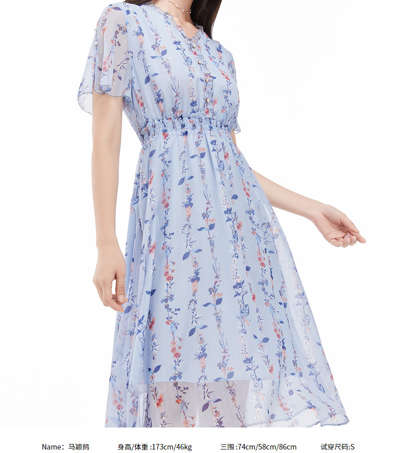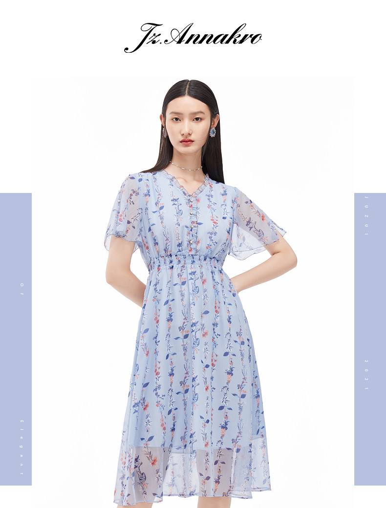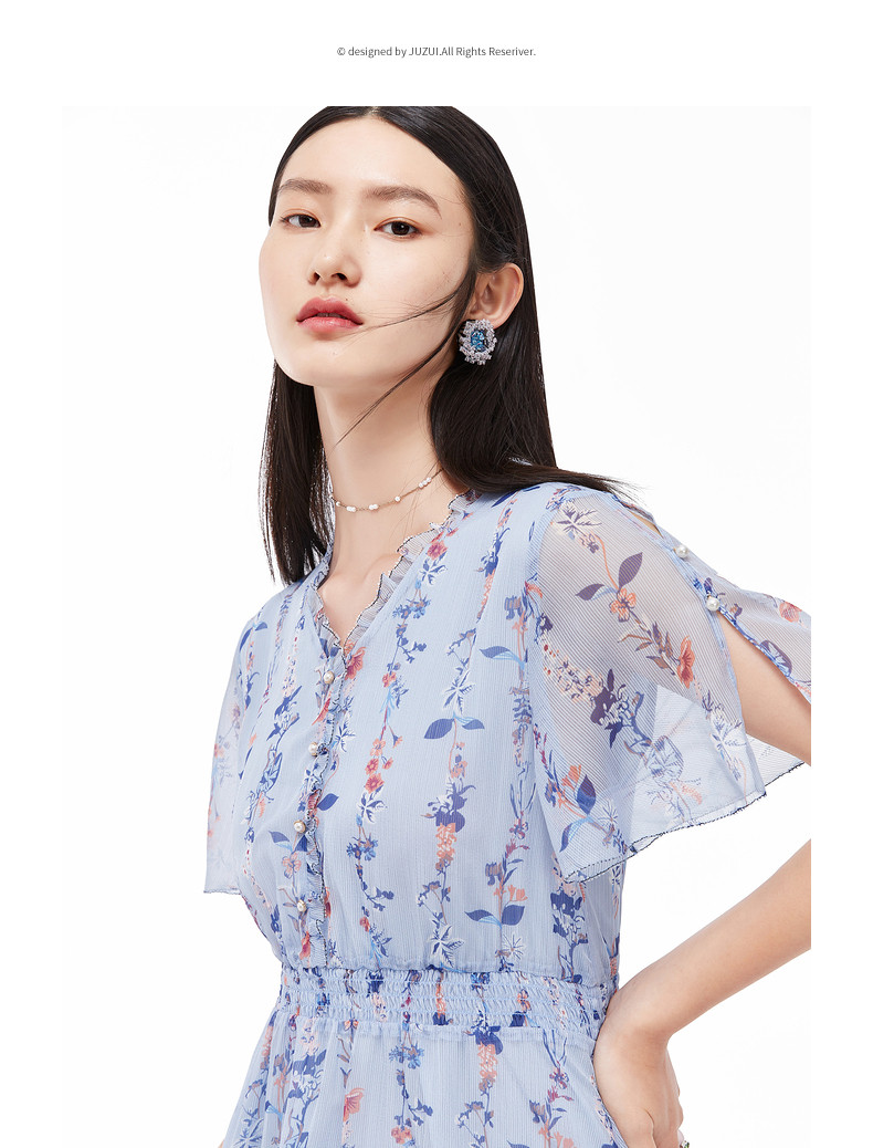 首页 > 玖姿专区 > 玖姿服饰 > 玖姿2021夏季新款安娜蔻系列蓝色碎花优雅小清新收腰女雪纺连衣裙
