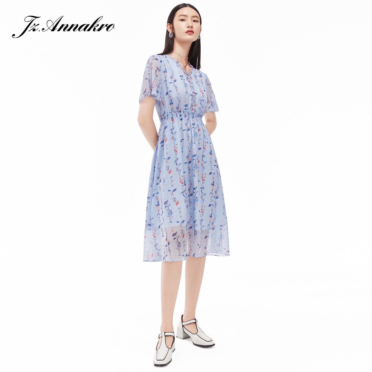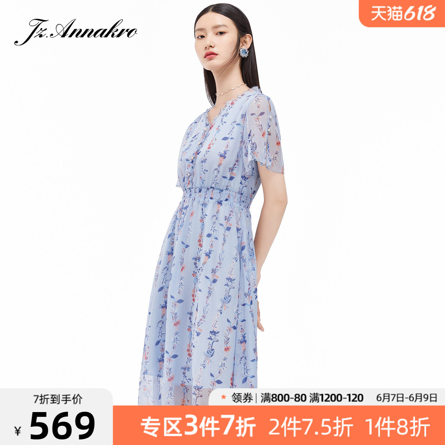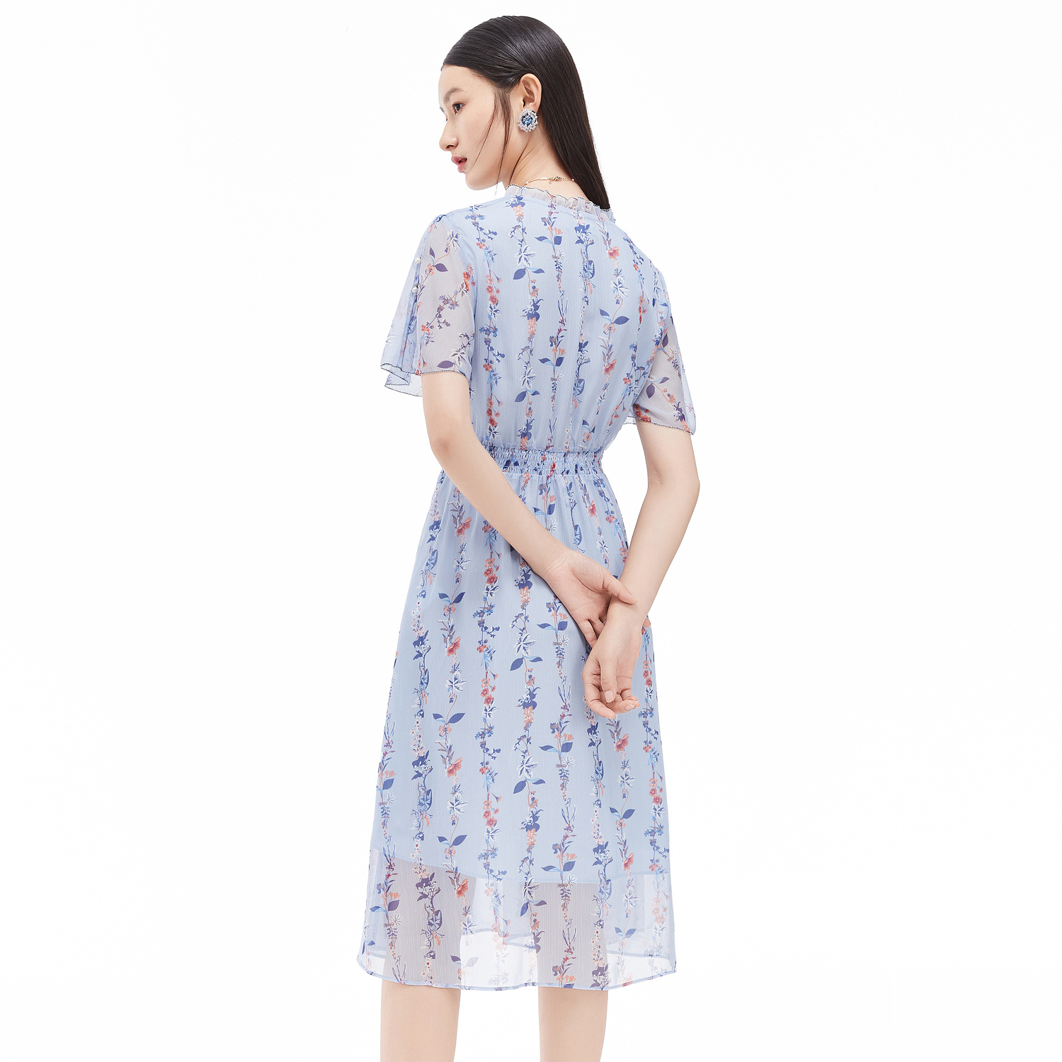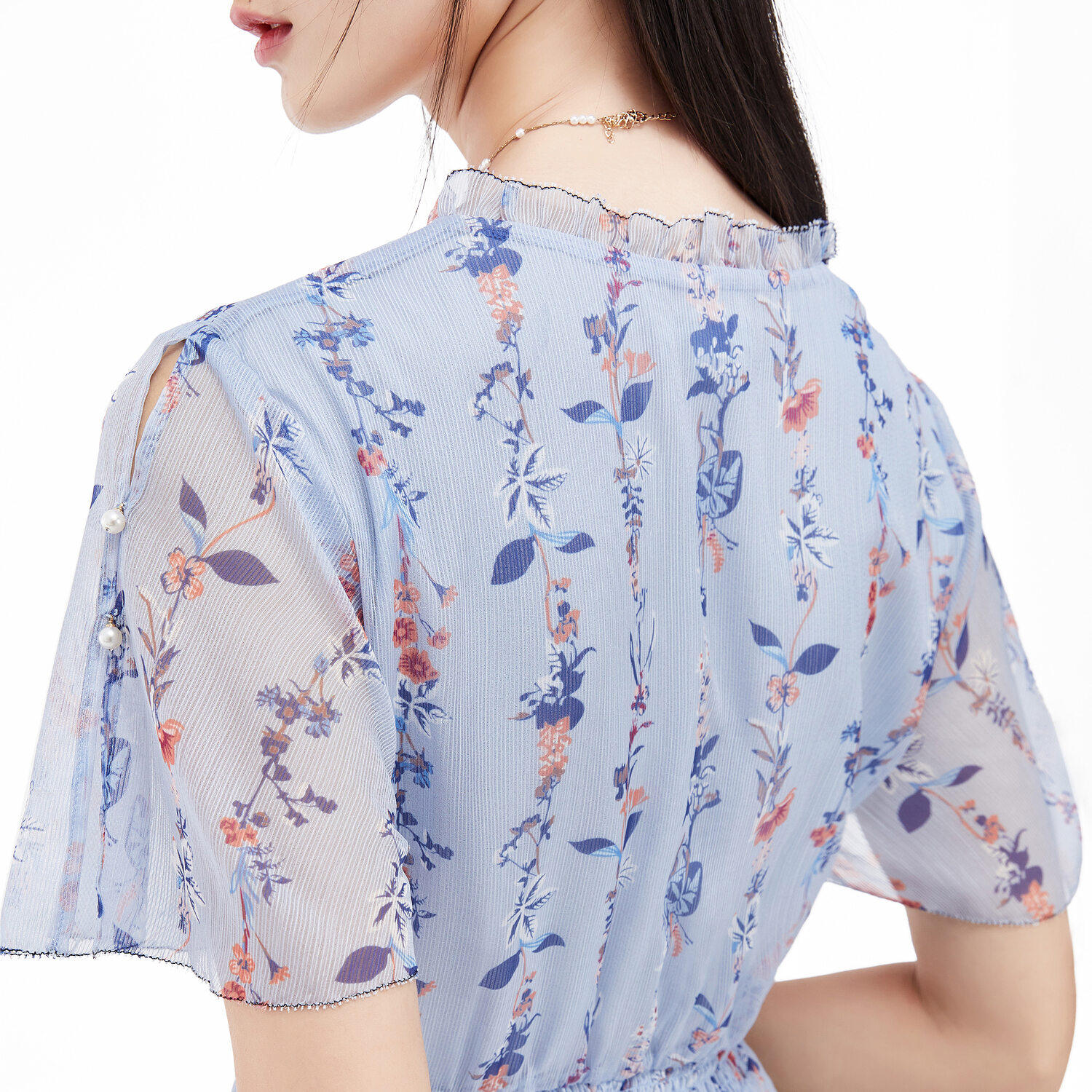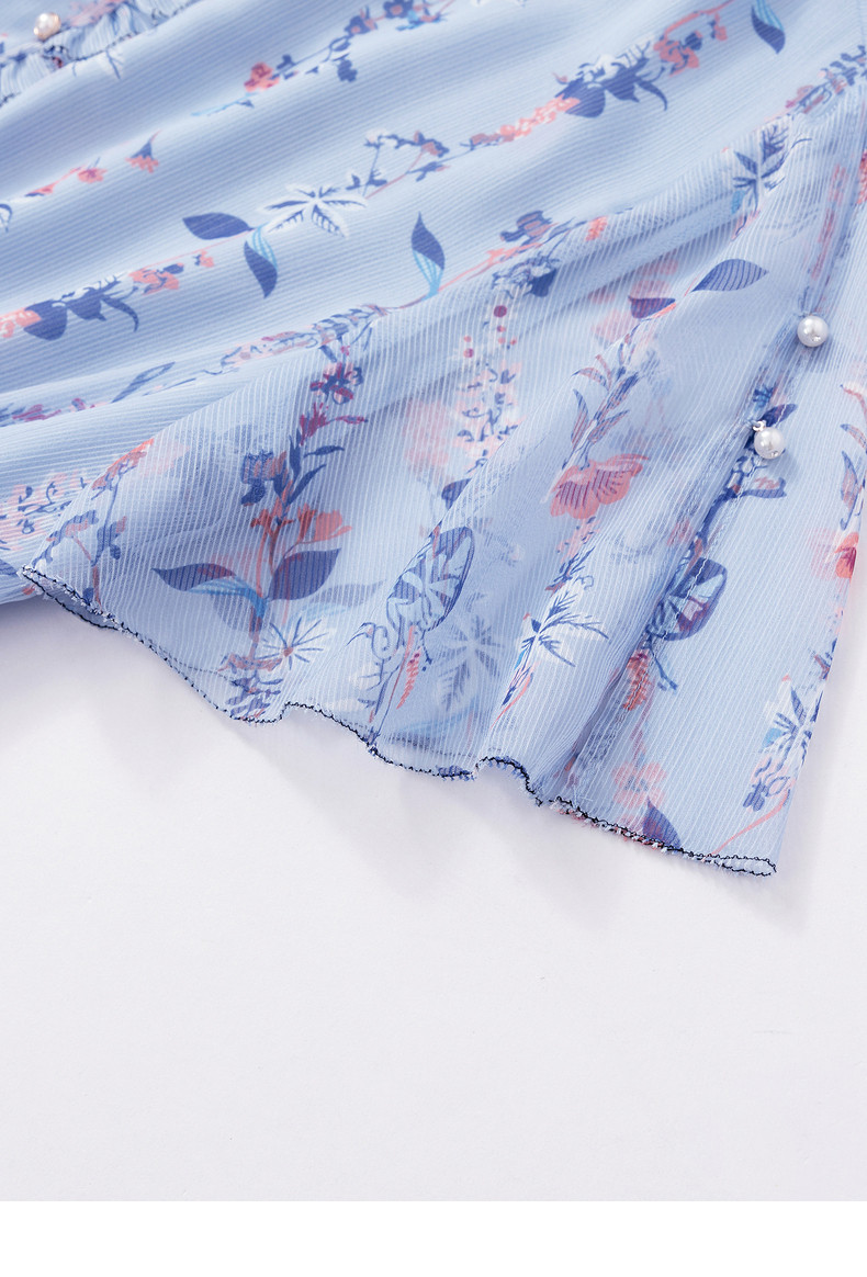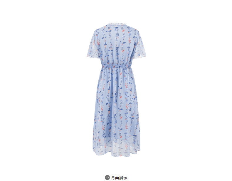首页 > 玖姿专区 > 玖姿服饰 > 玖姿2021夏季新款安娜蔻系列蓝色碎花优雅小清新收腰女雪纺连衣裙