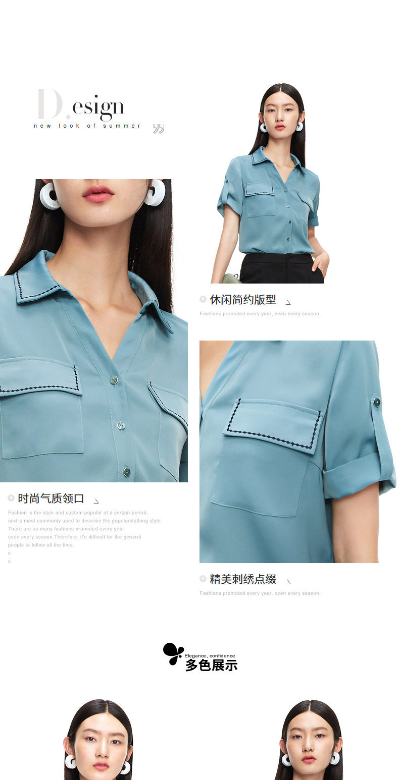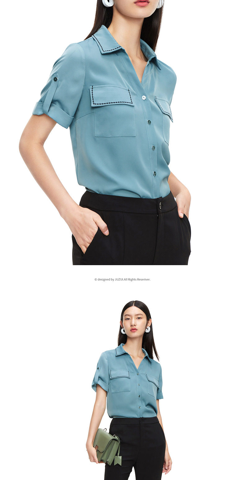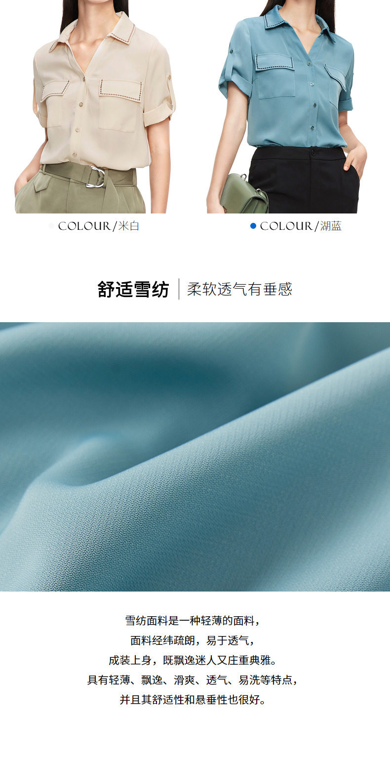 首页 > 玖姿专区 > 玖姿服饰 > 玖姿2021夏季新款安娜蔻系列纯色绣线气质干练通勤时尚女雪纺衬衫