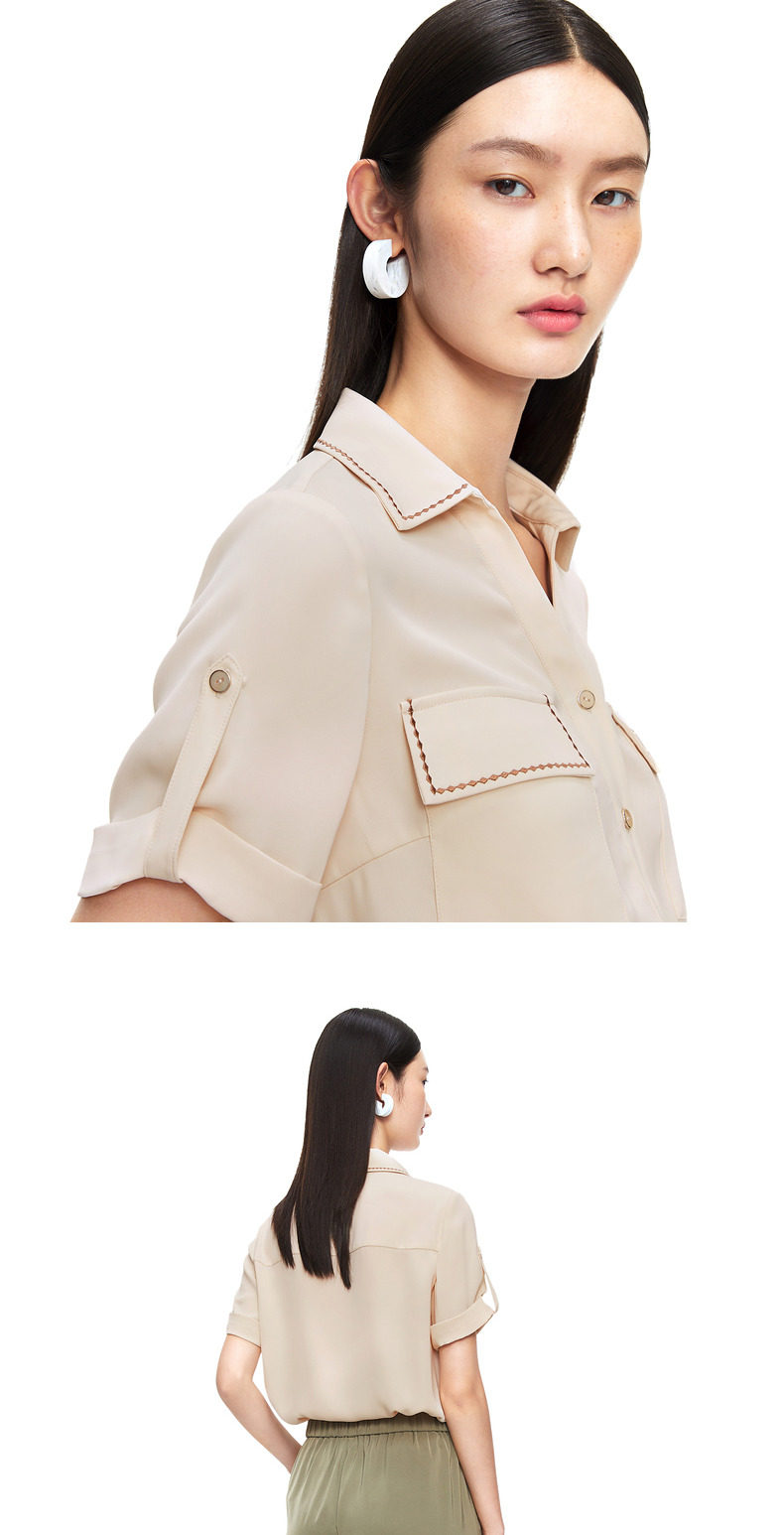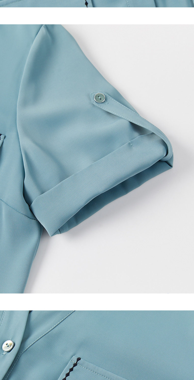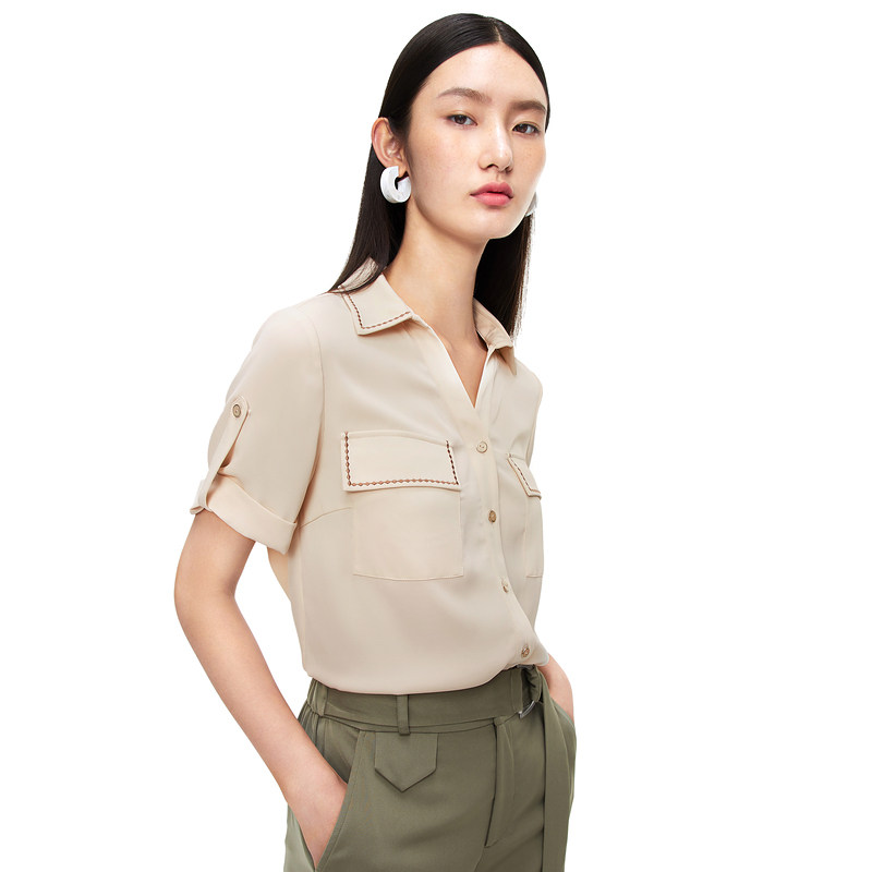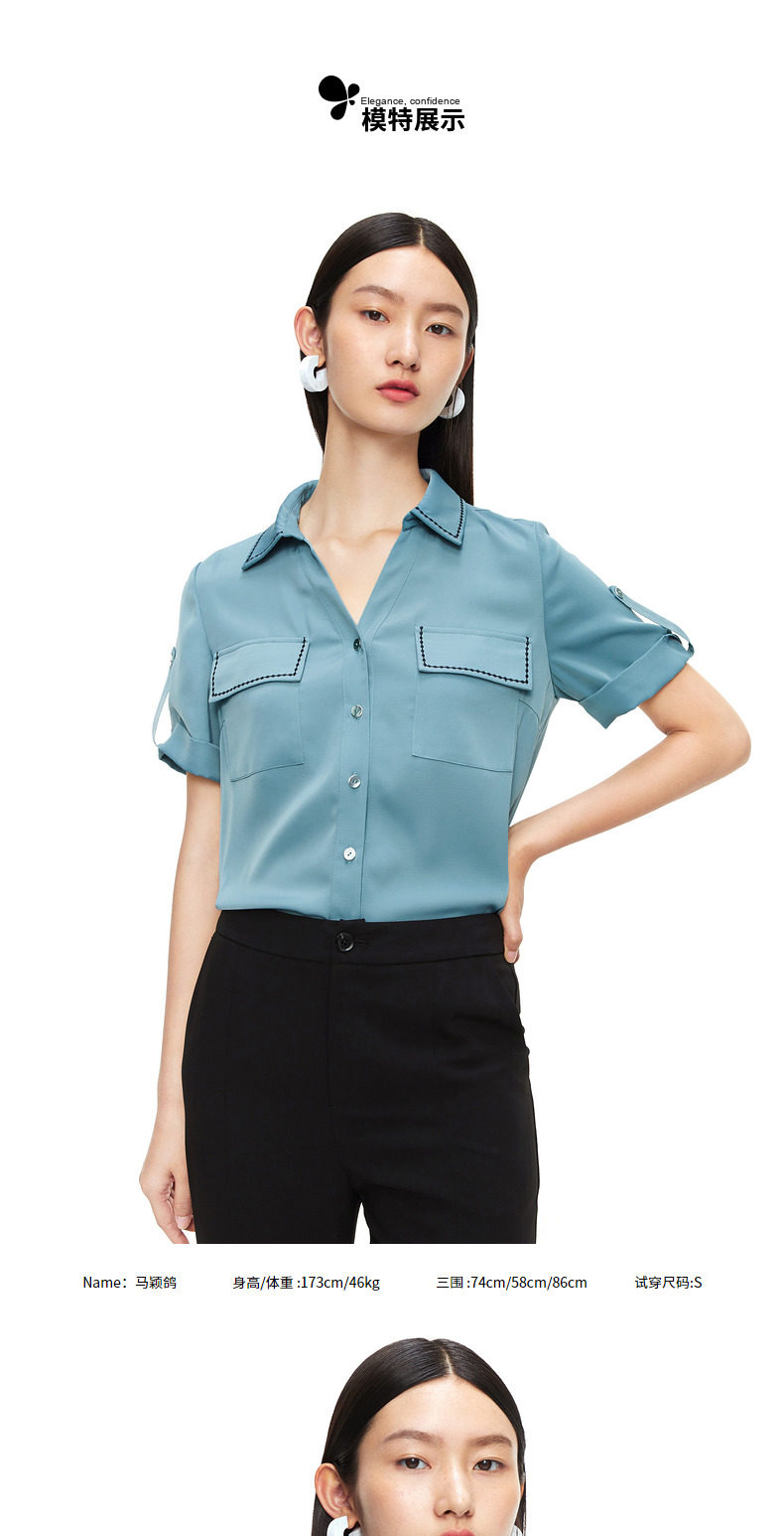 首页 > 玖姿专区 > 玖姿服饰 > 玖姿2021夏季新款安娜蔻系列纯色绣线气质干练通勤时尚女雪纺衬衫