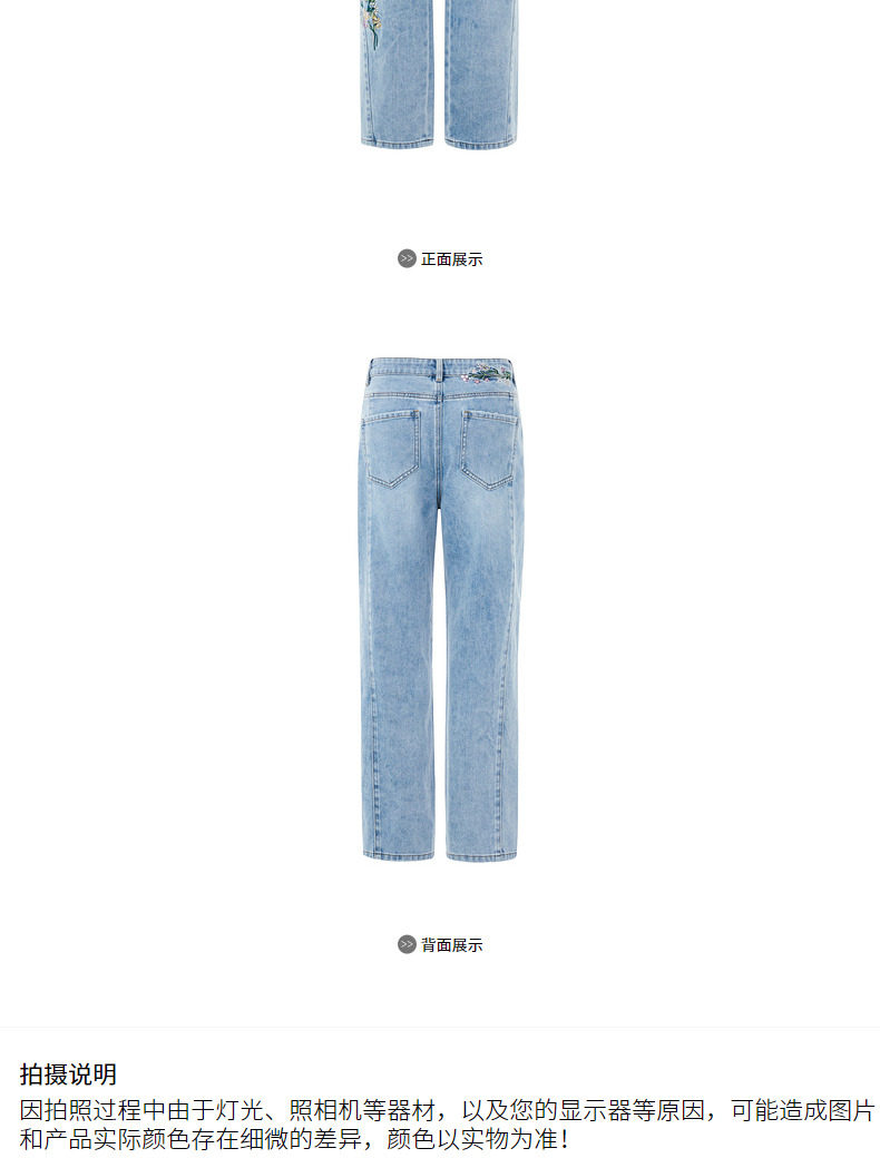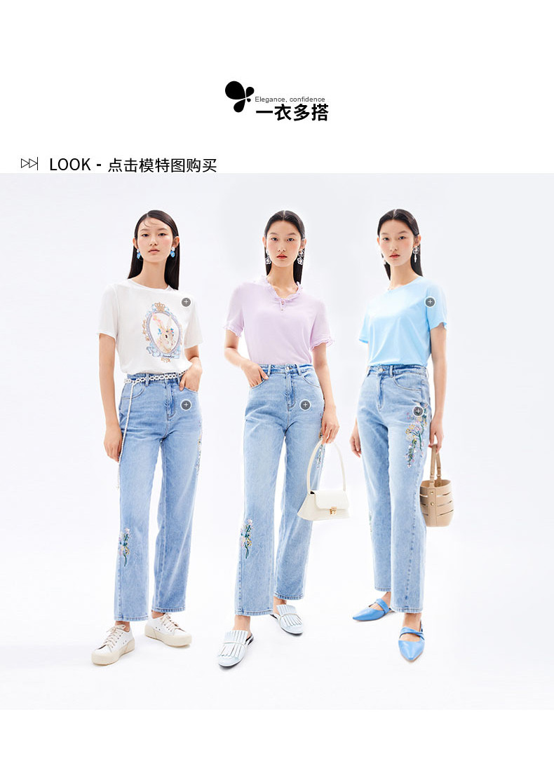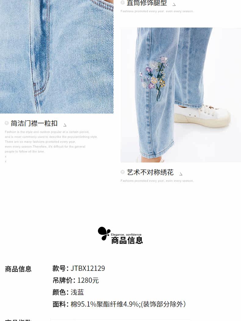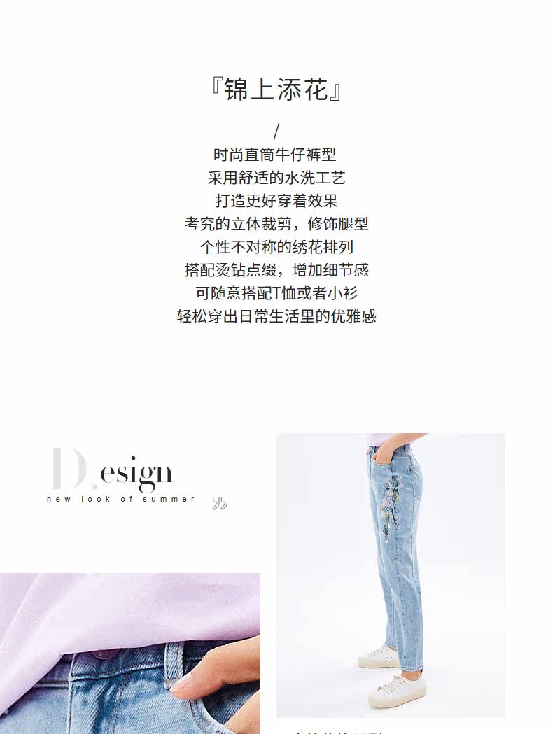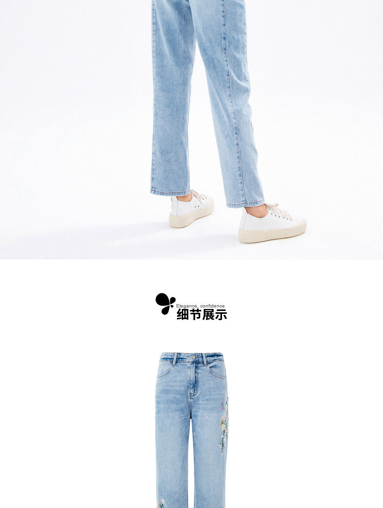 首页 > 玖姿专区 > 玖姿服饰 > 玖姿2021夏季新款安娜蔻系列蓝色水洗休闲显瘦花卉刺绣女牛仔裤