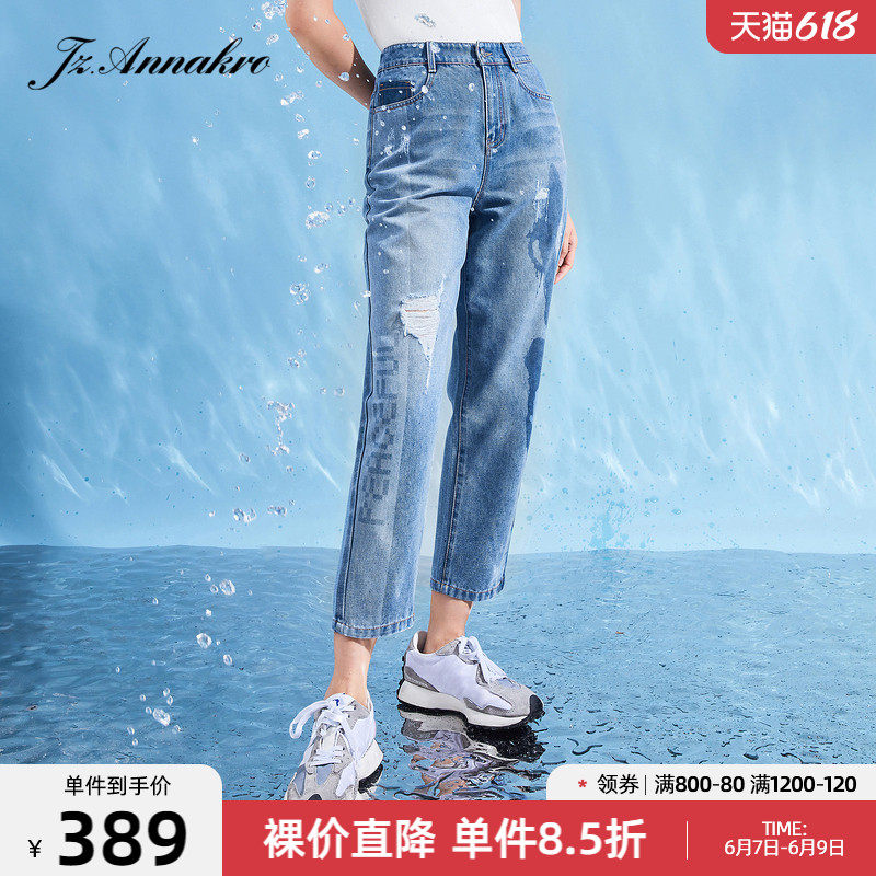 玖姿2021夏季新款安娜蔻系列蓝色冰氧酷凉感黑科技显瘦女牛仔裤