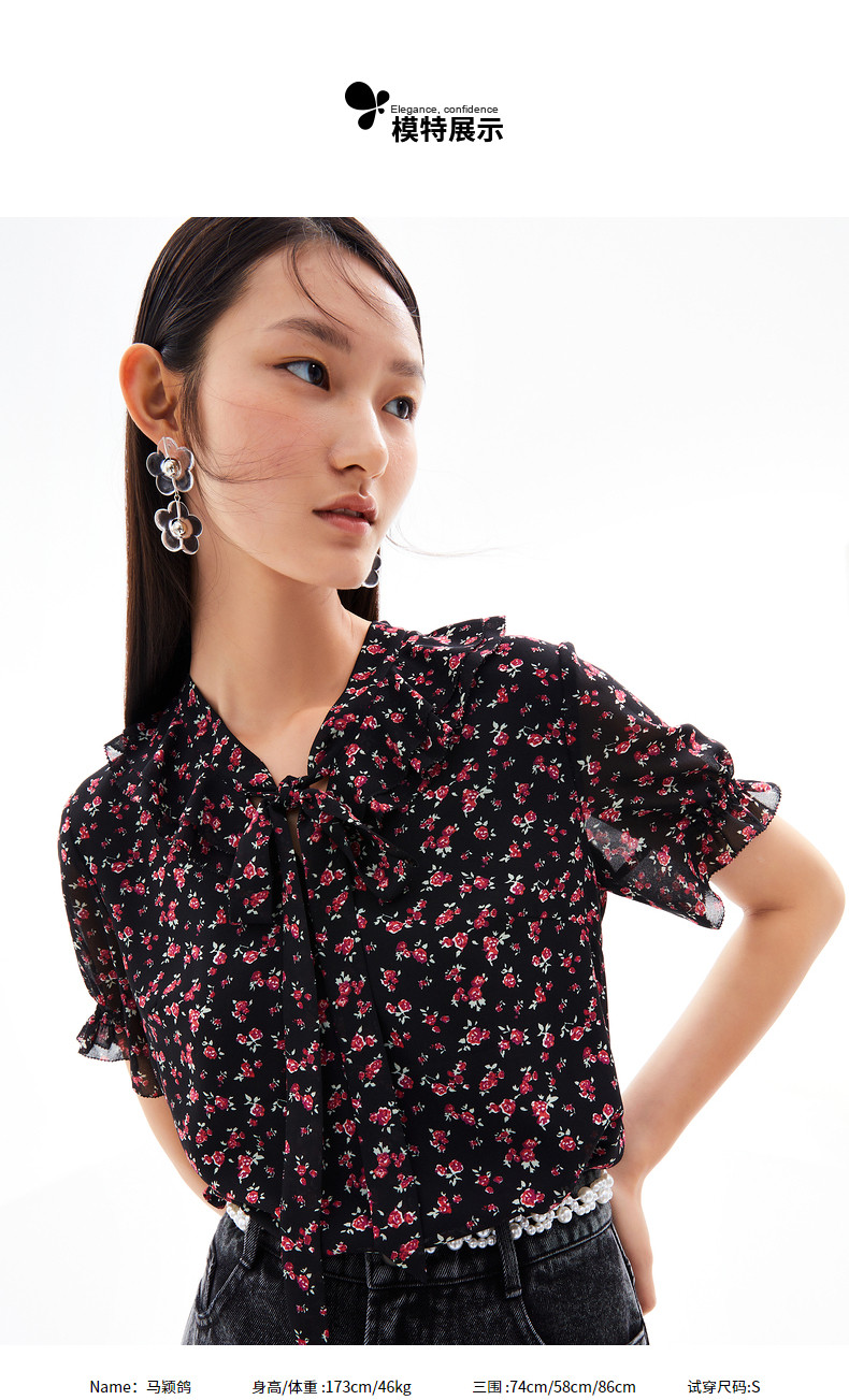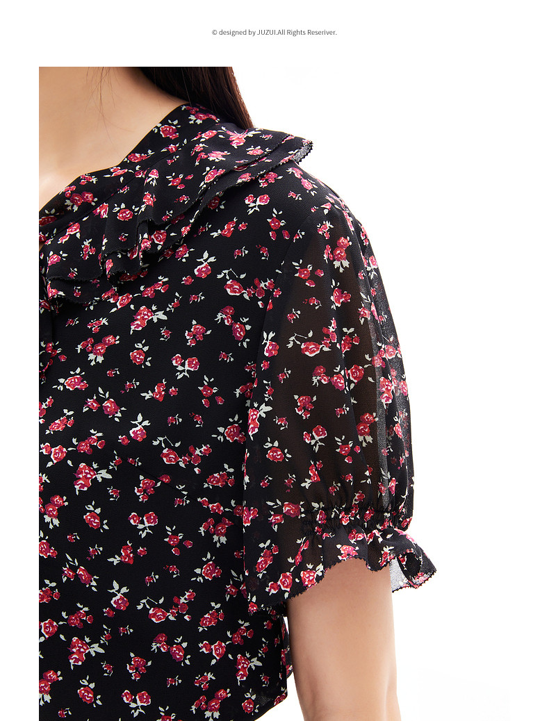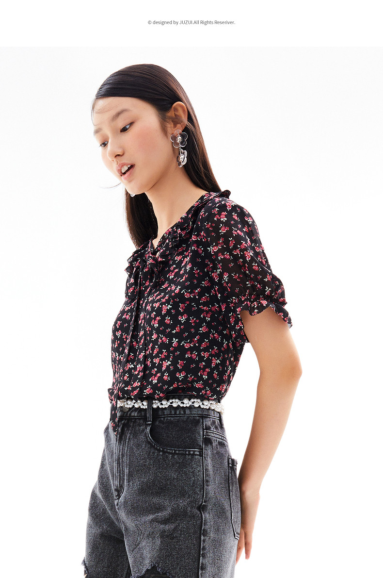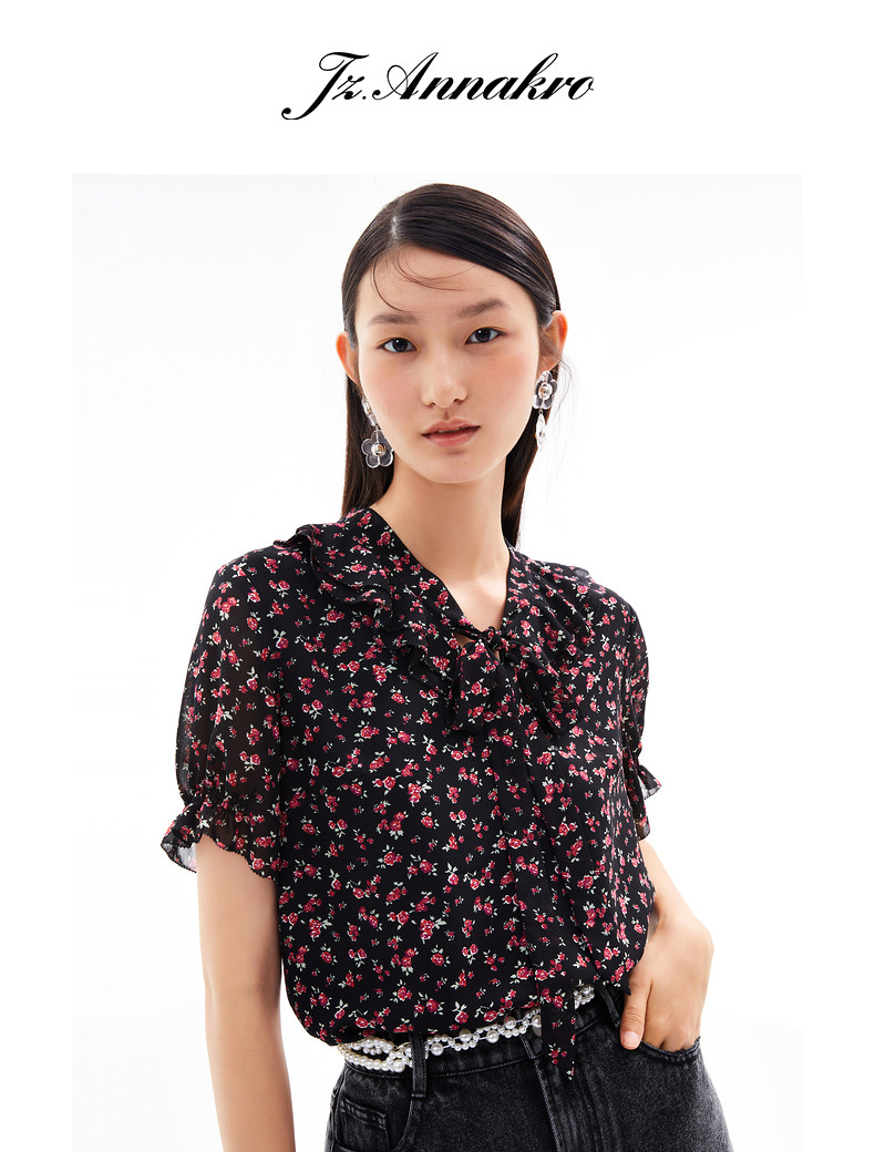 首页 > 玖姿专区 > 玖姿服饰 > 玖姿2021夏季新款安娜蔻系列时尚古着感碎花休闲森系短袖女雪纺衫