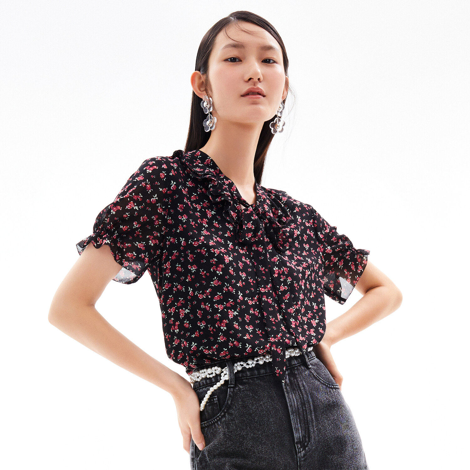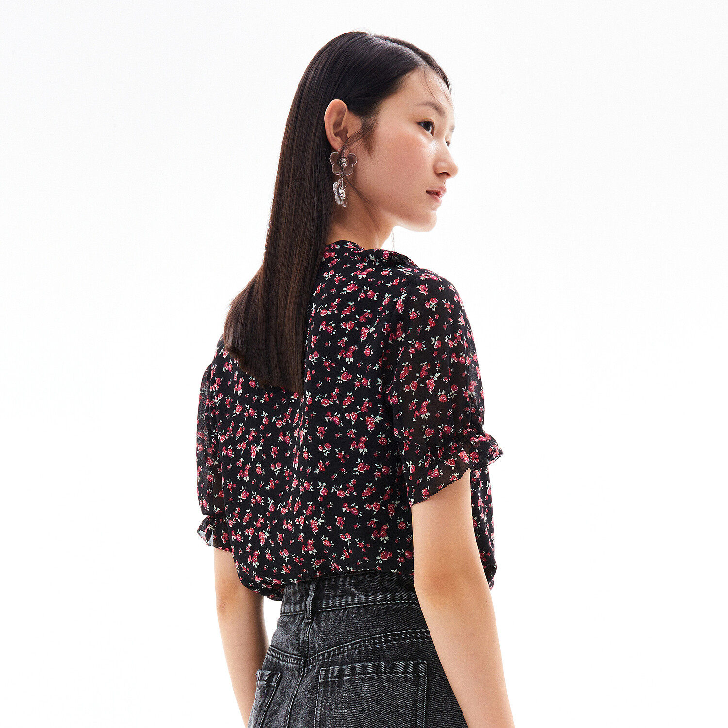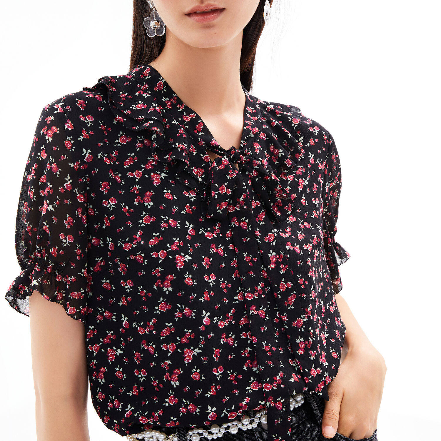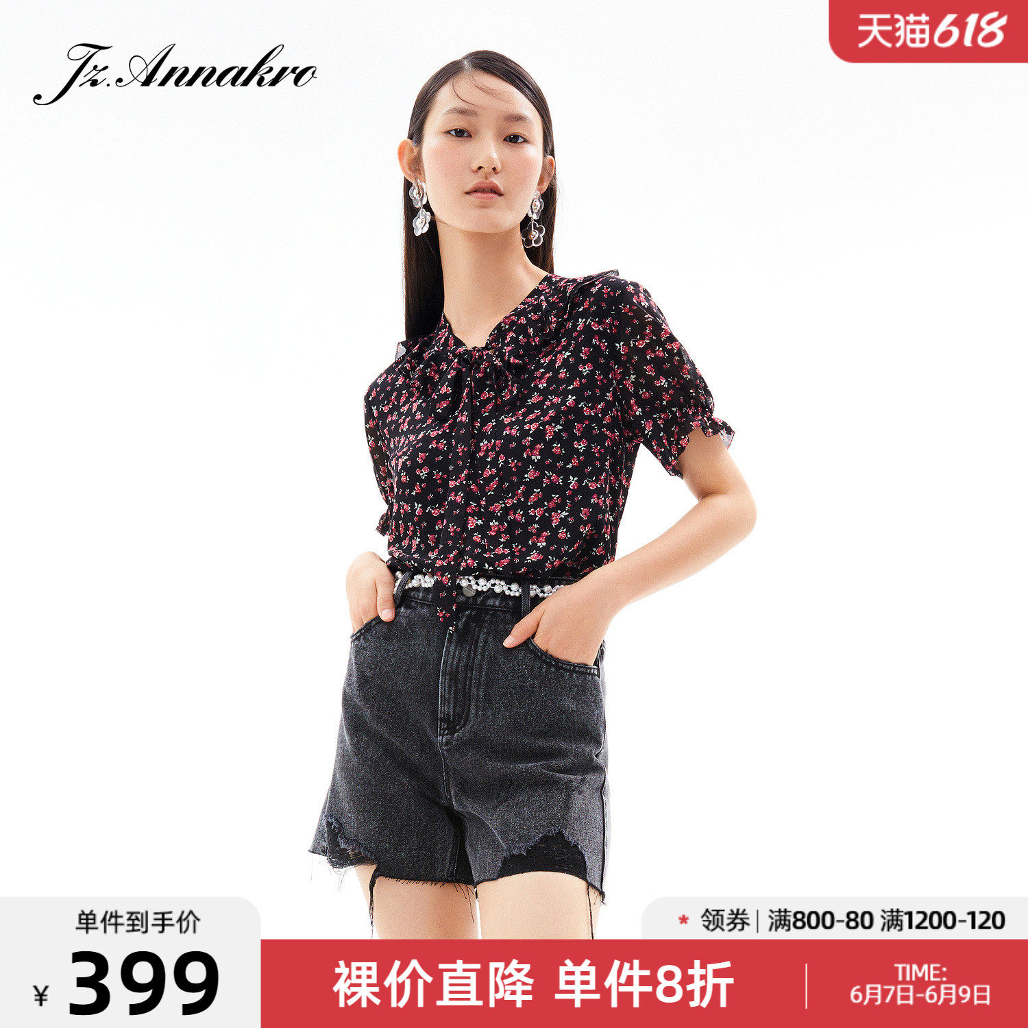首页 > 玖姿专区 > 玖姿服饰 > 玖姿2021夏季新款安娜蔻系列时尚古着感碎花休闲森系短袖女雪纺衫