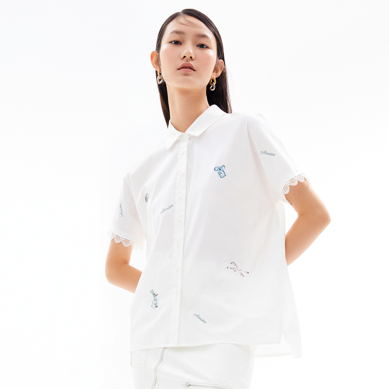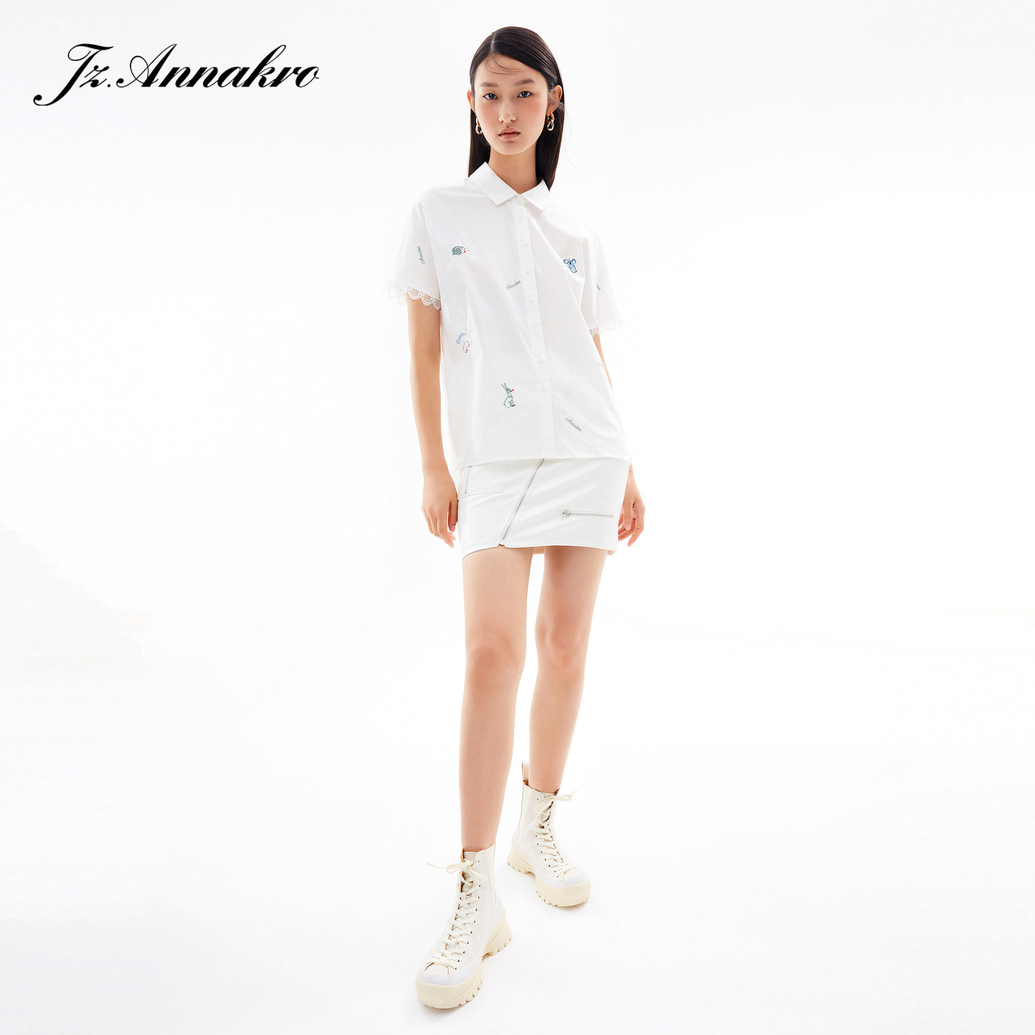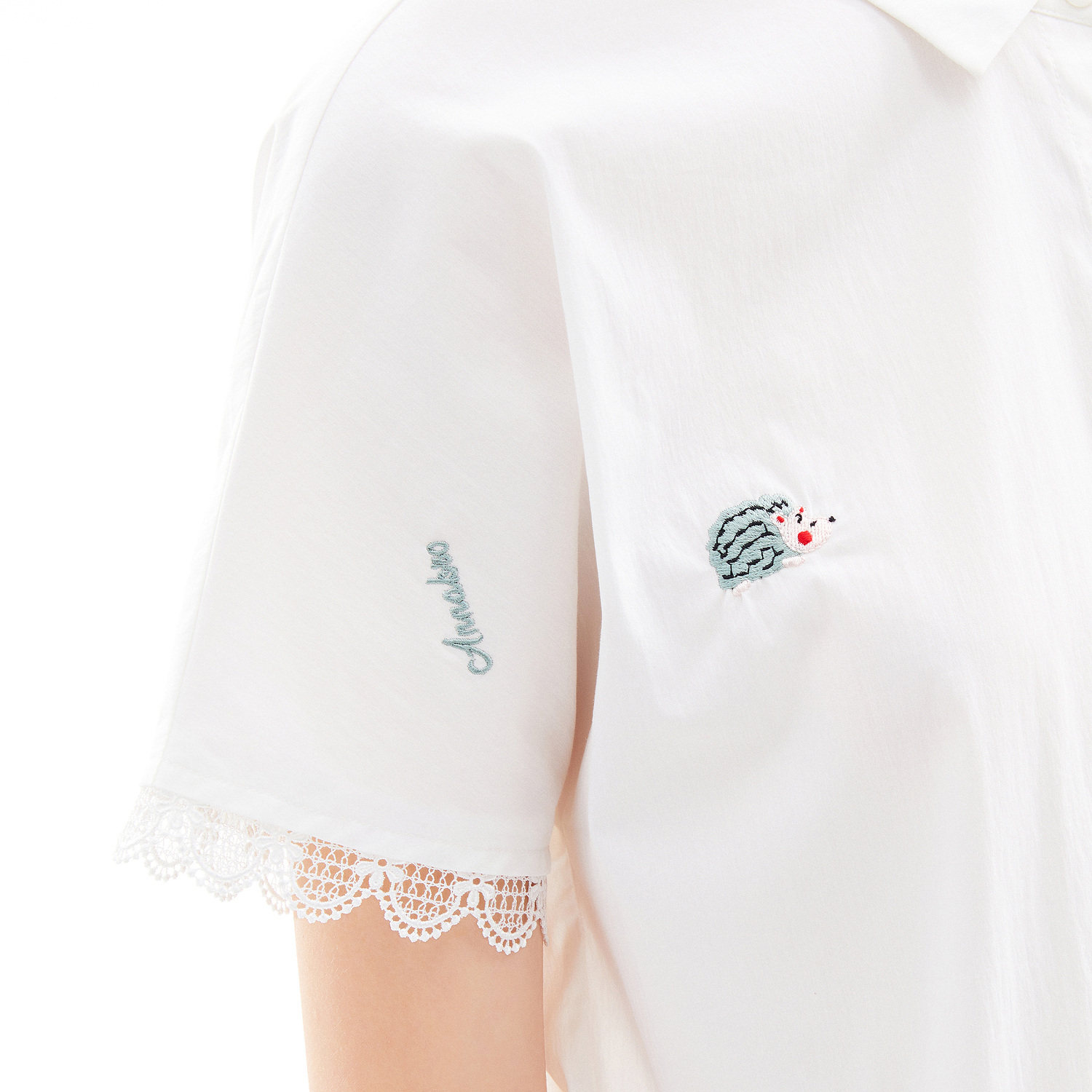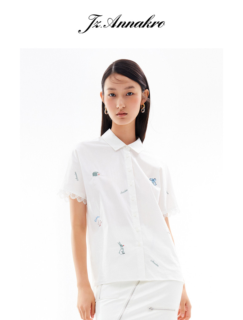 首页 > 玖姿专区 > 玖姿服饰 > 玖姿2021夏季新款安娜蔻系列白色拼接趣味刺绣休闲青春感女衬衫