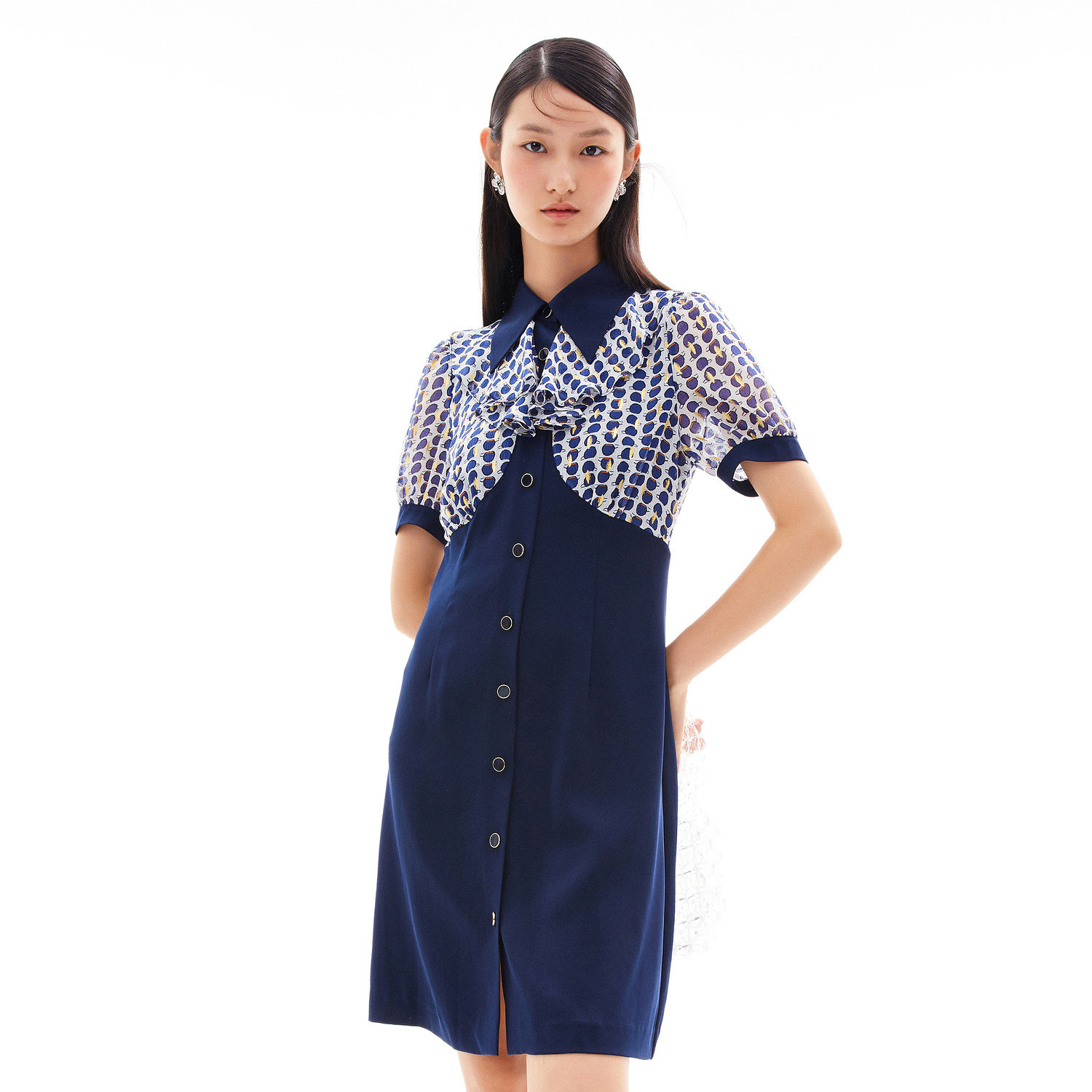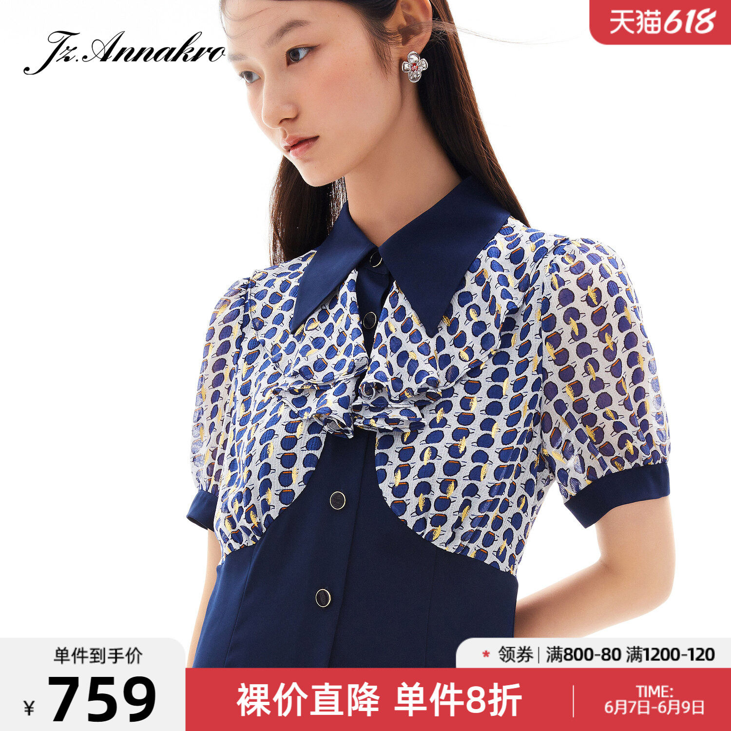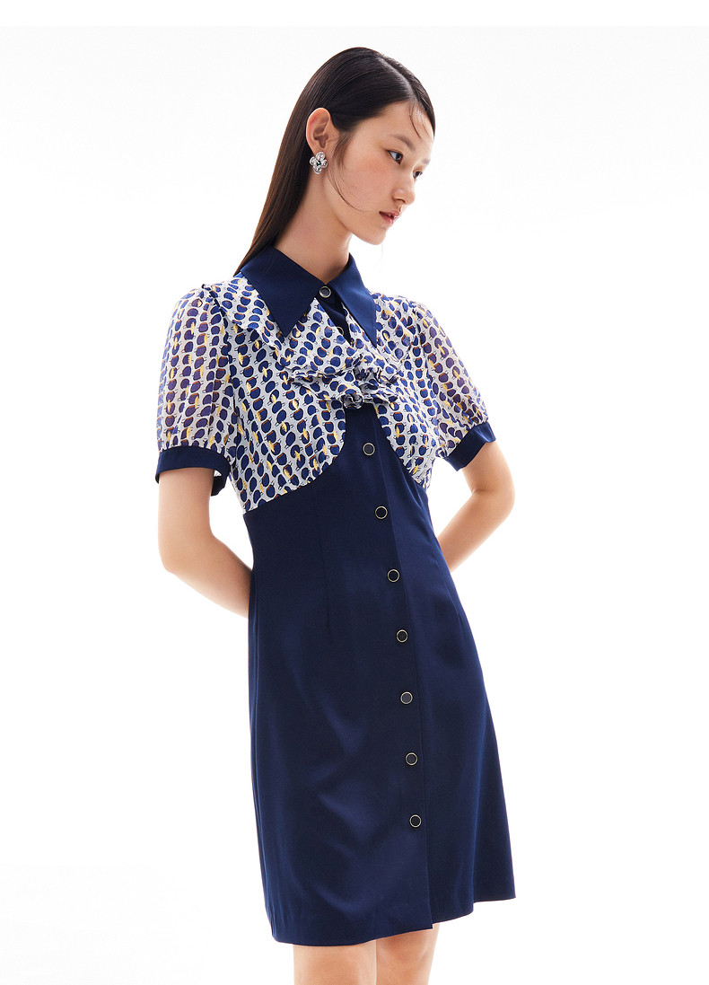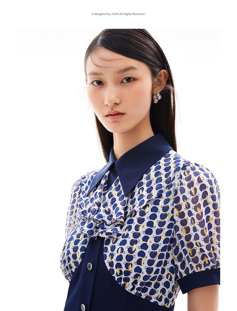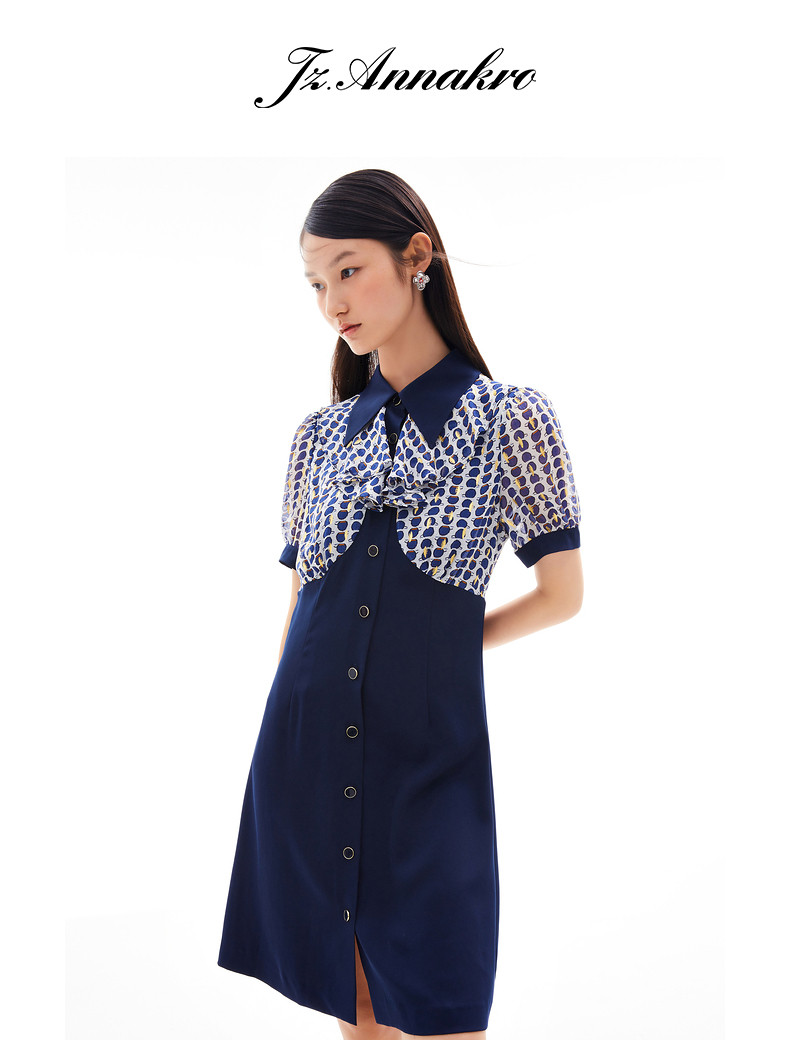 首页 > 玖姿专区 > 玖姿服饰 > 玖姿2021夏季新款安娜蔻系列波点拼接收腰显瘦气质女雪纺连衣裙