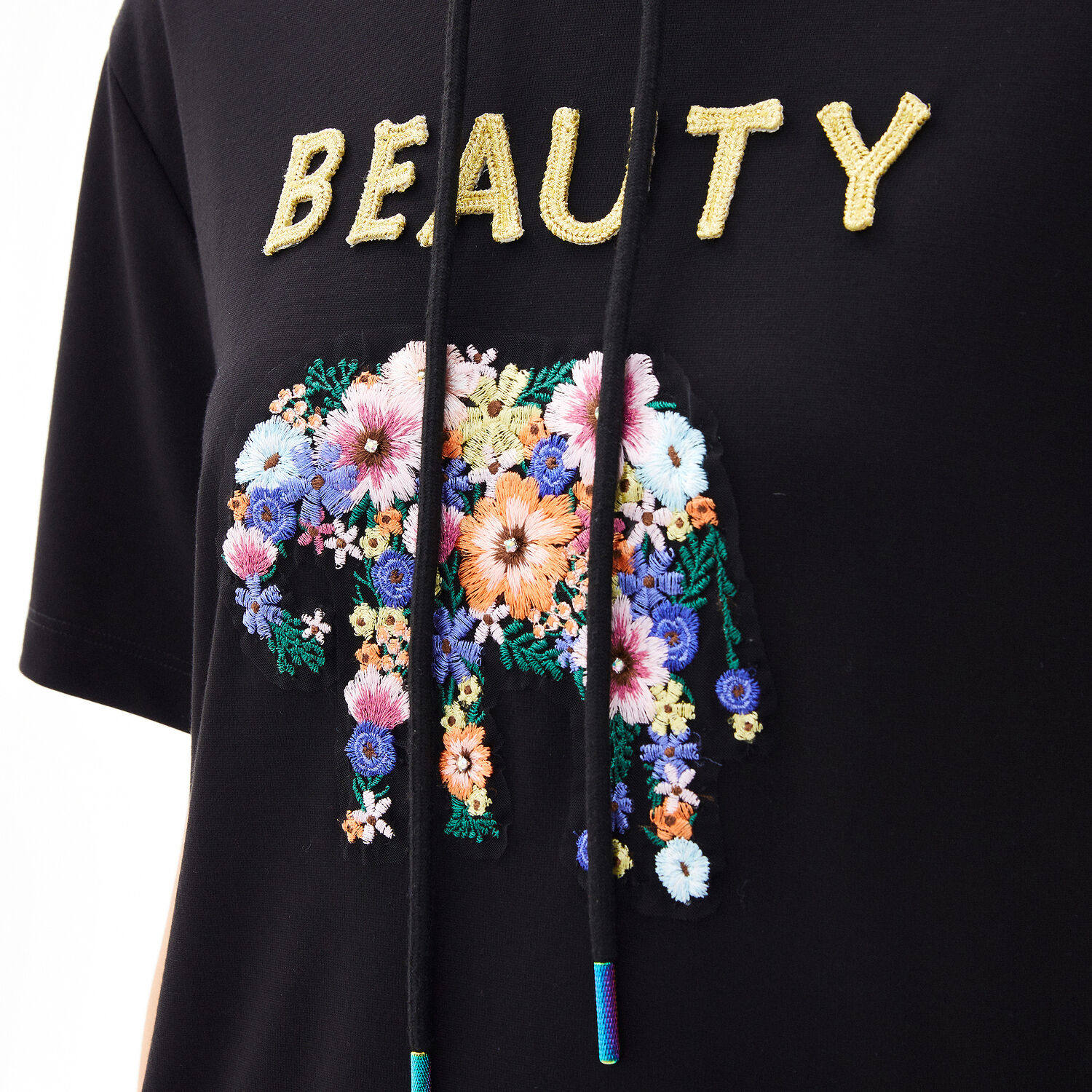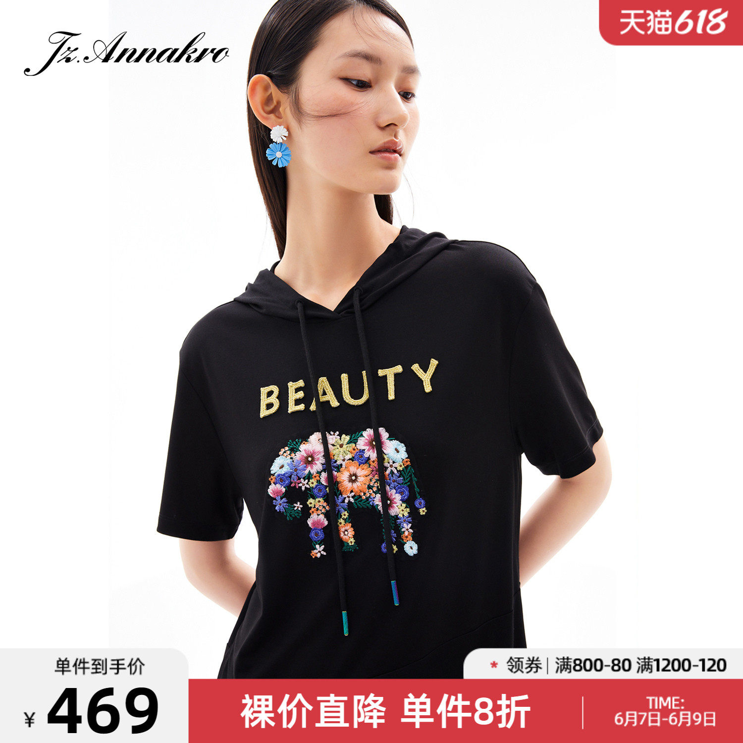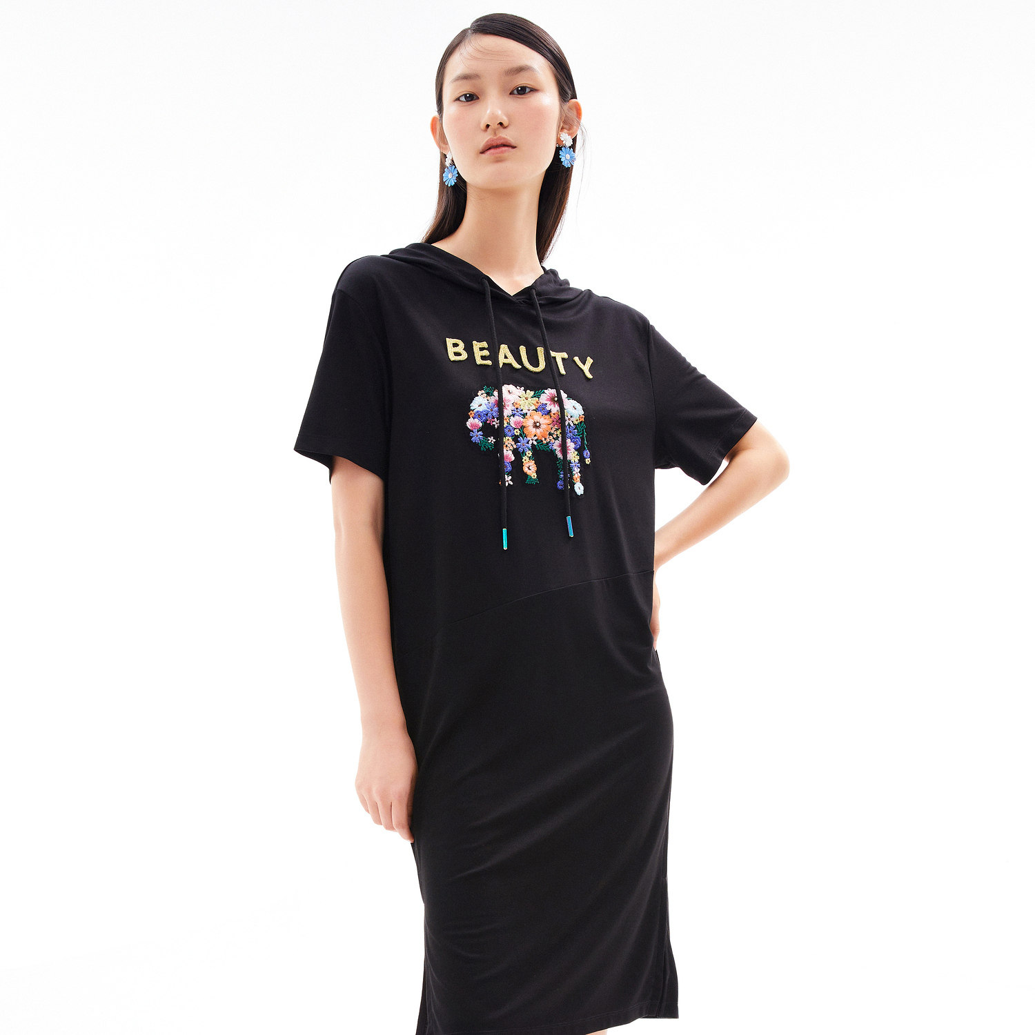 首页 > 玖姿专区 > 玖姿服饰 > 玖姿2021夏季新款安娜蔻系列黑色连帽重工刺绣趣味女直身连衣裙