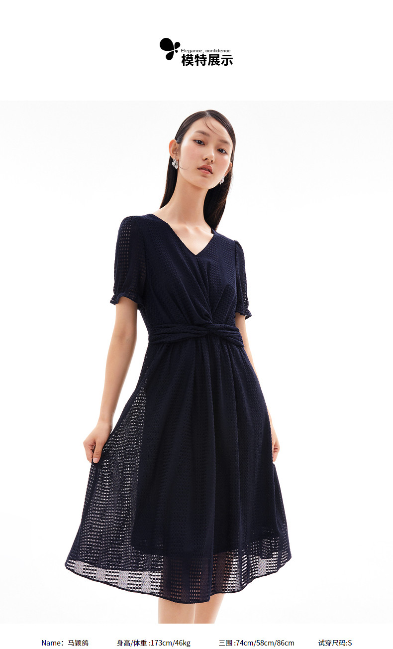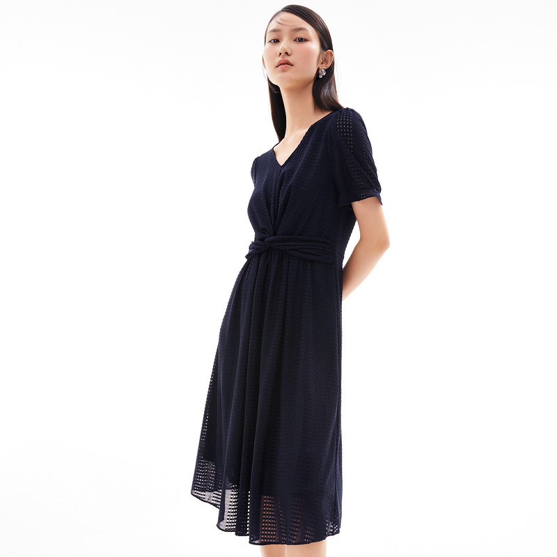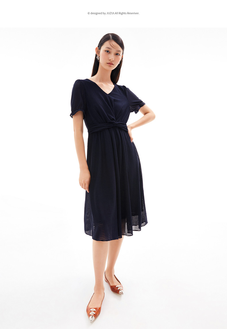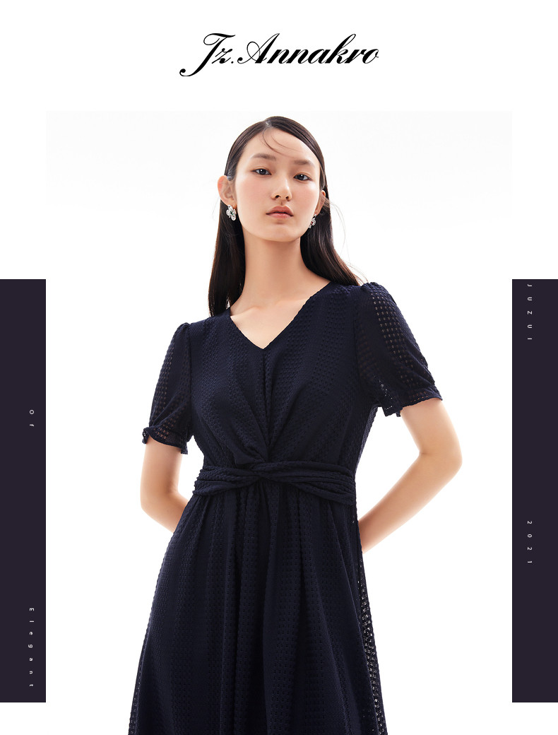首页 > 玖姿专区 > 玖姿服饰 > 玖姿2021夏季新款安娜蔻系列气质V字领收腰纯色中长女蕾丝连衣裙