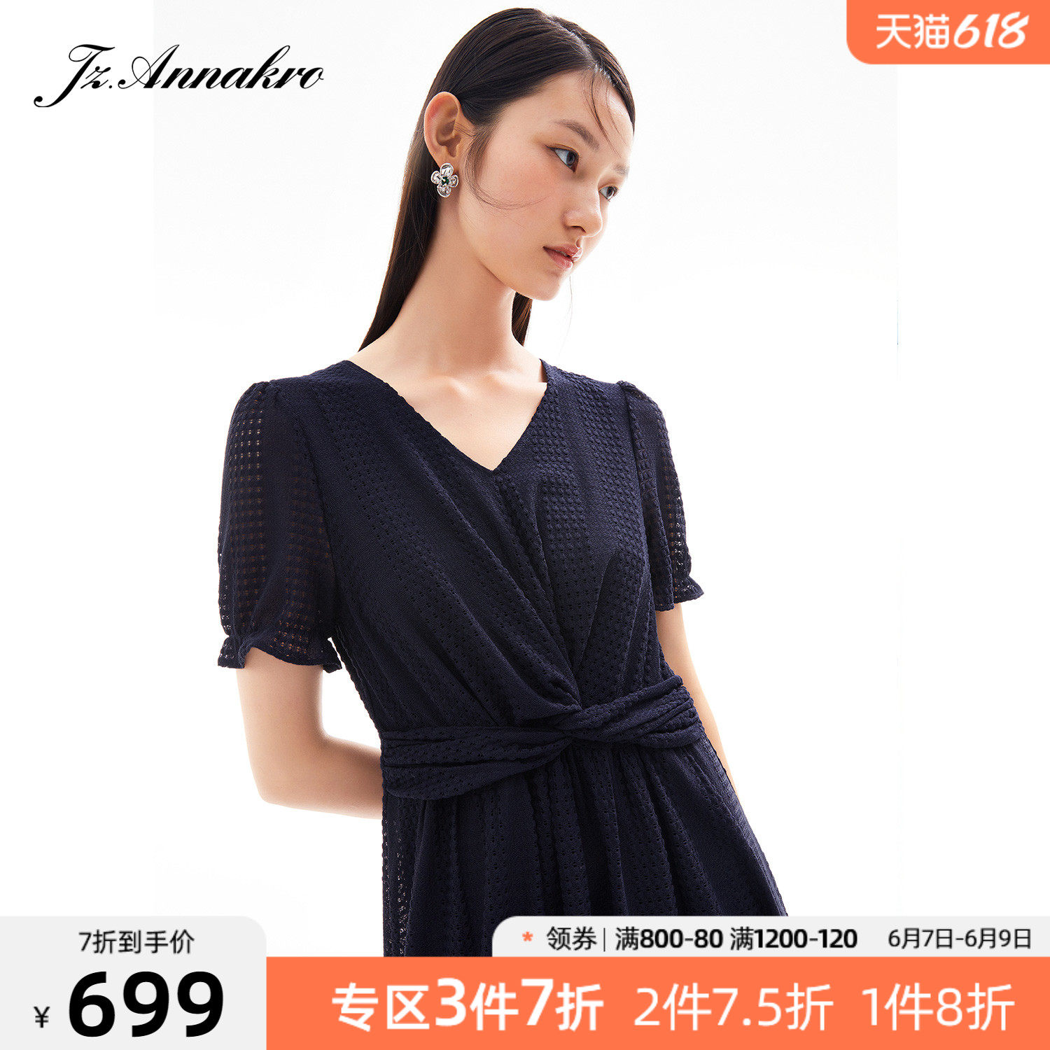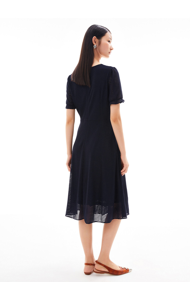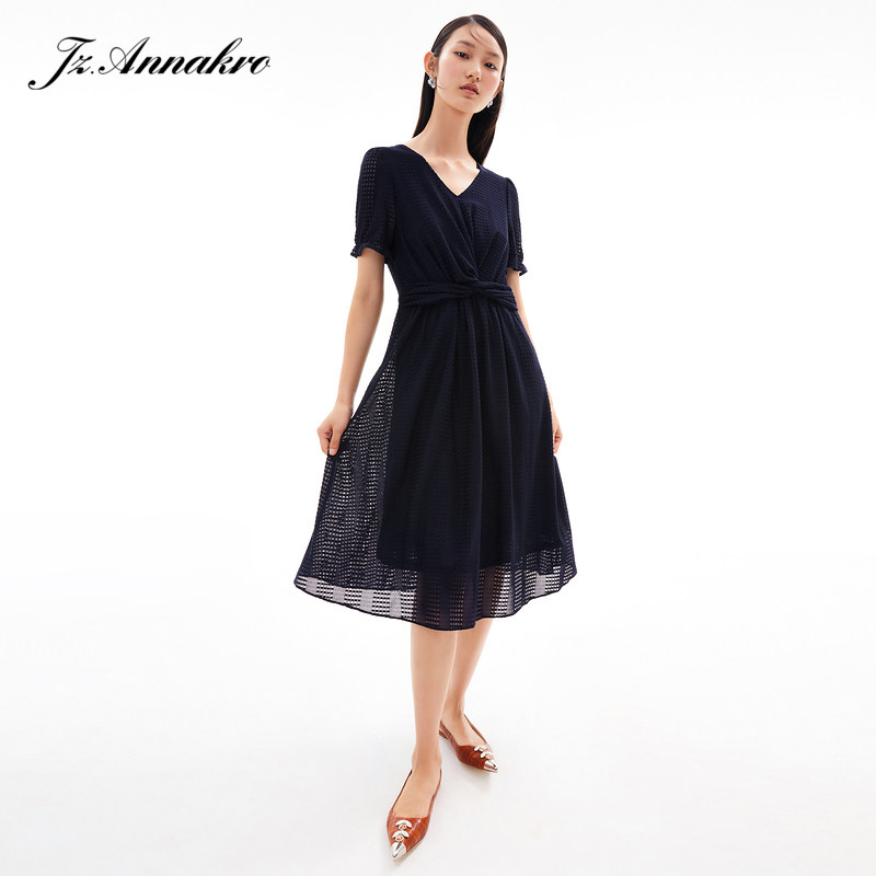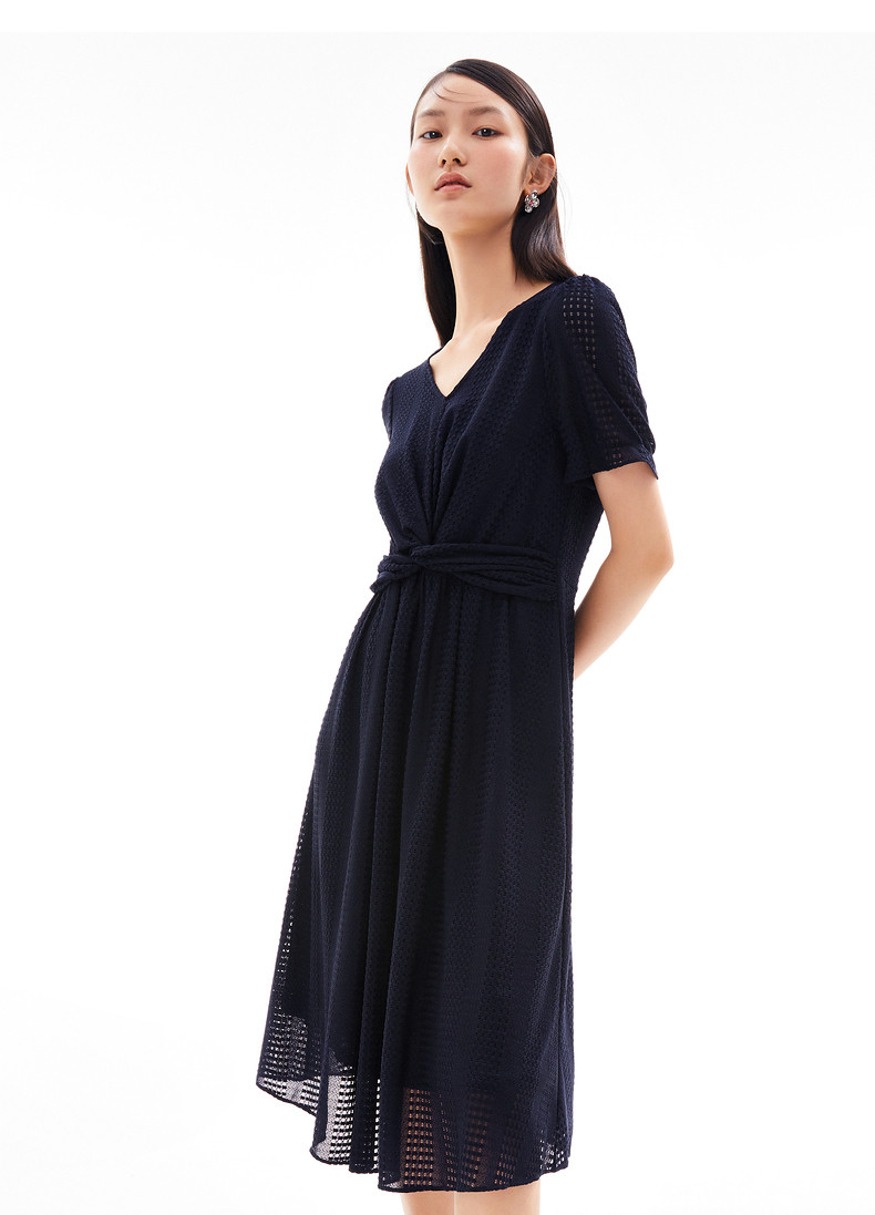 首页 > 玖姿专区 > 玖姿服饰 > 玖姿2021夏季新款安娜蔻系列气质V字领收腰纯色中长女蕾丝连衣裙