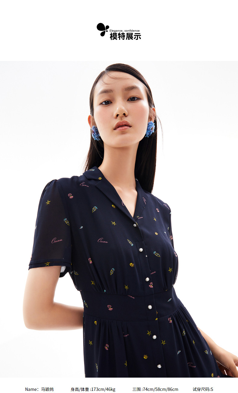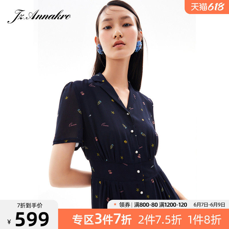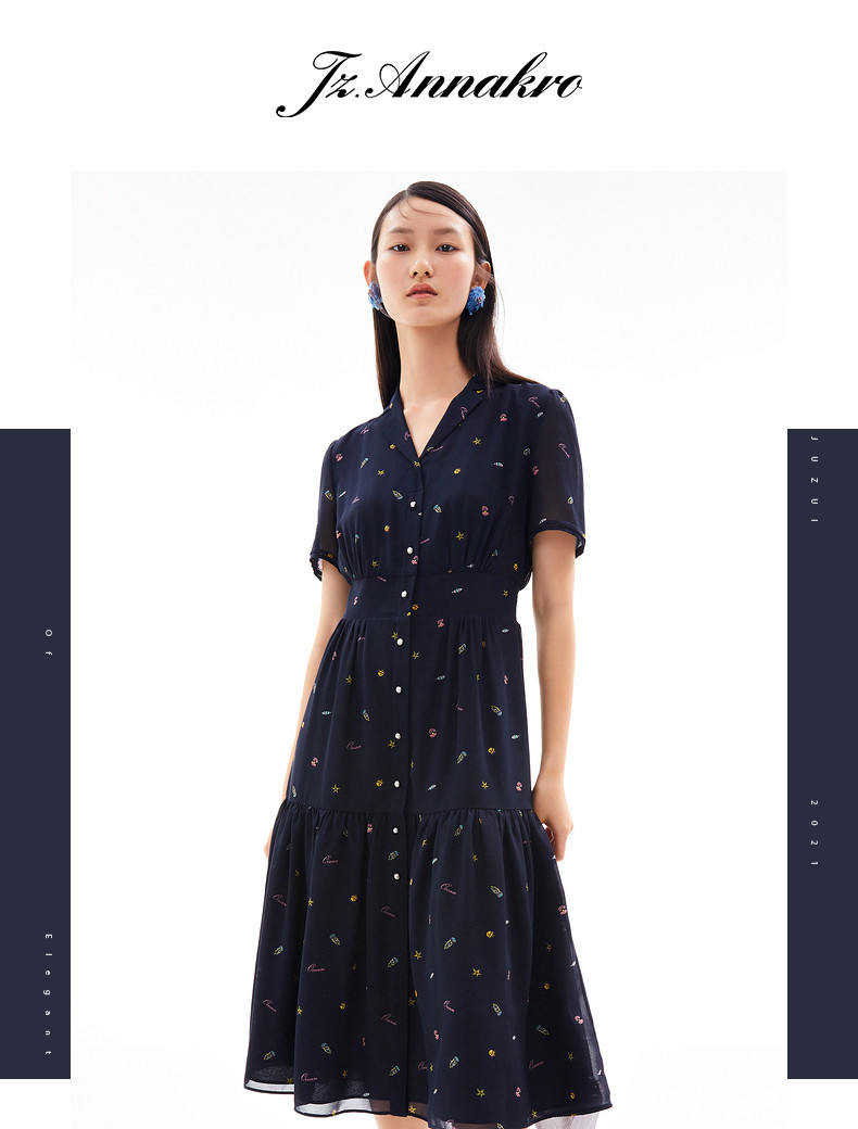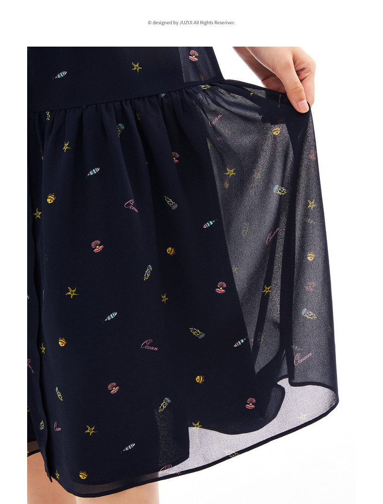 首页 > 玖姿专区 > 玖姿服饰 > 玖姿2021夏季新款安娜蔻系列海洋元素气质收腰雪纺气质女连衣裙