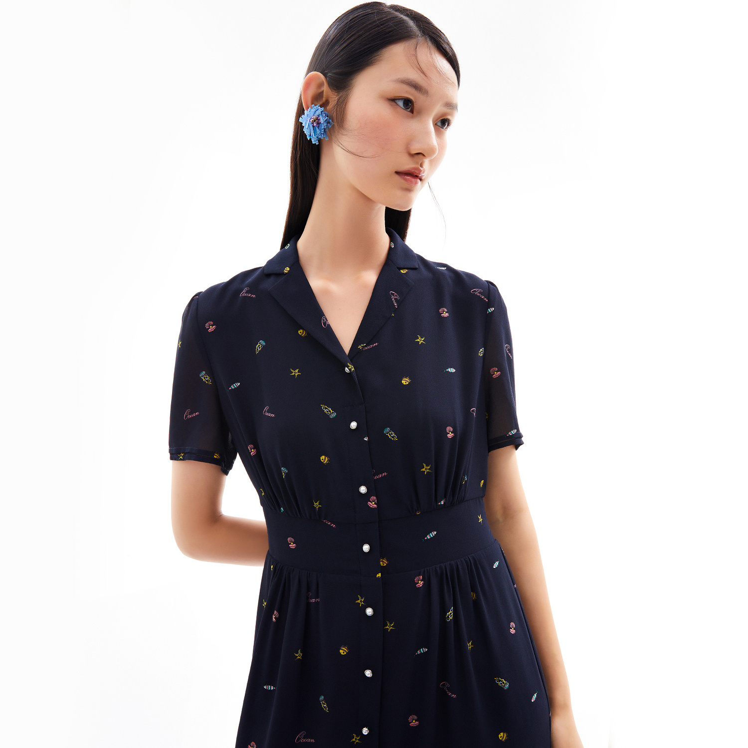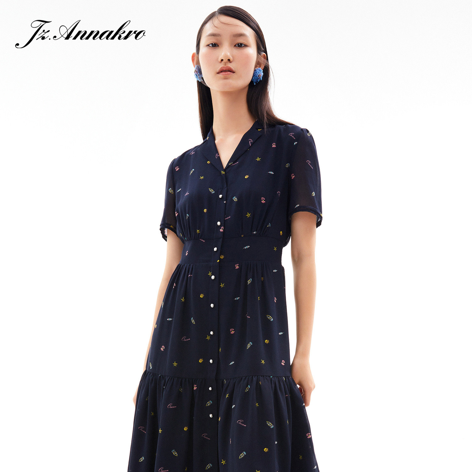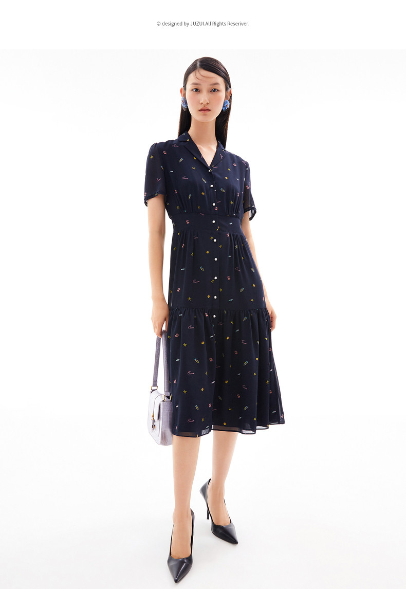 首页 > 玖姿专区 > 玖姿服饰 > 玖姿2021夏季新款安娜蔻系列海洋元素气质收腰雪纺气质女连衣裙