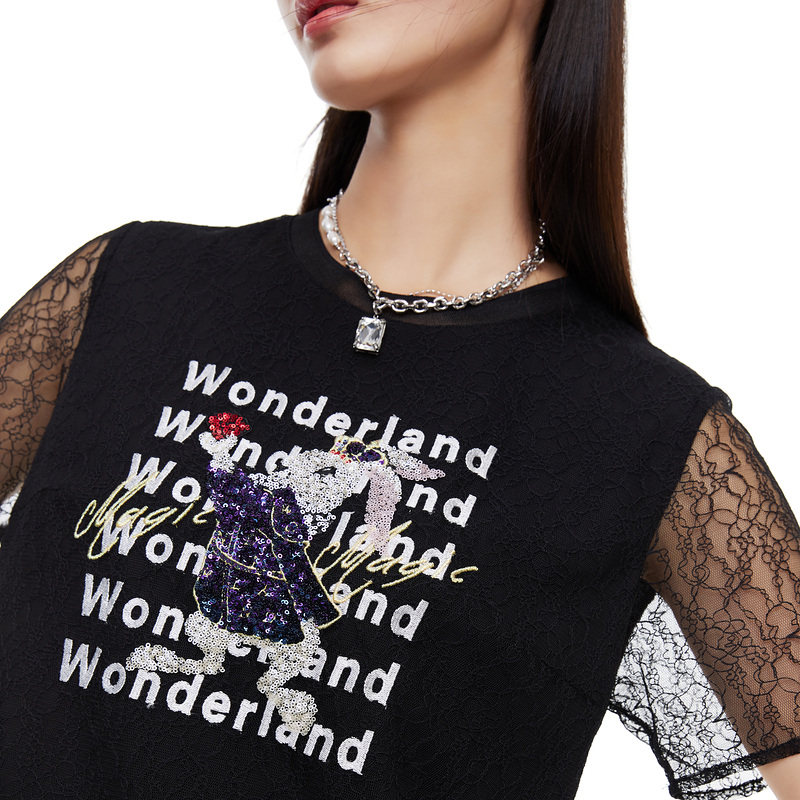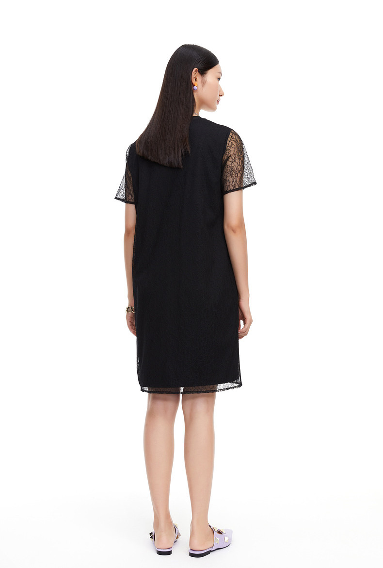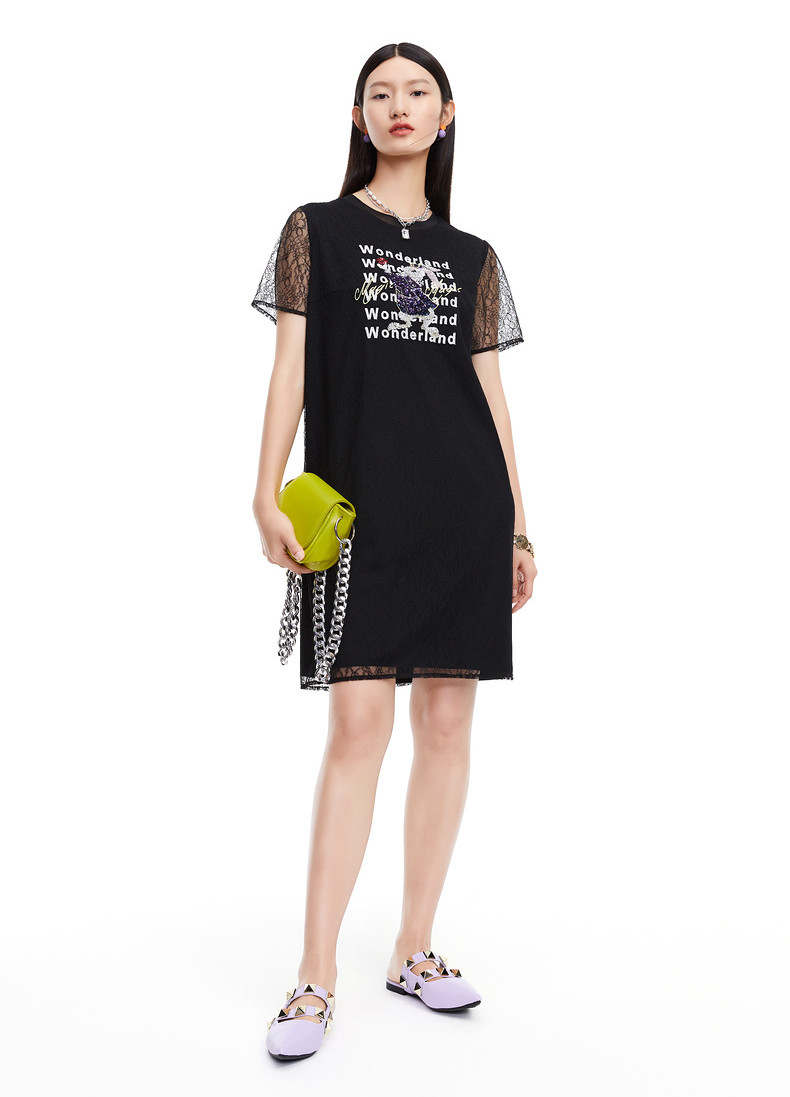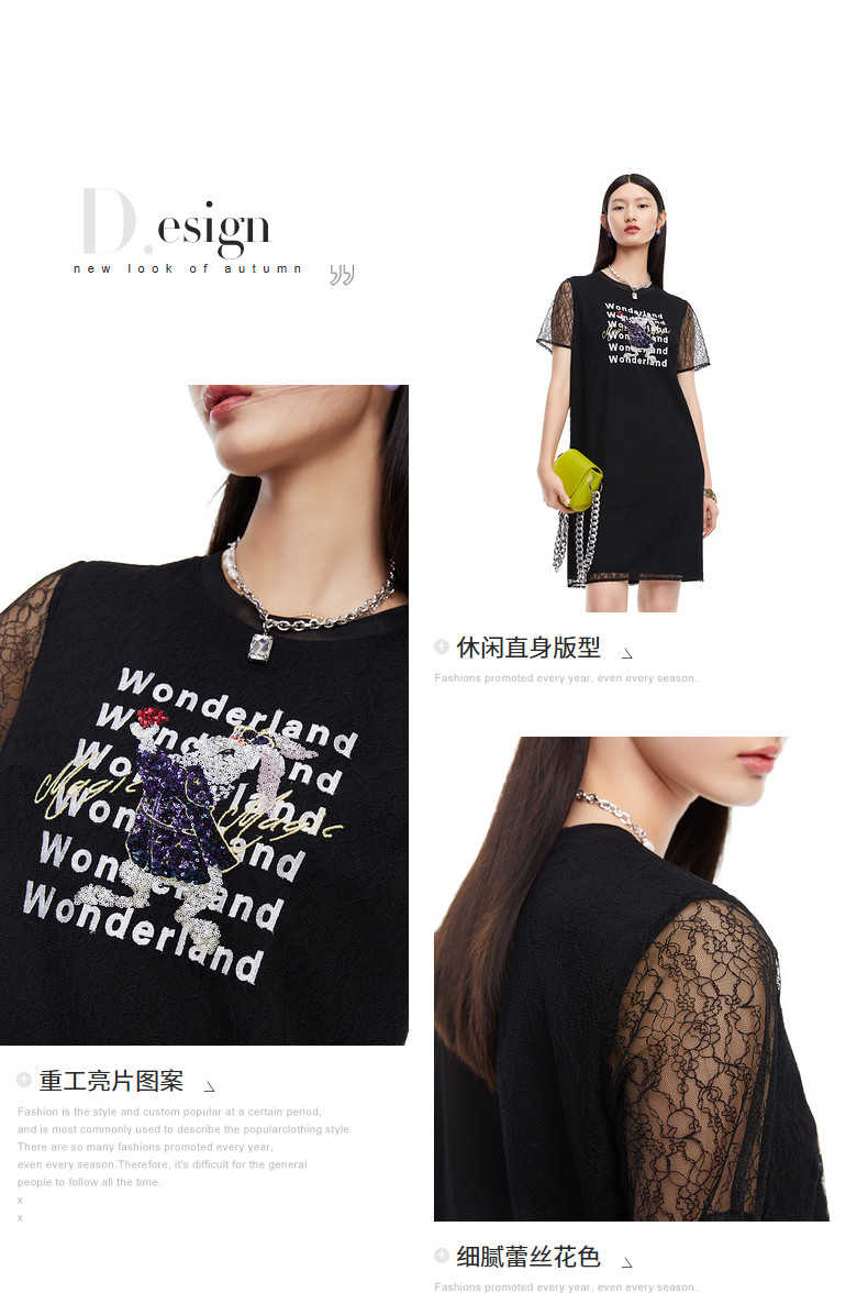 首页 > 玖姿专区 > 玖姿服饰 > 玖姿2021夏季新款安娜蔻系列黑色休闲蕾丝重工亮片小兔子女连衣裙