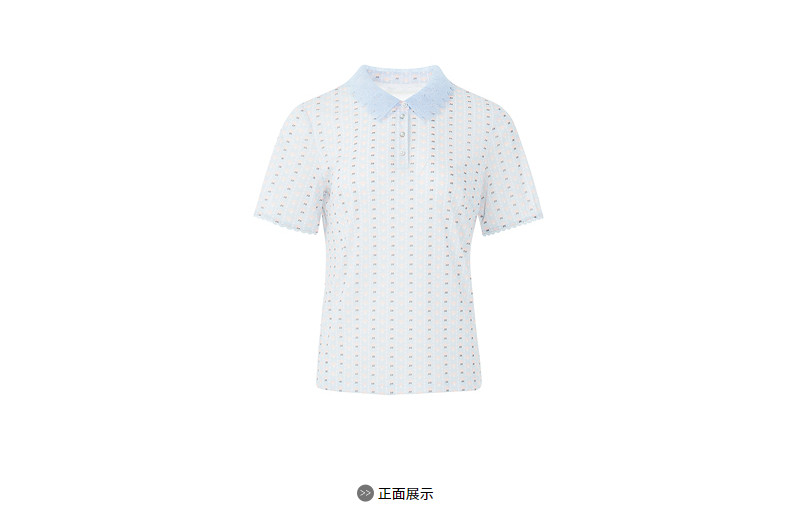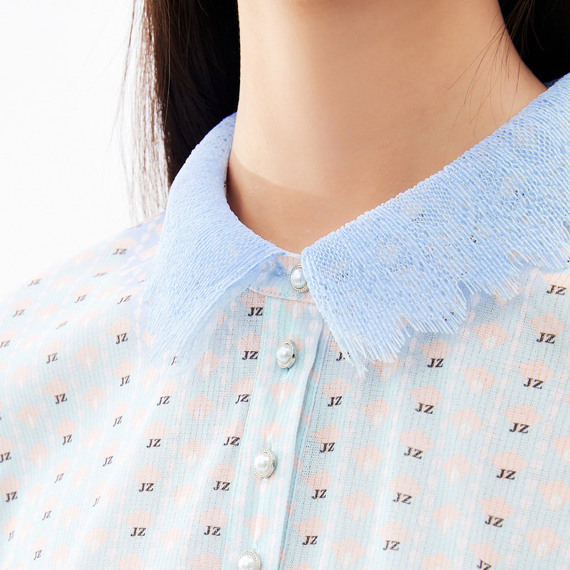 首页 > 玖姿专区 > 玖姿服饰 > 玖姿2021夏季新款安娜蔻系列清新字母亮丝混纺蕾丝翻领拼接女T恤