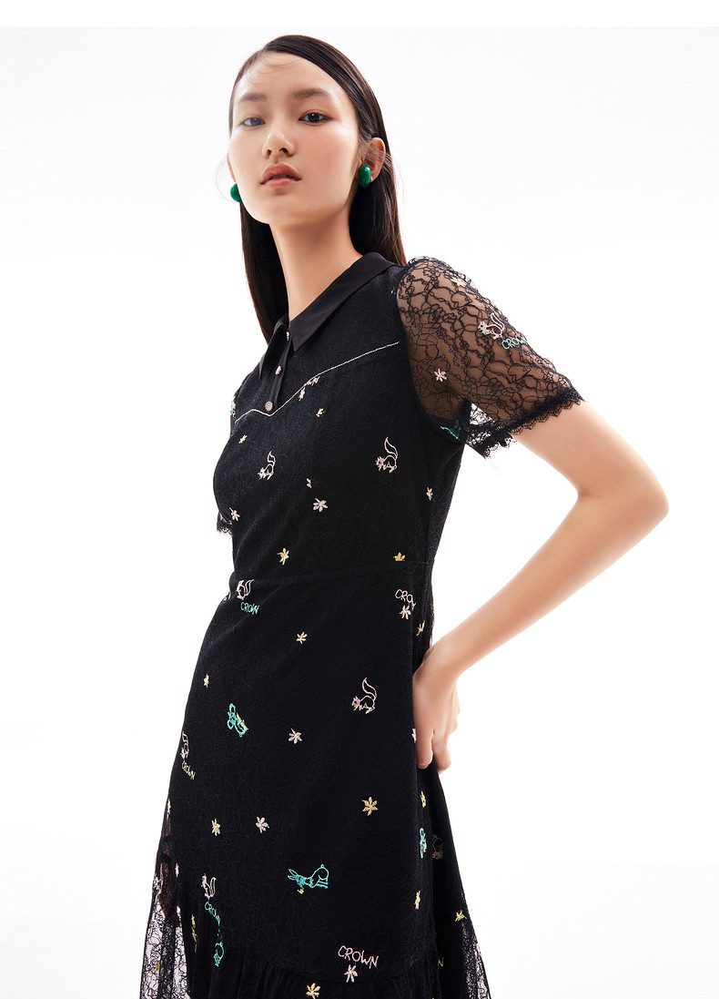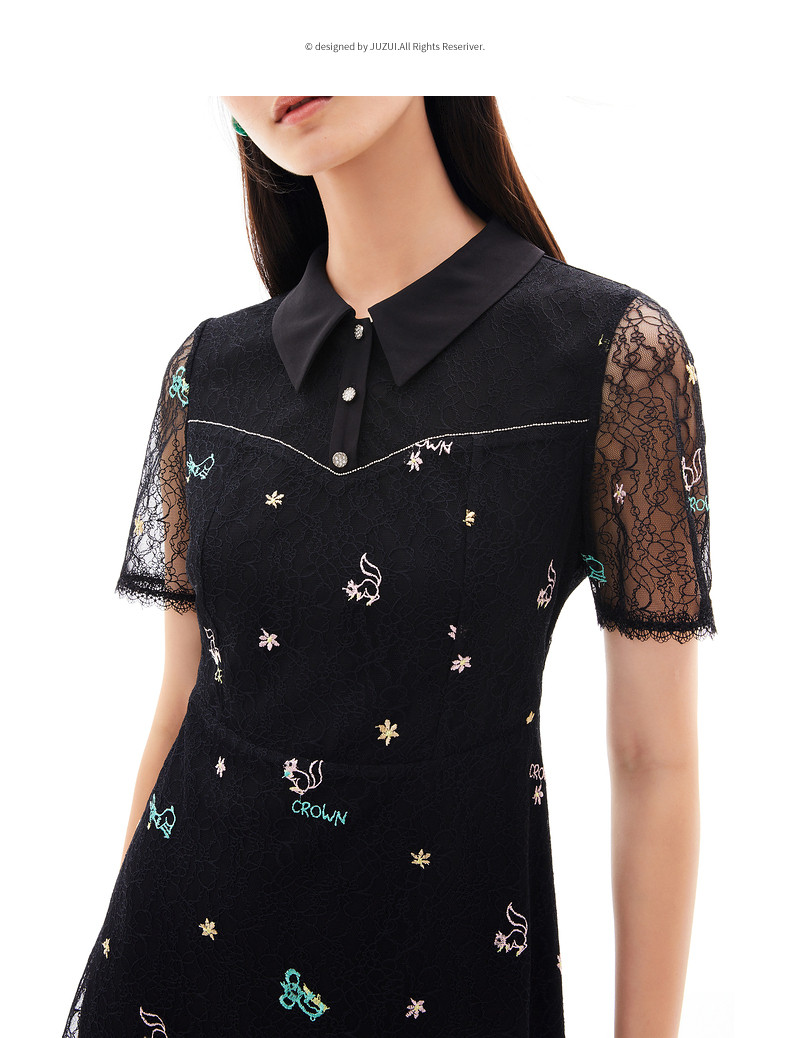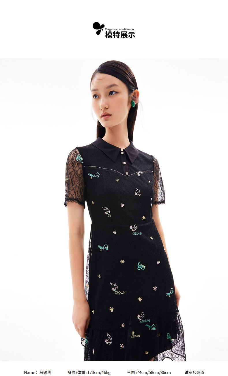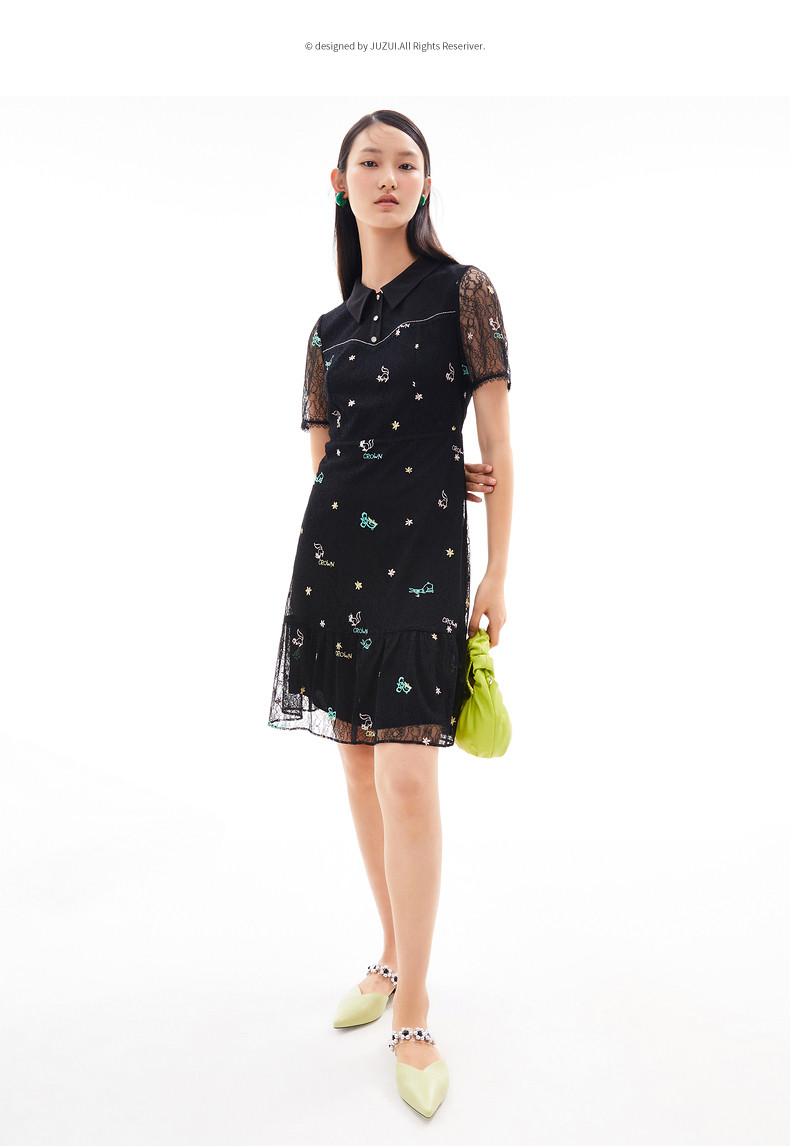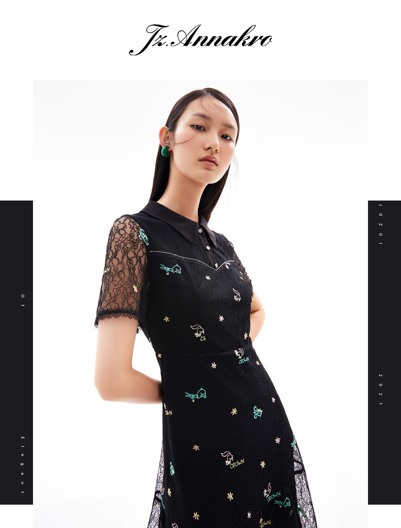 首页 > 玖姿专区 > 玖姿服饰 > 玖姿2021夏季新款安娜蔻系列黑色蕾丝绣花收腰中长女修身连衣裙