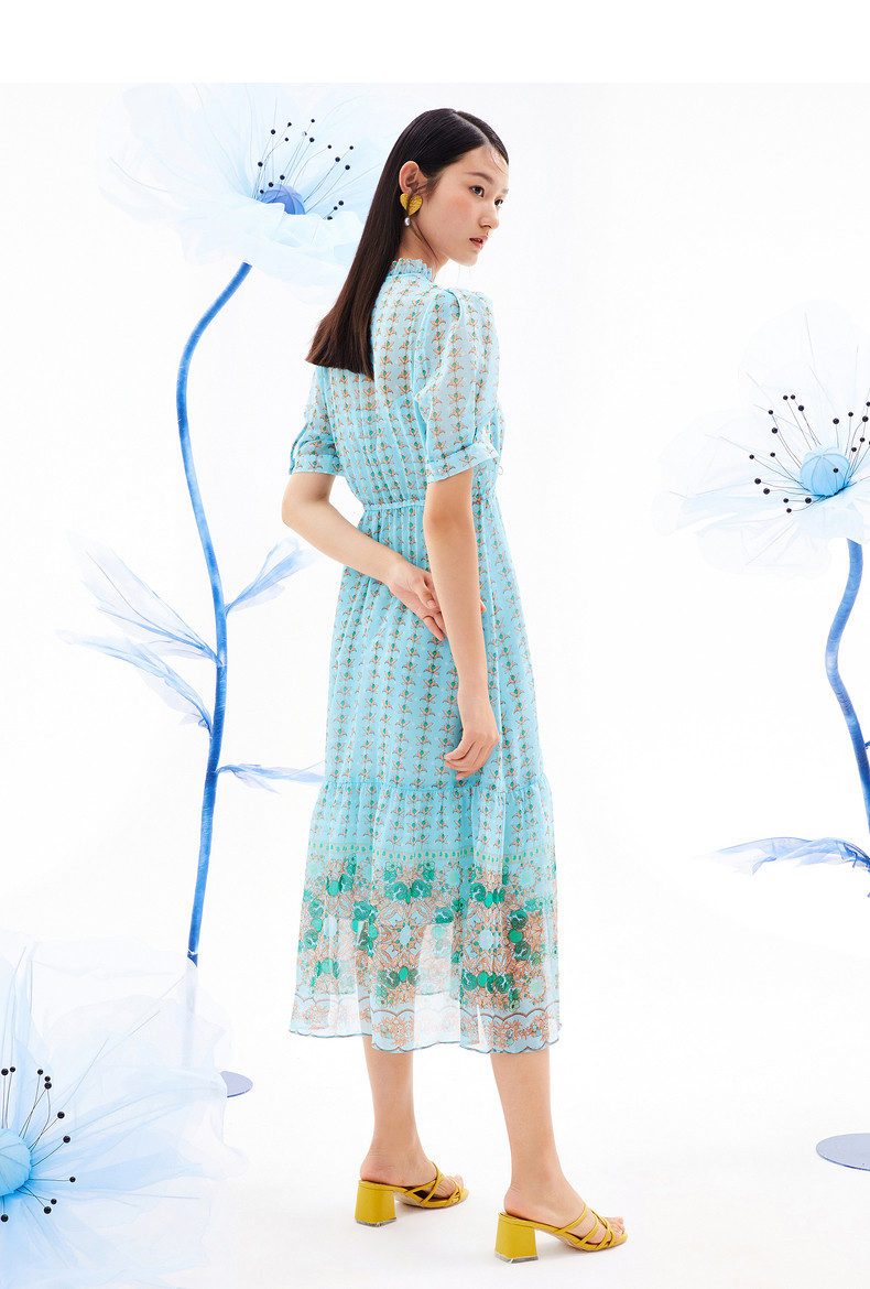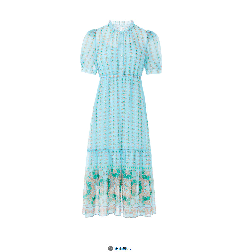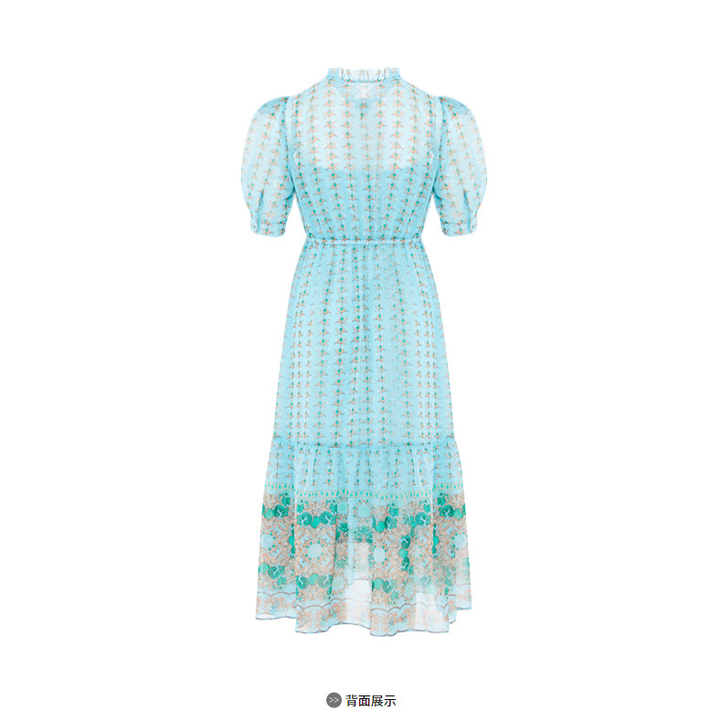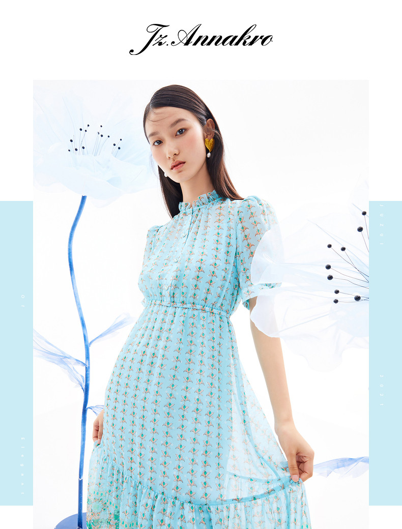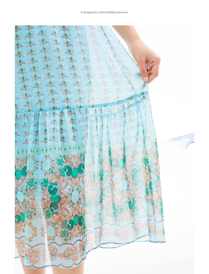 首页 > 玖姿专区 > 玖姿服饰 > 玖姿2021夏季新款安娜蔻系列蓝色度假风异域民族收腰女雪纺连衣裙