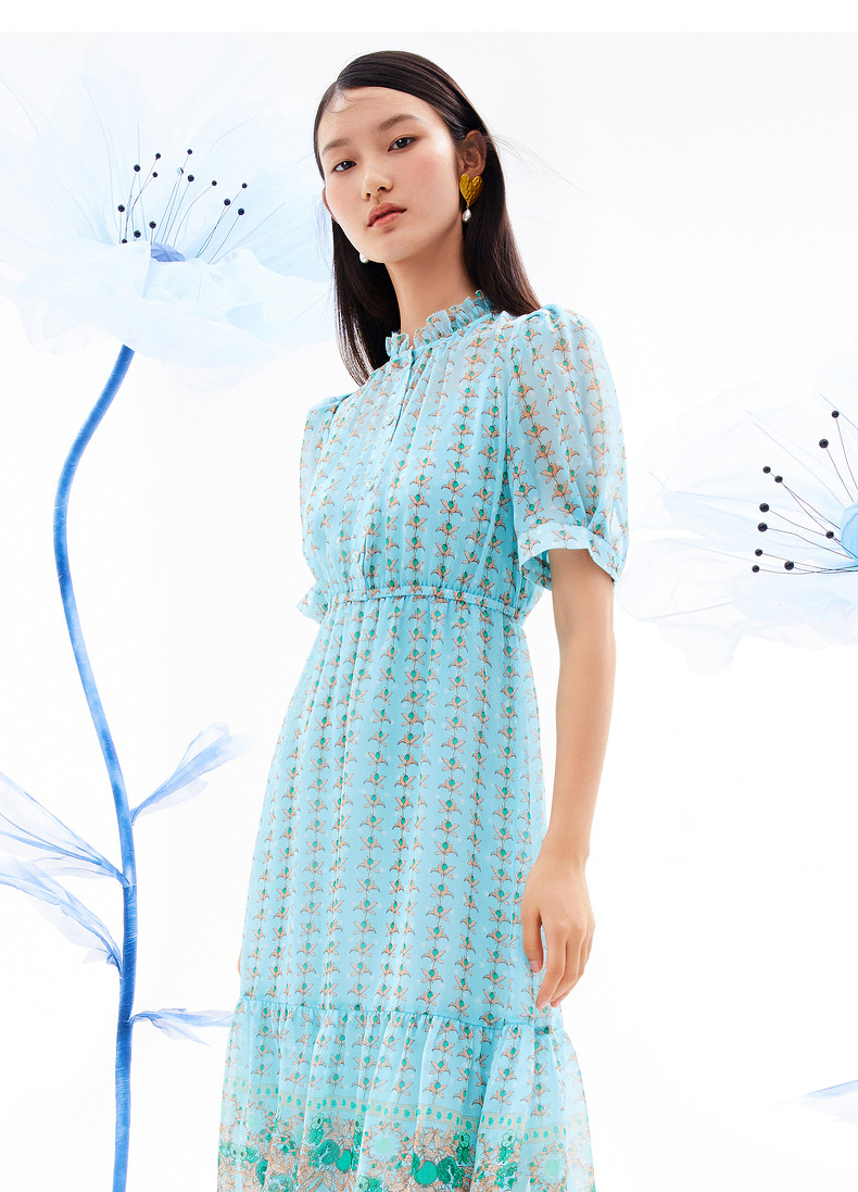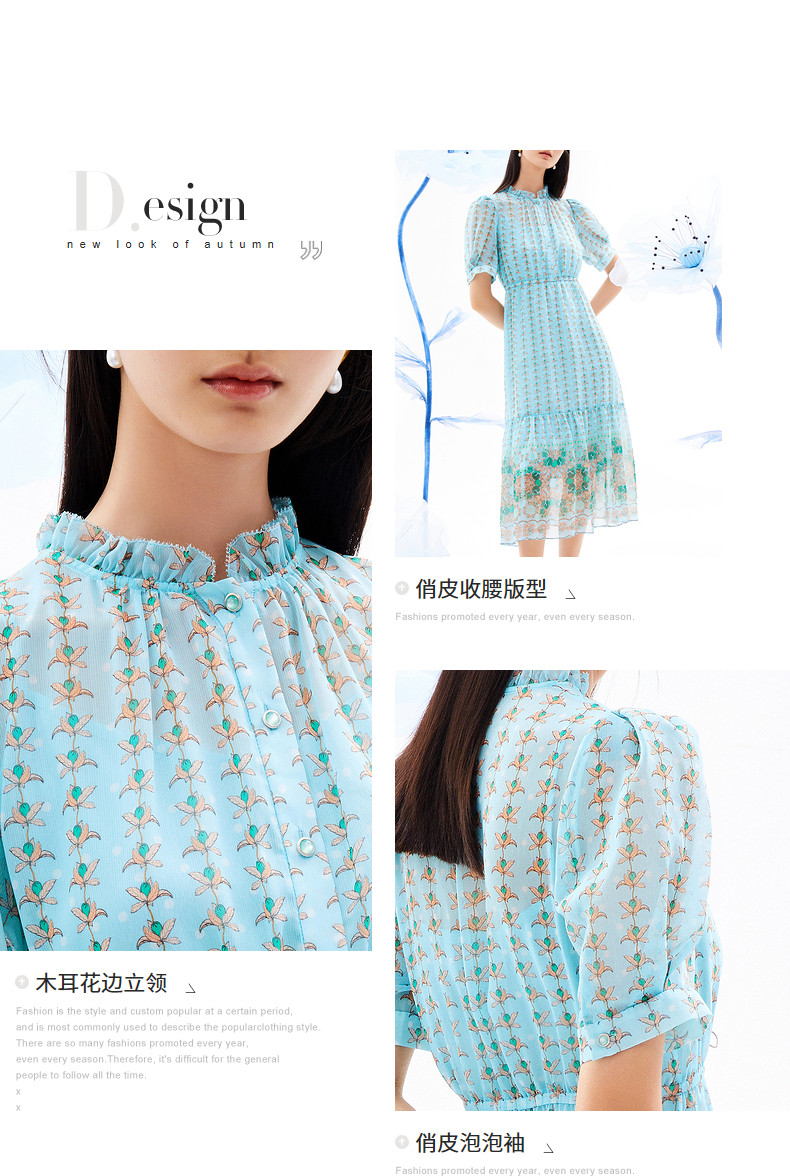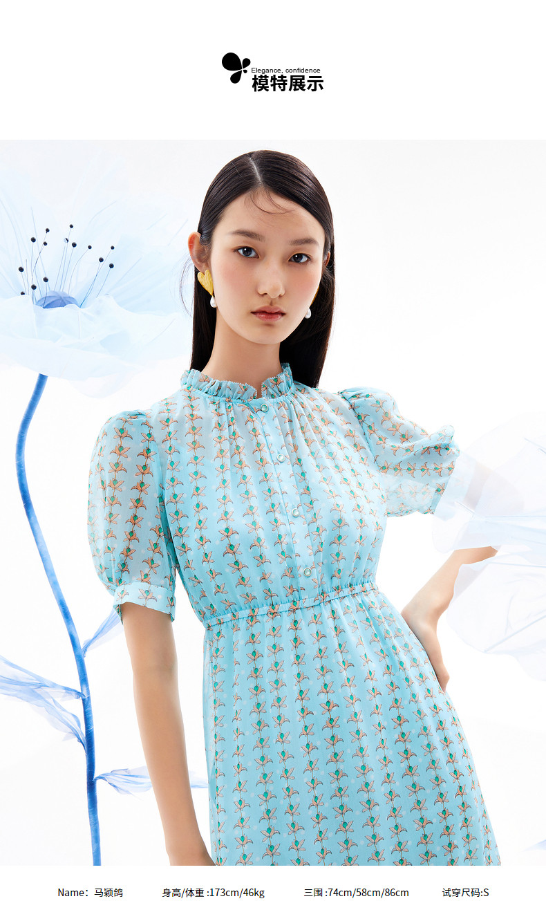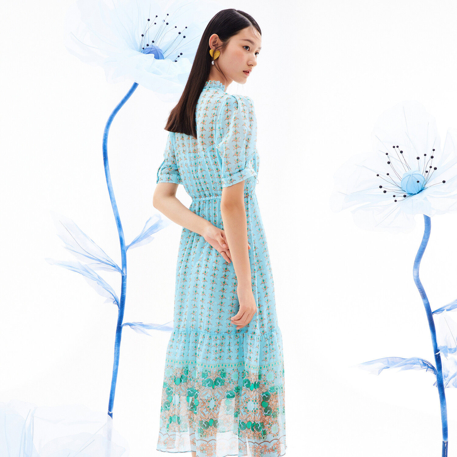 首页 > 玖姿专区 > 玖姿服饰 > 玖姿2021夏季新款安娜蔻系列蓝色度假风异域民族收腰女雪纺连衣裙