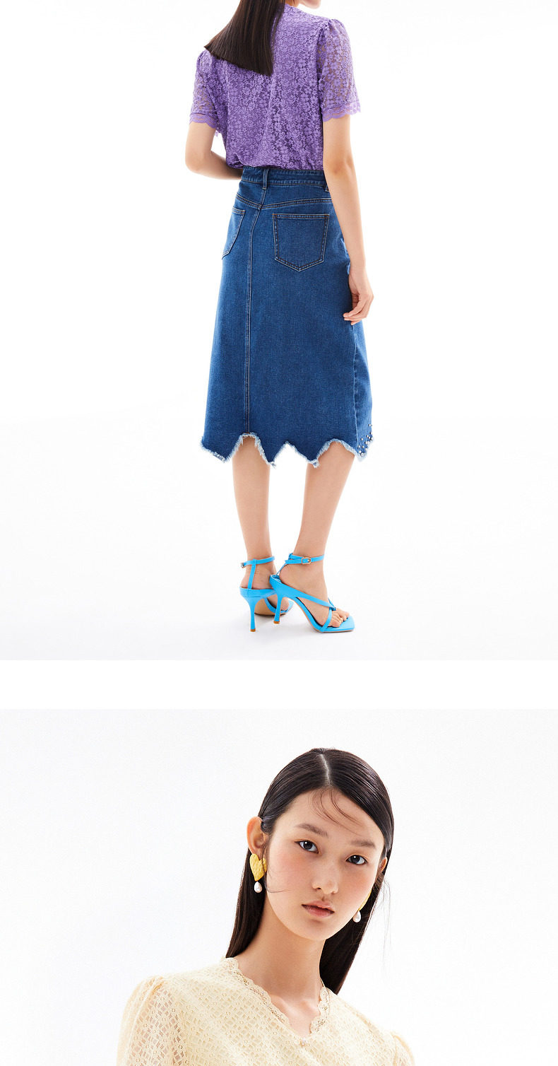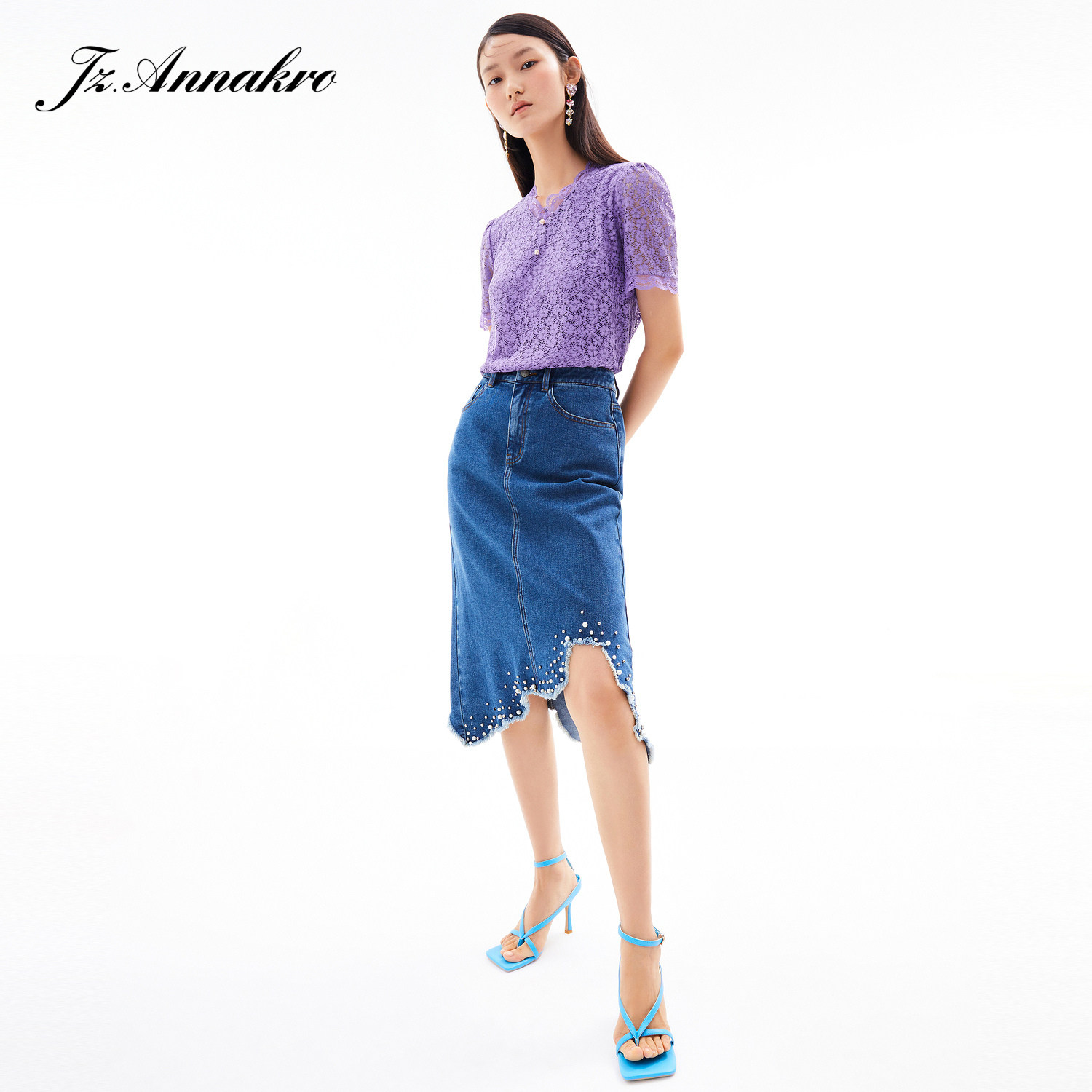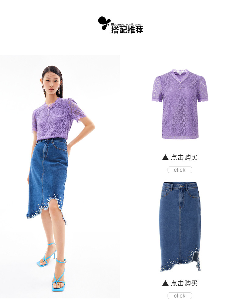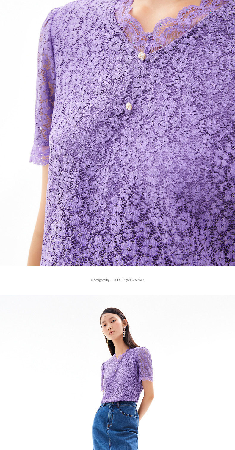 首页 > 玖姿专区 > 玖姿服饰 > 玖姿2021夏季新款安娜蔻系列纯色优雅气质款约会短袖花边女蕾丝衫
