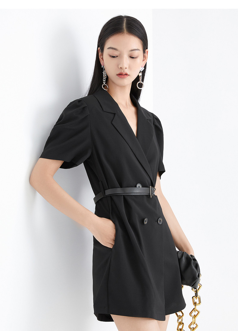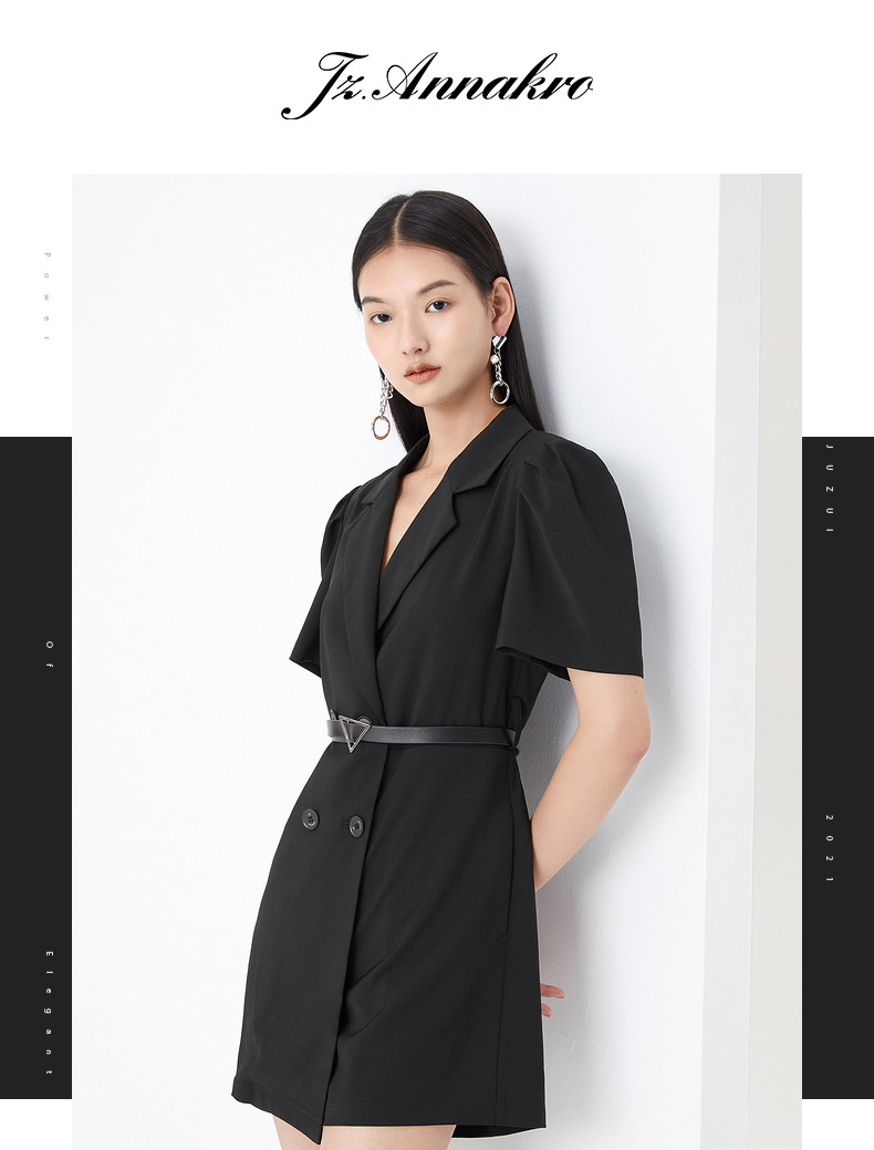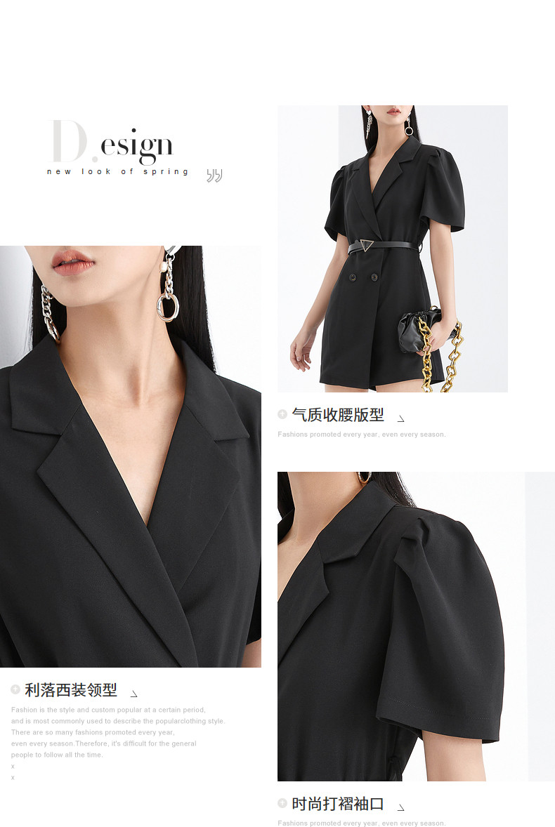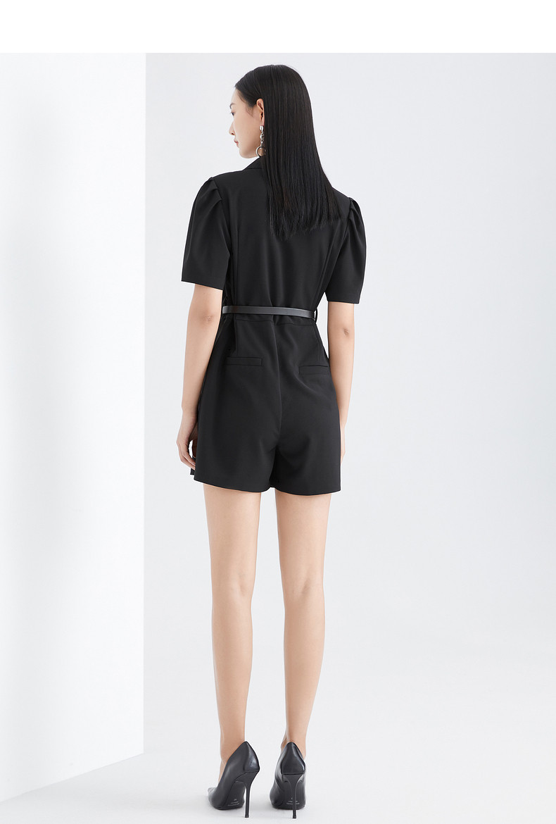 首页 > 玖姿专区 > 玖姿服饰 > 玖姿2021夏季新款安娜蔻系列黑色职业帅气街头收腰女休闲连体裤
