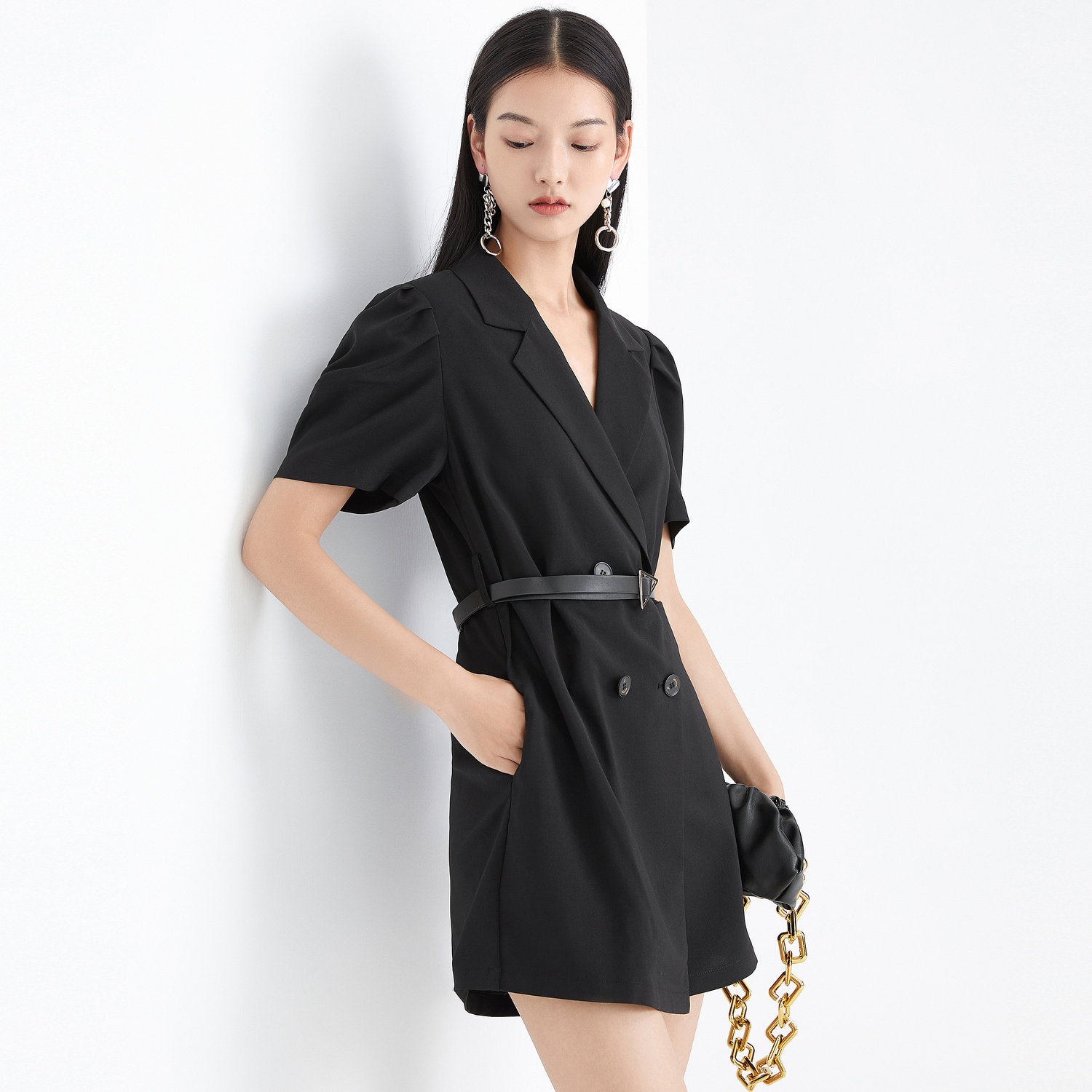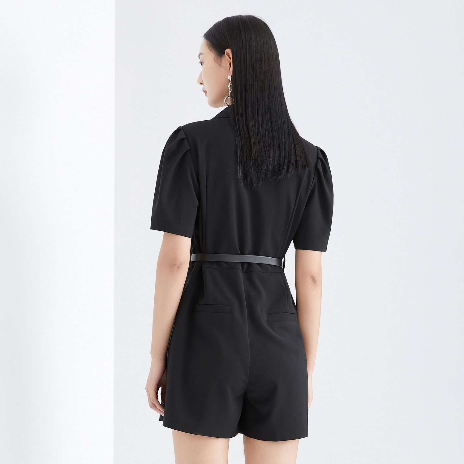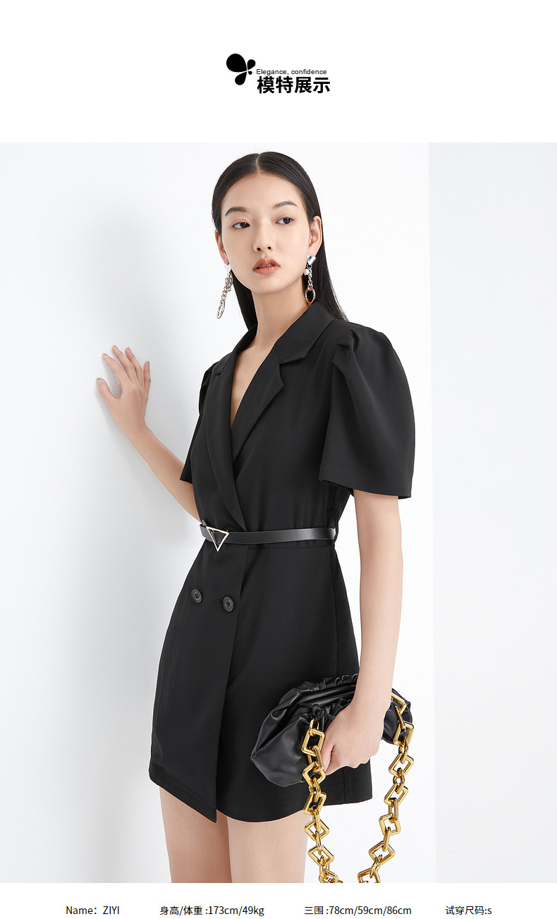 首页 > 玖姿专区 > 玖姿服饰 > 玖姿2021夏季新款安娜蔻系列黑色职业帅气街头收腰女休闲连体裤