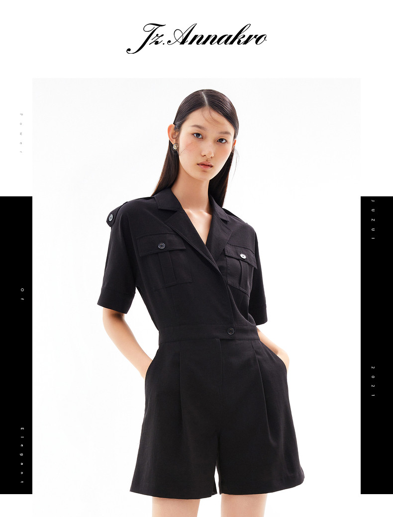首页 > 玖姿专区 > 玖姿服饰 > 玖姿2021夏季新款安娜蔻系列黑色时尚街头工装风气质潮流女连体裤