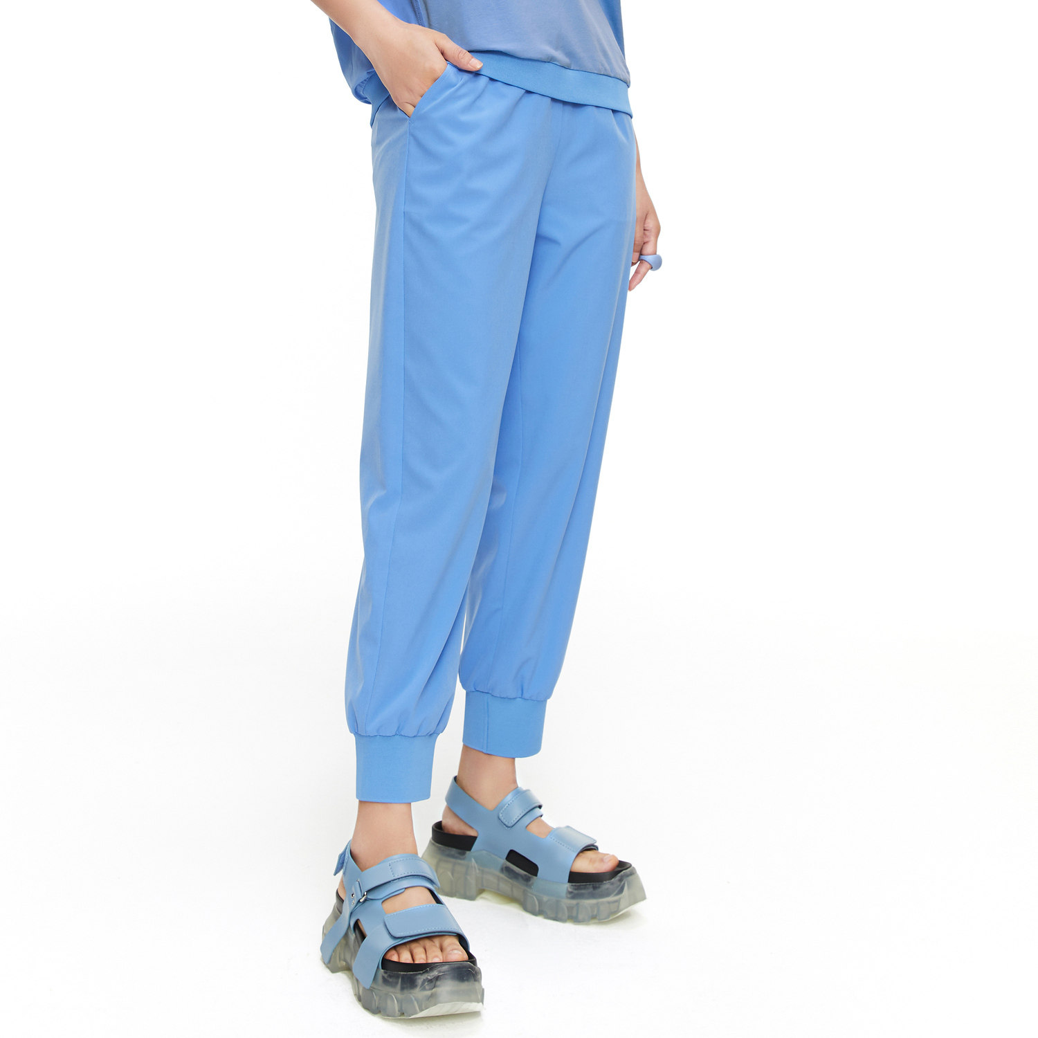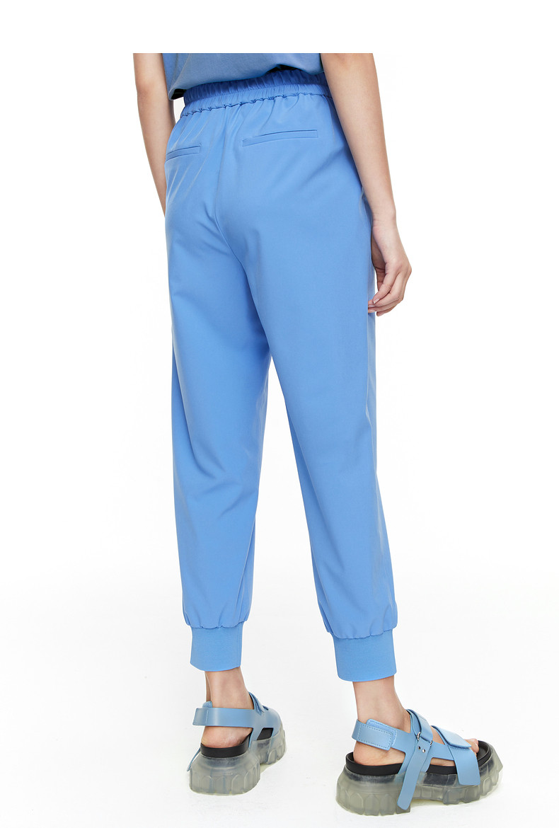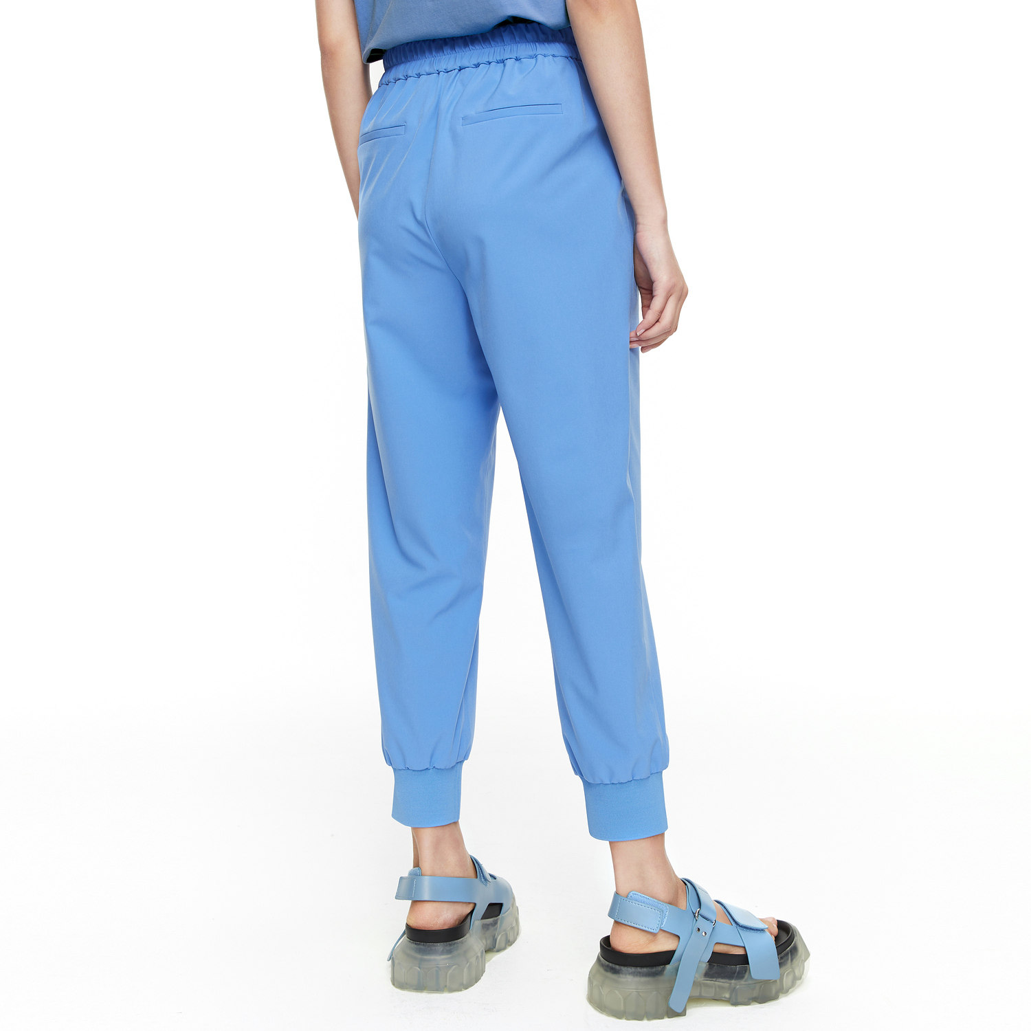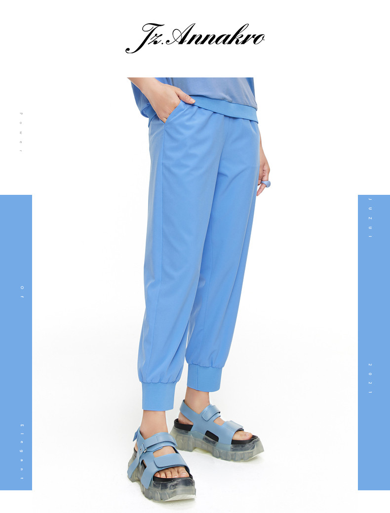 首页 > 玖姿专区 > 玖姿服饰 > 玖姿2021夏季新款安娜蔻系列蓝色松紧腰运动风休闲女显瘦束脚裤