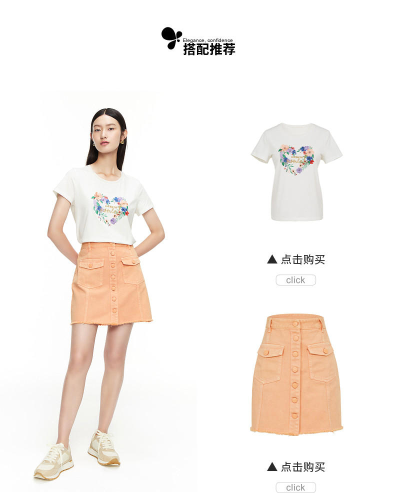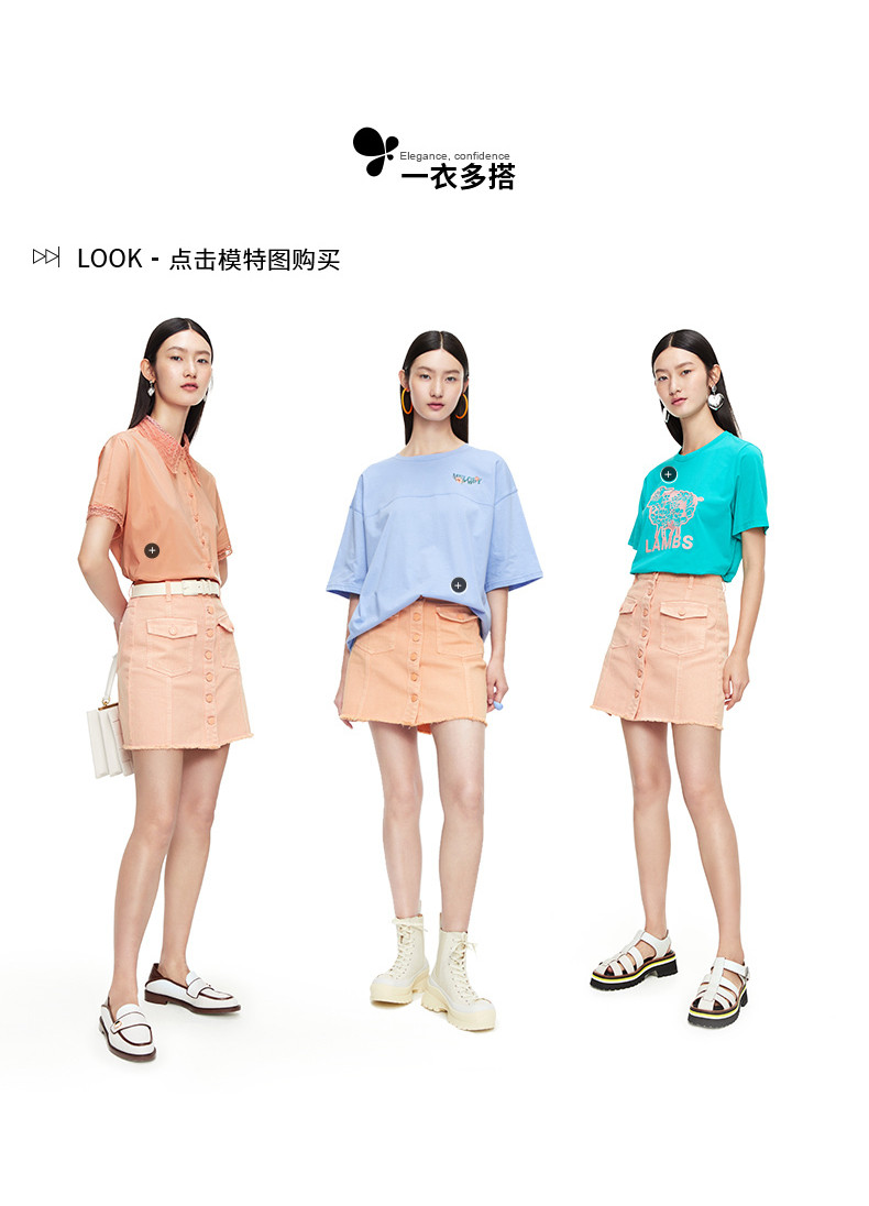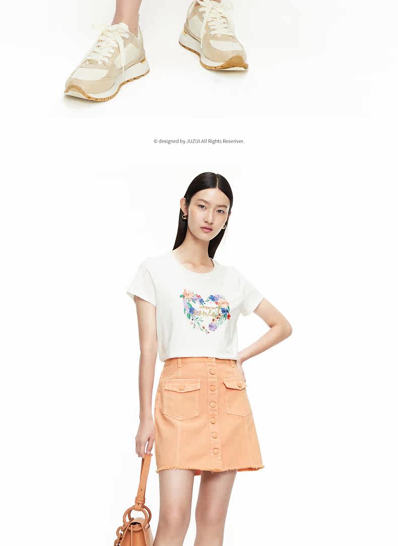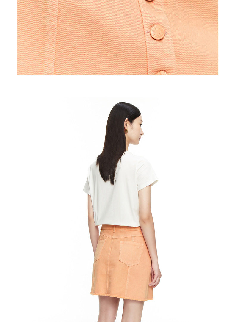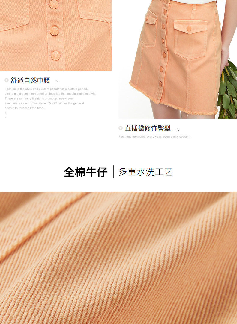 首页 > 玖姿专区 > 玖姿服饰 > 玖姿2021夏季新款安娜蔻系列蜜瓜橘粉色A字时尚显瘦女牛仔半身裙