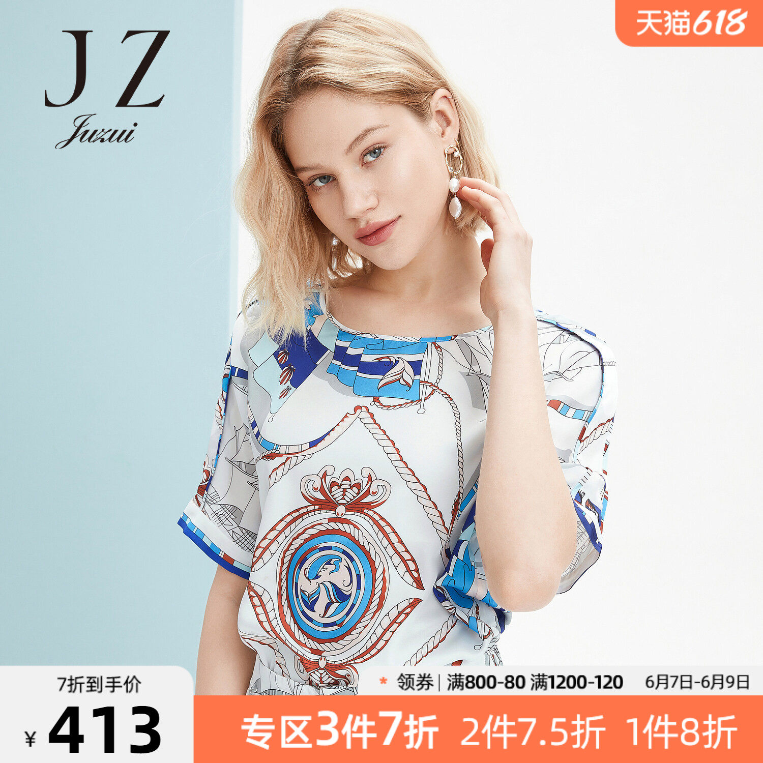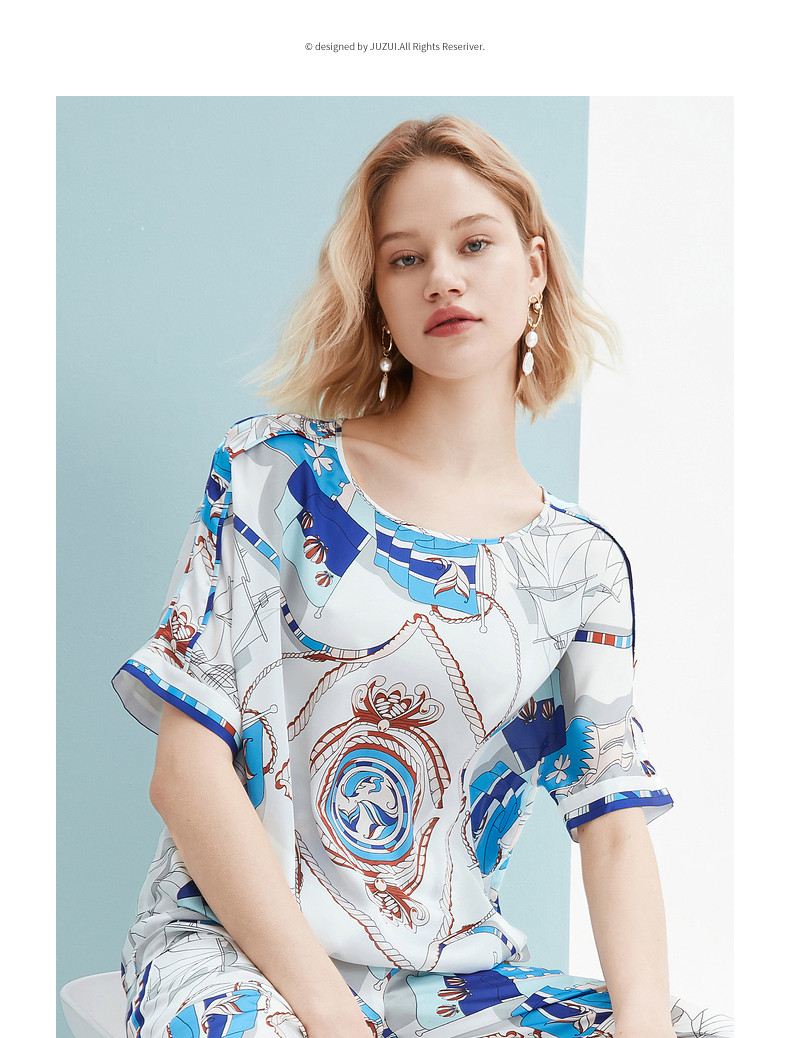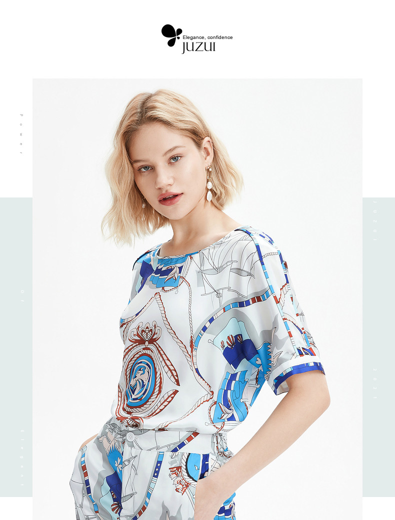 首页 > 玖姿专区 > 玖姿服饰 > JUZUI/玖姿官方旗舰店2021夏季新款时尚航海花气质度假风女雪纺衫