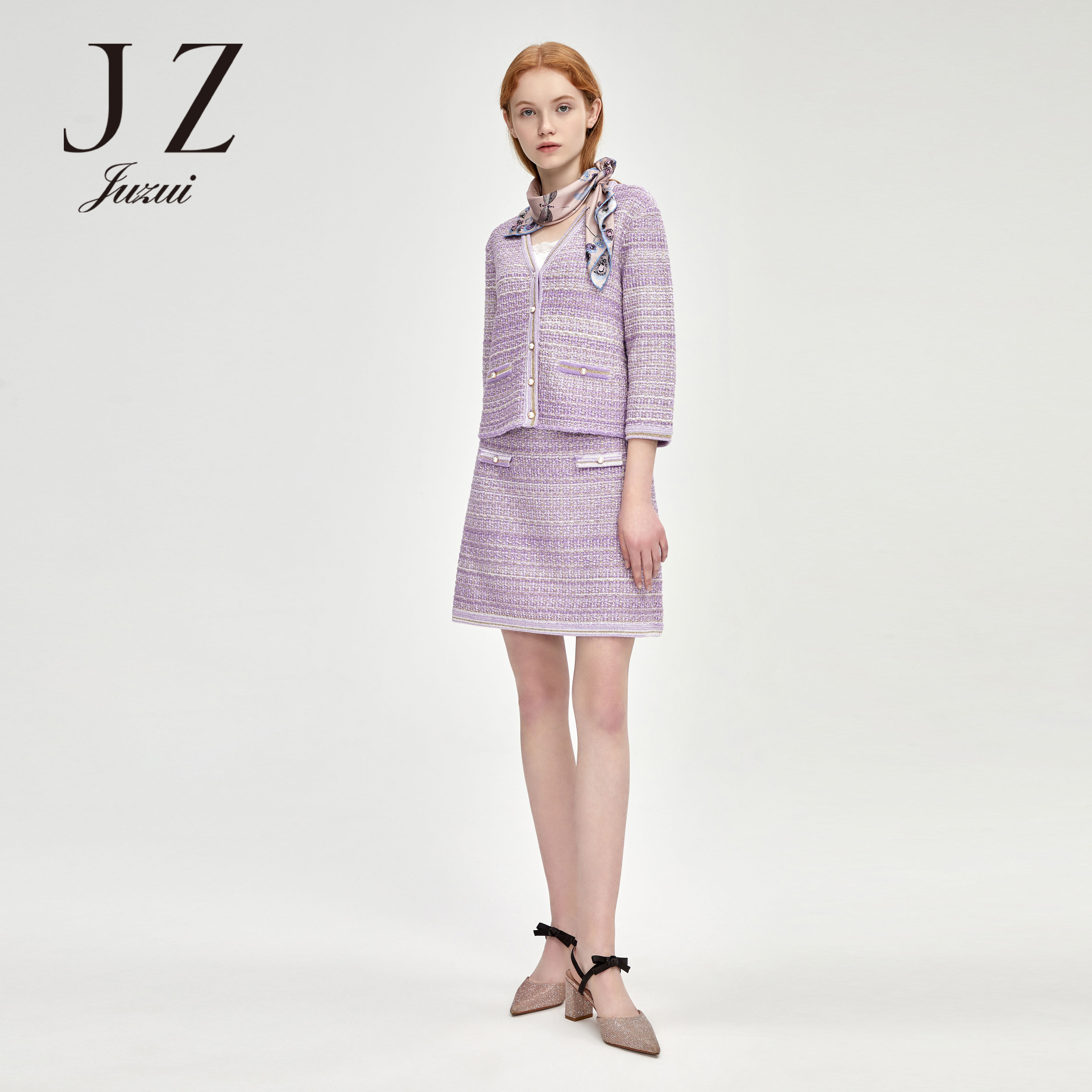 JUZUI/玖姿官方旗舰店2021春季新款气质小香风通勤时尚女半身裙